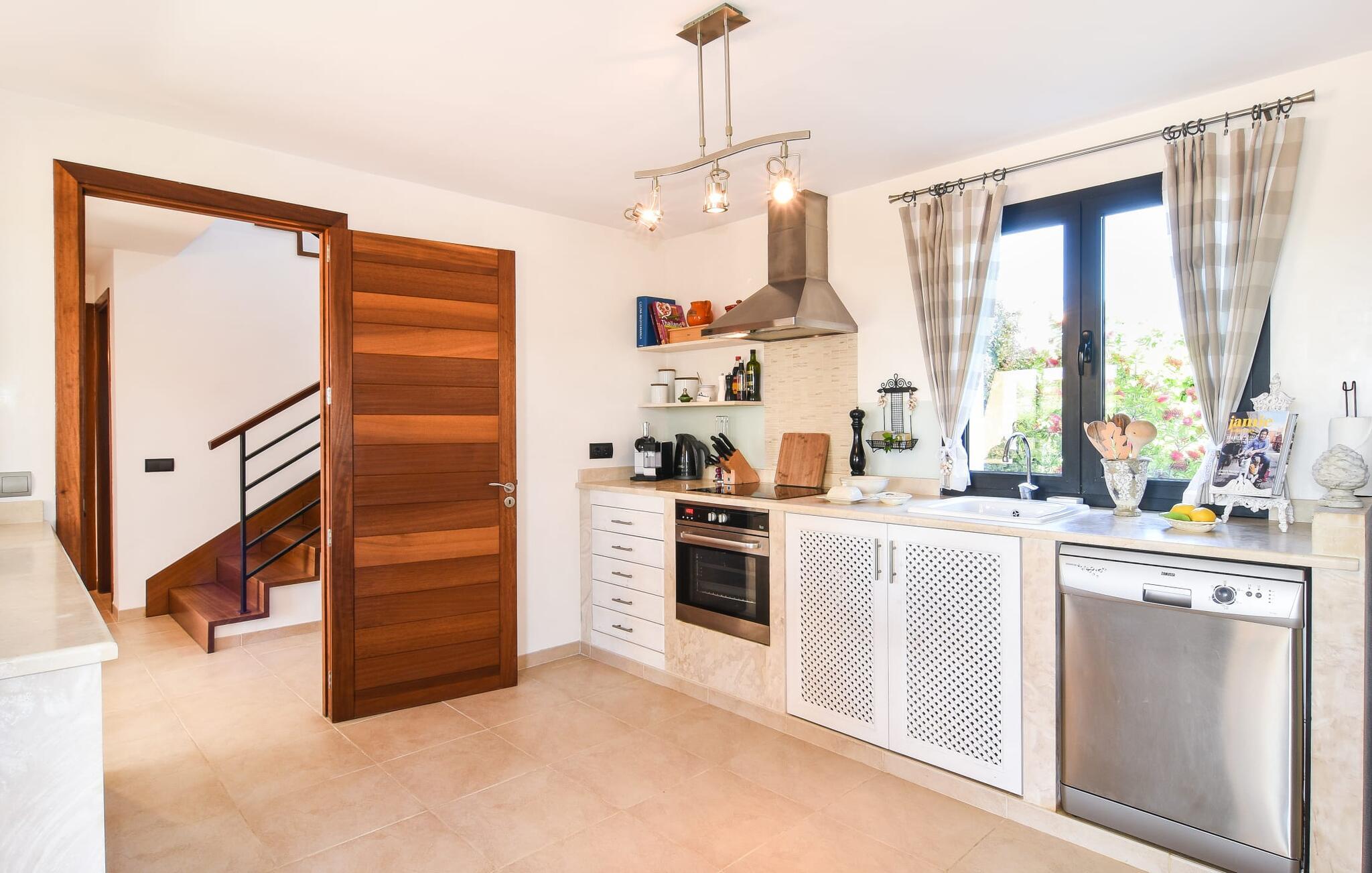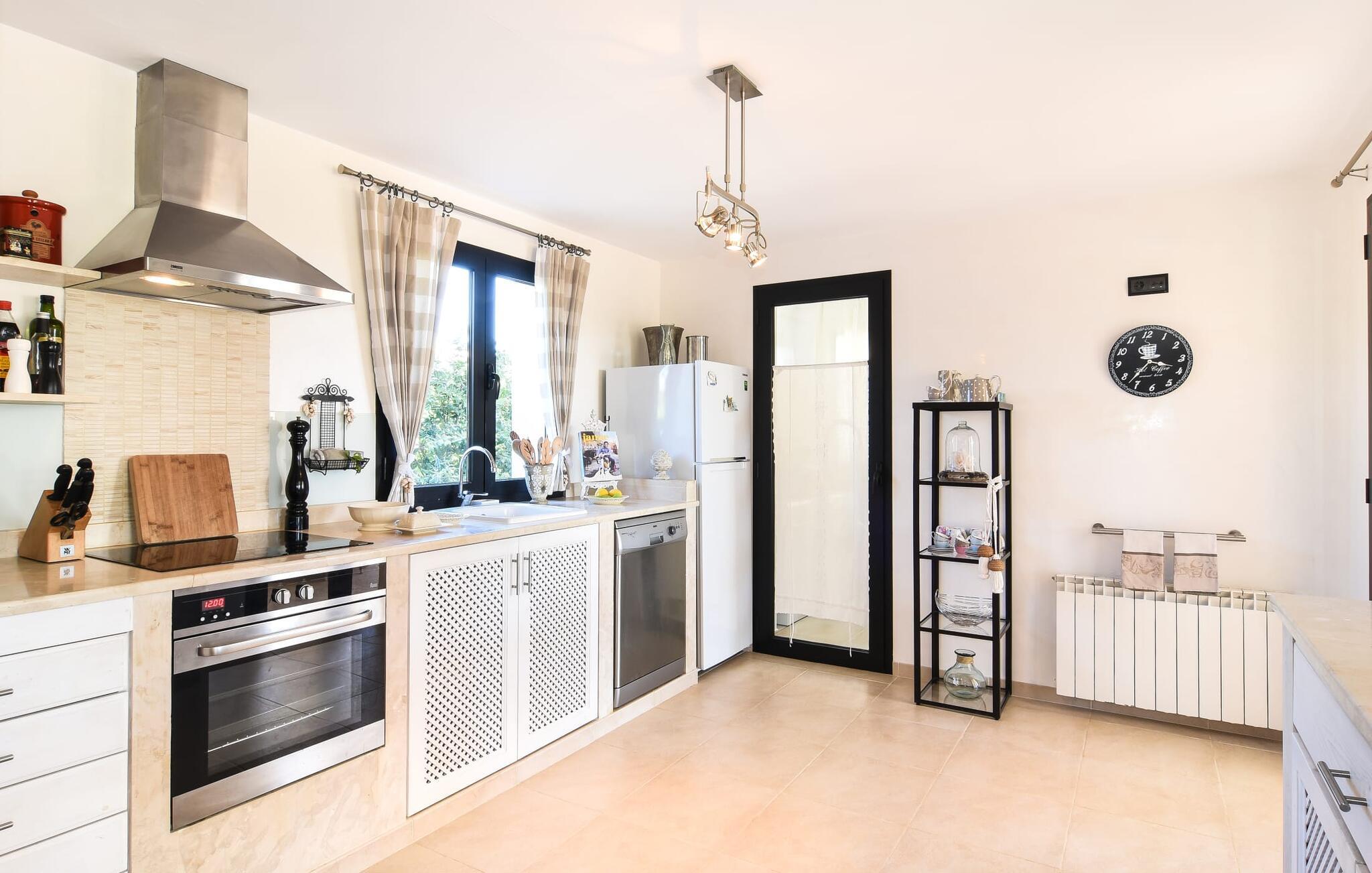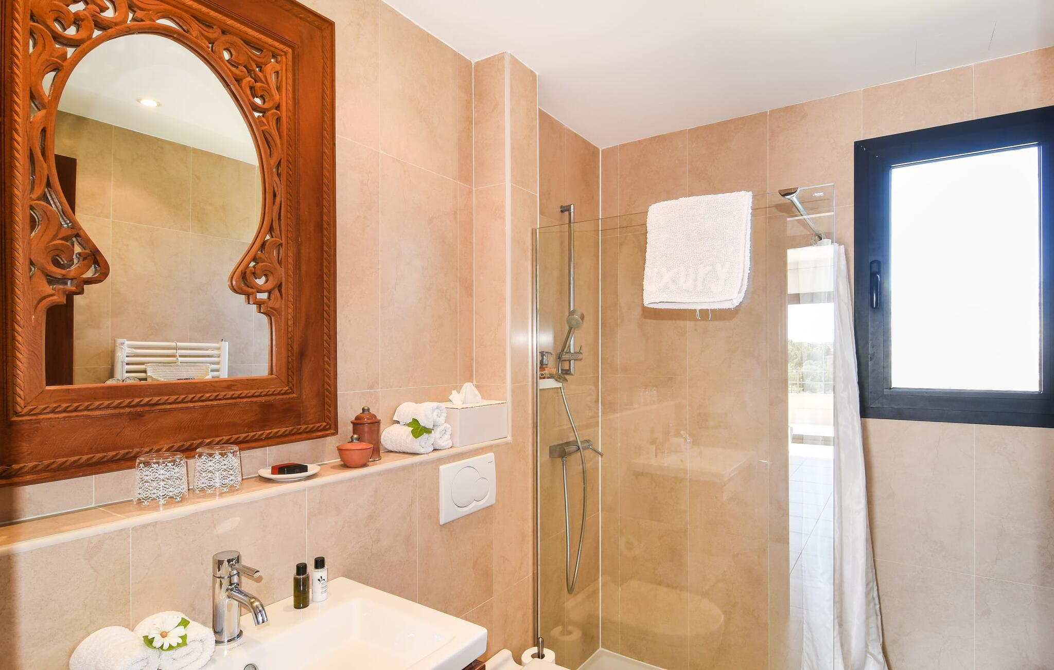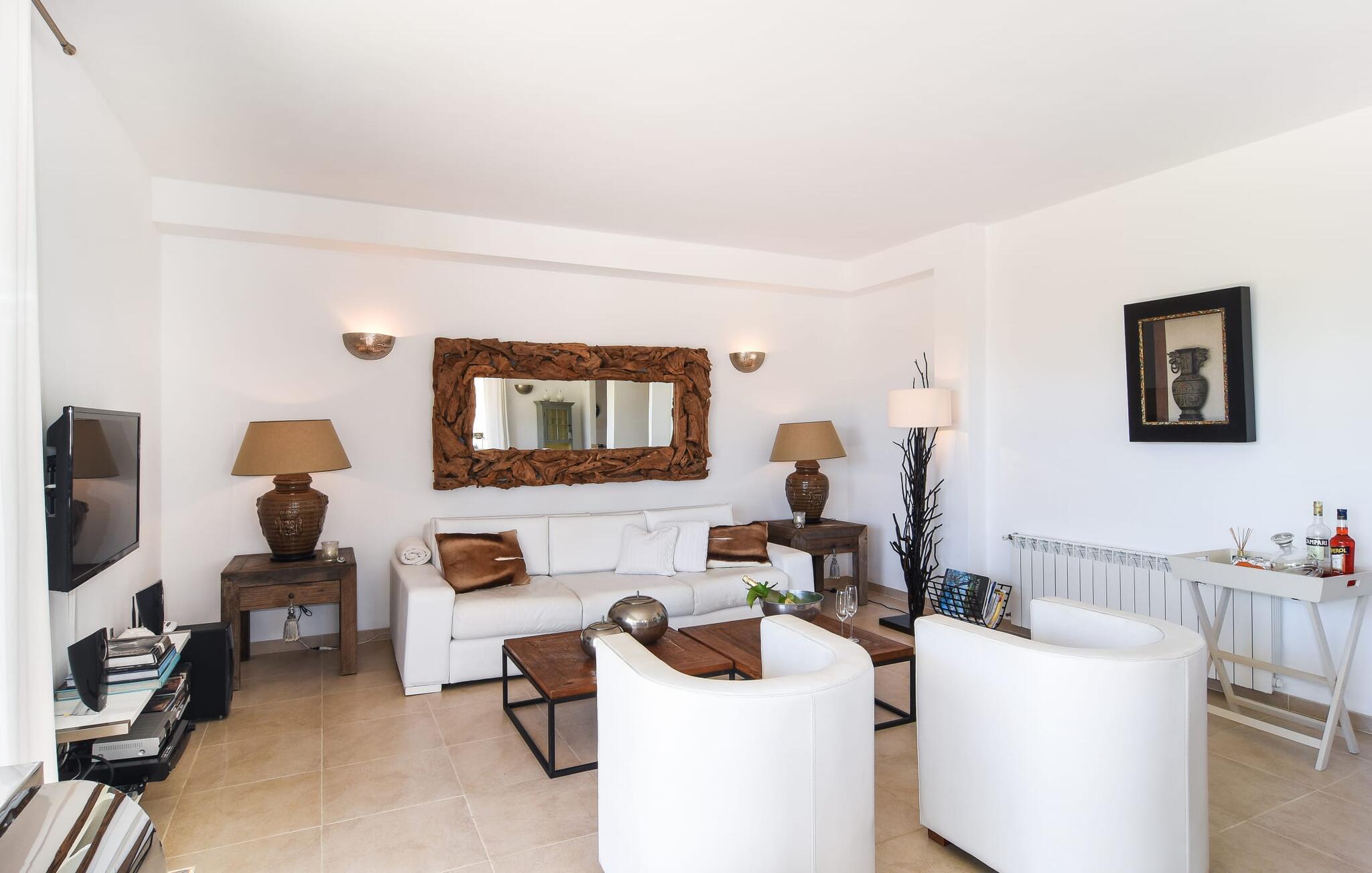 “Ocean Blue” – det er det lovende navn på denne byvilla, der ligger på Mallorcas smukke sydøstkyst. Her er nogle af højdepunkterne i drømmevillaen. Ejendommen består stort set af en helt sydvendt terrasse og poolområde. Poolen er tilgængelig via en lav sidetrappe og er placeret på en naturstensterrasse. Der er plads nok på terrassen til komfortable poly-flet liggestole og endda en kølig dagseng i Bali-stil. Middelhavsblomstrende planter som hibiscus, nogle palmer og oliventræer omgiver det lille, men meget attraktive udendørsområde. Selvom villaen er beliggende i en urbanisering af høj kvalitet med nabohuse, er poolområdet ikke synligt, og privatlivets fred er meget godt beskyttet i hele ejendommen. En trappe fører til villaens overdækkede terrasse, som er L-formet. Der er god plads til liggestole og et massivt træbord med trendy højryggede rattanstole. Et andet mere romantisk opholdsområde på en slags terrasse lige ved siden af køkkenet er udstyret med et delikat bistromøbelsæt. Ydermere er der ovenpå en indbydende, delvist overdækket udsigtsplatform og et afslappet loungehjørne, der er tilgængeligt fra to af soveværelserne. Uanset om det er dag eller nat, kan I slappe helt af og nyde den fænomenale havudsigt. Når vi træder ind i denne 5-stjernede ejendom, møder vi en eksemplarisk indretningsstil, der fuldstændig imponerer med sin elegante, tidløse stemning via gulv-til-loft, antracitfarvede vindueselementer, der bader interiøret i denne smarte villa i smukt lys. De lyse rum er indrettet med overvejende hvide møbler og højkvalitets tilbehør af metal og træ i rustik-moderne landstedsstil med vintage-touch, som det også kan ses i den kombinerede opholds- og spiseafdeling. Højkvalitets, massive mørke trædøre adskiller rummene. Marès-sten af høj kvalitet, som har sin naturlige oprindelse på De Baleariske Øer, blev ofte brugt. Det trendy køkken er udstyret med indbyggede skabe, der svarer til stilen fra et tidligere gårdkøkken - alt i hvid af høj kvalitet. Det moderne, fuldt udstyrede køkken gør selvforplejning til en fornøjelse. Enkeltværelset med enkel og elegant indretning samt badeværelse, der også sagtens kan bruges som gæstebadeværelse, er placeret i stueetagen. En trætrappe, som bliver til et galleri, fører til det øverste niveau, hvor de tre andre soveværelser er placeret; alle med aircondition. Sengene i de rummelige værelser måler alle 1,80 mx 2 m. To trendy afslapningsrum deler det ene af de to badeværelser, hovedsoveværelset har eget badeværelse. Hvert en-suite badeværelse har indretning af høj kvalitet - smukt flisebelagt med brusekabine fra gulv til loft: I hovedbadeværelset er der endnu et stort badekar, hvor I kan nyde panoramaudsigten, mens I slapper af i badekarret. Fra den allerede beskrevne solterrasse på dette niveau kan I byde den nye dag velkommen, mens I nyder den let salte brise, der blæser fra havet. Villaen har en privilegeret beliggenhed mellem de to kystbyer Cala Santanyi og Cala Figuera. Cala Santanyi er også inden for gåafstand. Denne lille bugt med fint sand er kendetegnet ved sin flade, børnevenlige kyst og sin lyse azurblå farve: Enhver, der sidder på trappen til de gamle fiskerhytter og ser på det imponerende klippepanorama over det glitrende vand, ved, at man endelig er på ferie. I bør bestemt ikke gå glip af en tur til den maleriske fiskerihavn Cala Figuera (ca. 1,3 km væk). Denne fjordlignende "figenbugt" er stadig udgangspunktet for fiskere. Samtidig finder I nogle rigtig gode restauranter langs den smukke promenade, der serverer friskfanget fisk. På grund af dens beliggenhed i en urbanisering er der noget støj fra gaden, men det bruges hovedsageligt af lokale beboere, nabobyer er nemme at nå, herunder Santanyi, som blev grundlagt i 1200-tallet. Her kan I gå en tur gennem maleriske gader og finde en hyggelig bodega og tapasbar for at afslutte jeres afslappende dag. Den maritime villa "Ocean Blue" er beliggende i den velholdte urbanisering Se Torre Nova nær Cala Santanyi. Det skylder sit navn til dets nærhed til havet, da den smukke sandbugt Cala Santanyi ligger kun et stenkast væk og kan også nås til fods. Daglig indkøb kan foretages i Santanyi, hvor det ugentlige marked finder sted hver onsdag. Den maleriske fiskerihavn Cala Figuera ligger kun 1,3 km væk og kan nemt nås til fods.