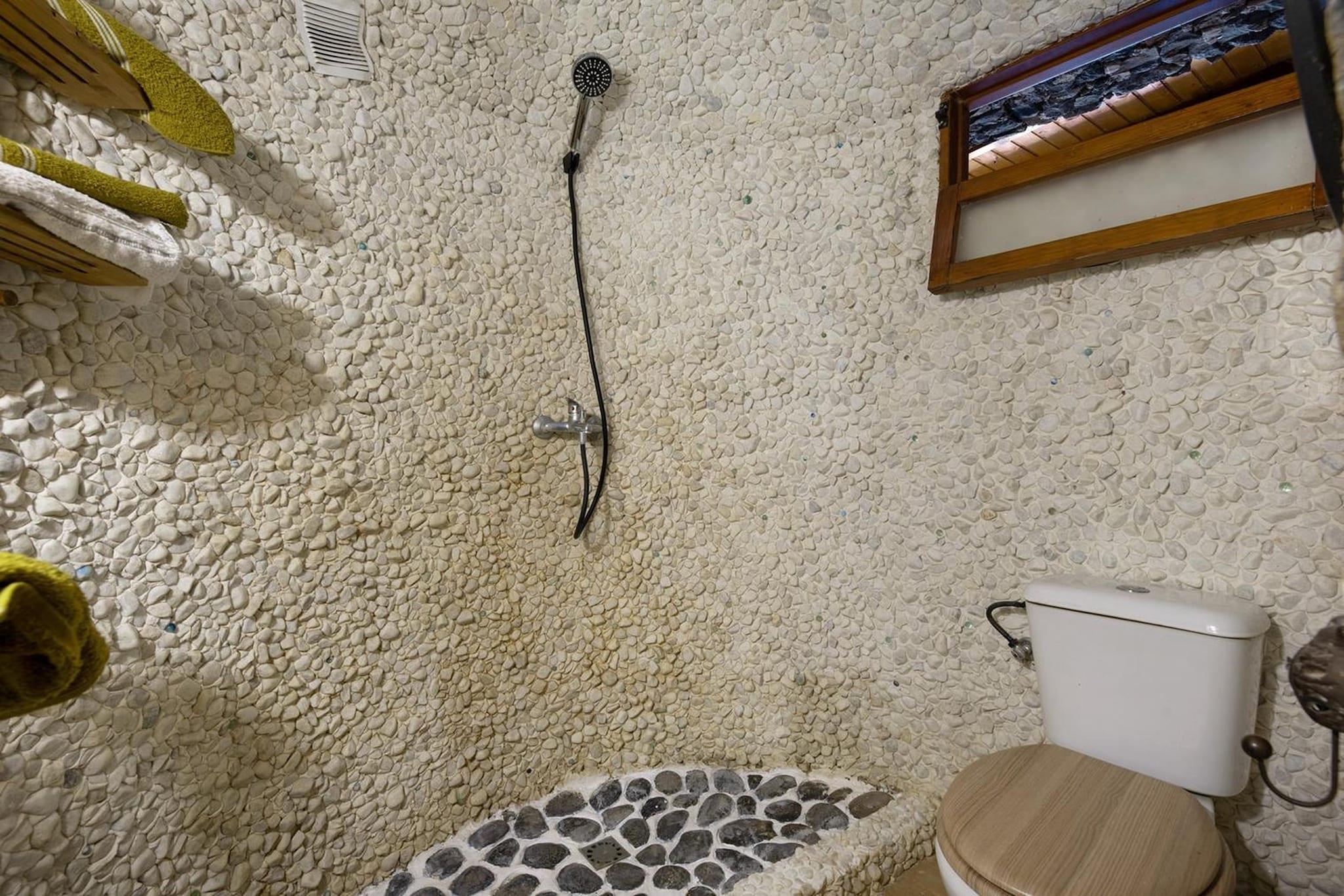 Stueetage: (Indgang (adgang udefra), åbent køkken(kogeplade(gas), kaffemaskine, køle-fryseskab), stue / spisestue(enkeltsovesofa(70 x 170 cm), spisebord, pejs, sofahjørne), soveværelse(dobbeltseng), badeværelse(bruser, håndvask, toilet)) havedøre, have, havemøbler, grill, parkering, liggestole, Parasol, swimmingpool(privat, udendørs, opened from Apr upto and including Sep)