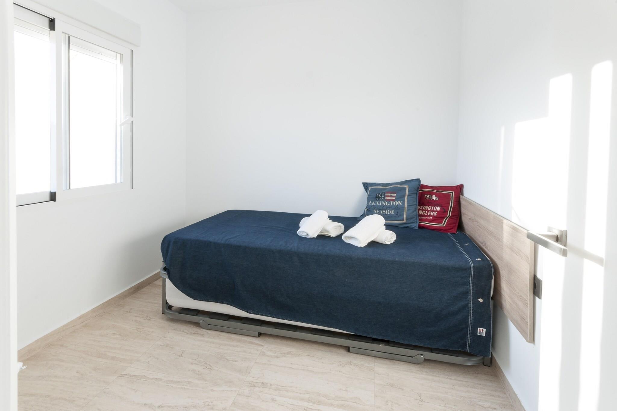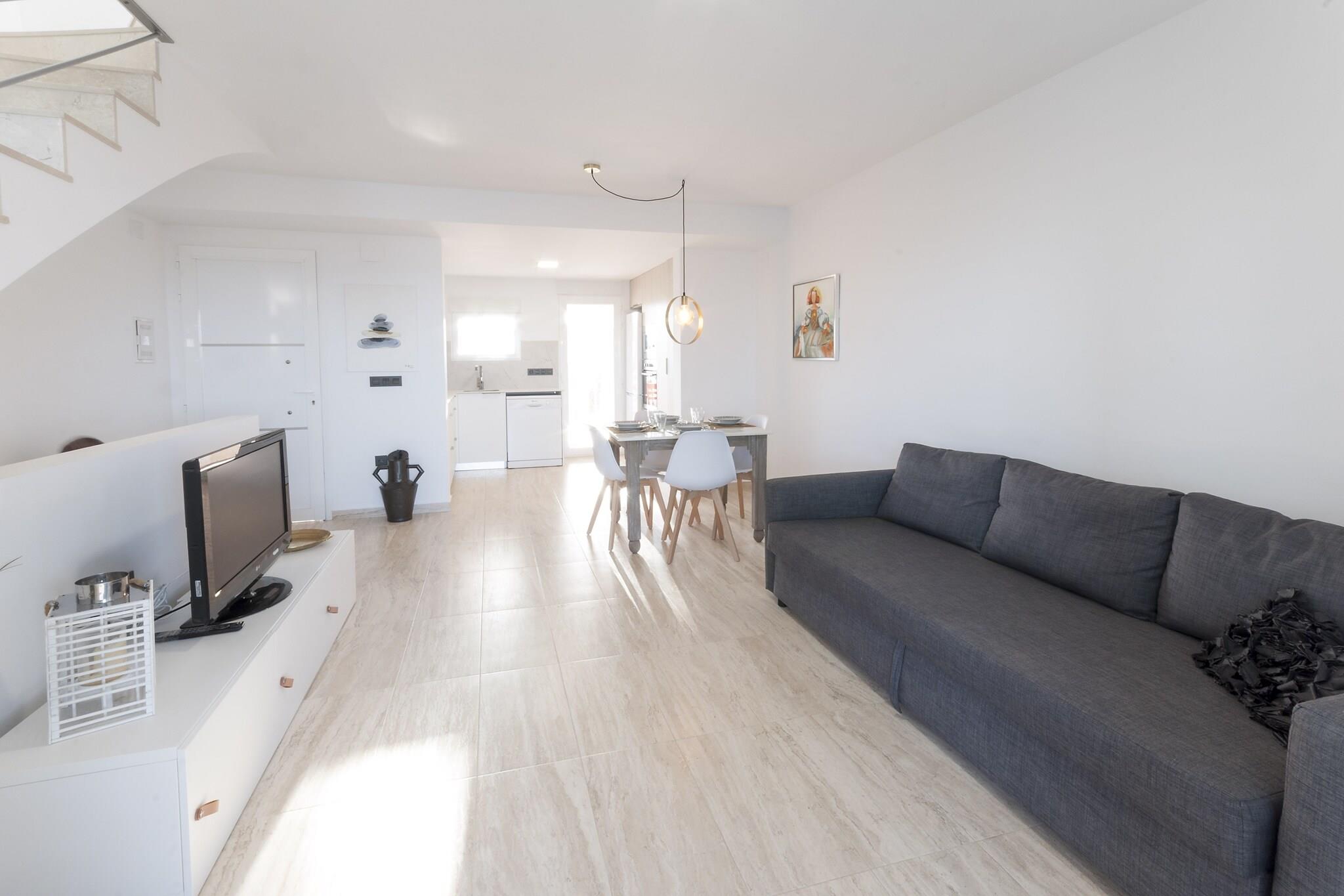 Hvis du elsker havet og huse med en moderne og afslappende stil, er dette dit hus! Interiøret har et moderne touch, der får dig til at føle dig hjemme, og dens hovedterrasse tilbyder den bedste oplevelse af at bo ved havet. Her kan du nyde dine måltider, mærke havbrisen og beundre stranden og bølgerne. anden side, den anden bagerste terrasse inviterer dig også til at slappe af. Boligen byder på et luftigt og hyggeligt værelse, hvor stuen, -med aircondition og TV-, spiseplads og køkken er samlet. Køkkenet har en induktionsplade og alt hvad du skal bruge til at lave mad. Ovenpå har du husets badeværelse -med bruser- og to soveværelser med hver et skab og en ventilator. En af dem har en dobbeltseng, adgang til en balkon med havudsigt og plads til en barneseng (en høj stol er også tilgængelig). Det andet værelse har en trilleseng. Du finder også en vaskemaskine, et strygejern og strygebræt. Dette smukke hus tilbyder direkte adgang til stranden i La Devesa. Bare tag dit håndklæde og nyd solen og havet i et par skridt, med huset på bagsiden, hvis du skulle komme tilbage for at hente nogle forretter og drinks, efter du har svømmet. Området Oliva Nova er også ideelt, da golfbanen ligger 2,8 km væk. Det er også tæt på ridecentret, og du vil finde en række barer, restauranter osv. rundt omkring. Som reaktion på Coronavirus (COVID-19) er yderligere sikkerheds- og sanitetsforanstaltninger i kraft på denne ejendom. Turistlicens: VT-48537