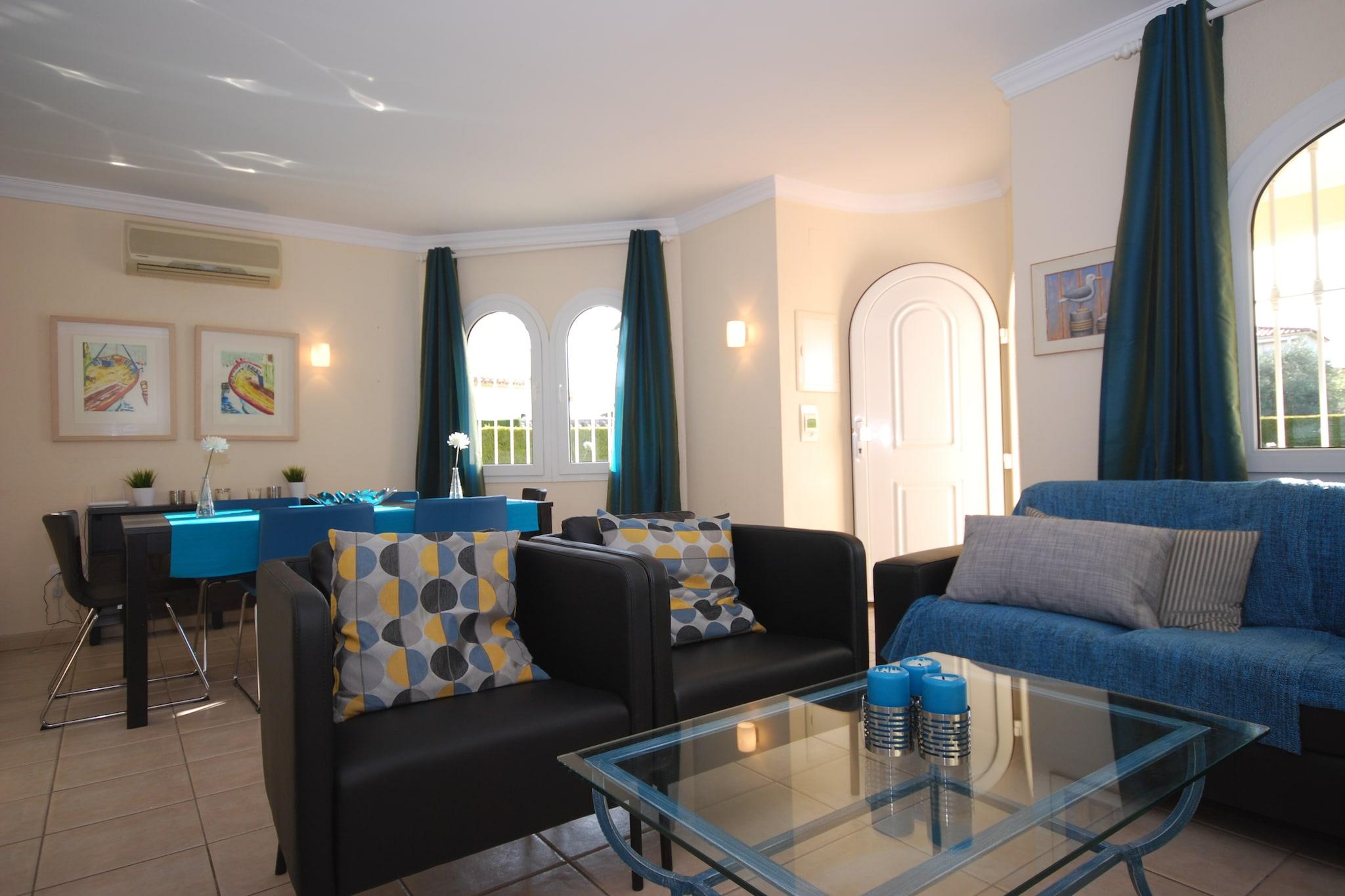 Denne smukke villa i Oliva, Valencia, tilbyder den perfekte strandferie tæt på den spanske kyst, ideel til familier eller grupper. Beliggende i gåafstand (800m) til havet, giver det nem adgang til sandstrande og en fantastisk udsigt. Gæsterne kan også nyde wellness-centret på det nærliggende Oliva Nova-resort, som har en indendørs pool og sauna for ultimativ afslapning. Bekvemt beliggende kun 500 meter fra restauranter og supermarkeder i resortet, giver villaen dig mulighed for nemt at nyde det lokale køkken og fylde op med det vigtigste. Nærliggende attraktioner omfatter City of Arts and Sciences, Central Market og L'Oceanogràfic, hvilket gør det til en god base for at udforske Valencias kulturelle højdepunkter. Villaen er udstyret med køkken med kaffemaskine, opvaskemaskine og mikroovn til nem tilberedning af måltider. Alle soveværelser og stuen har aircondition, hvilket sikrer komfort i de varme somre. Udendørs faciliteter omfatter en balkon til morgenkaffe og et grillområde til livlige middage. En carport på stedet fuldender dette komfortable, bekvemme feriehus.