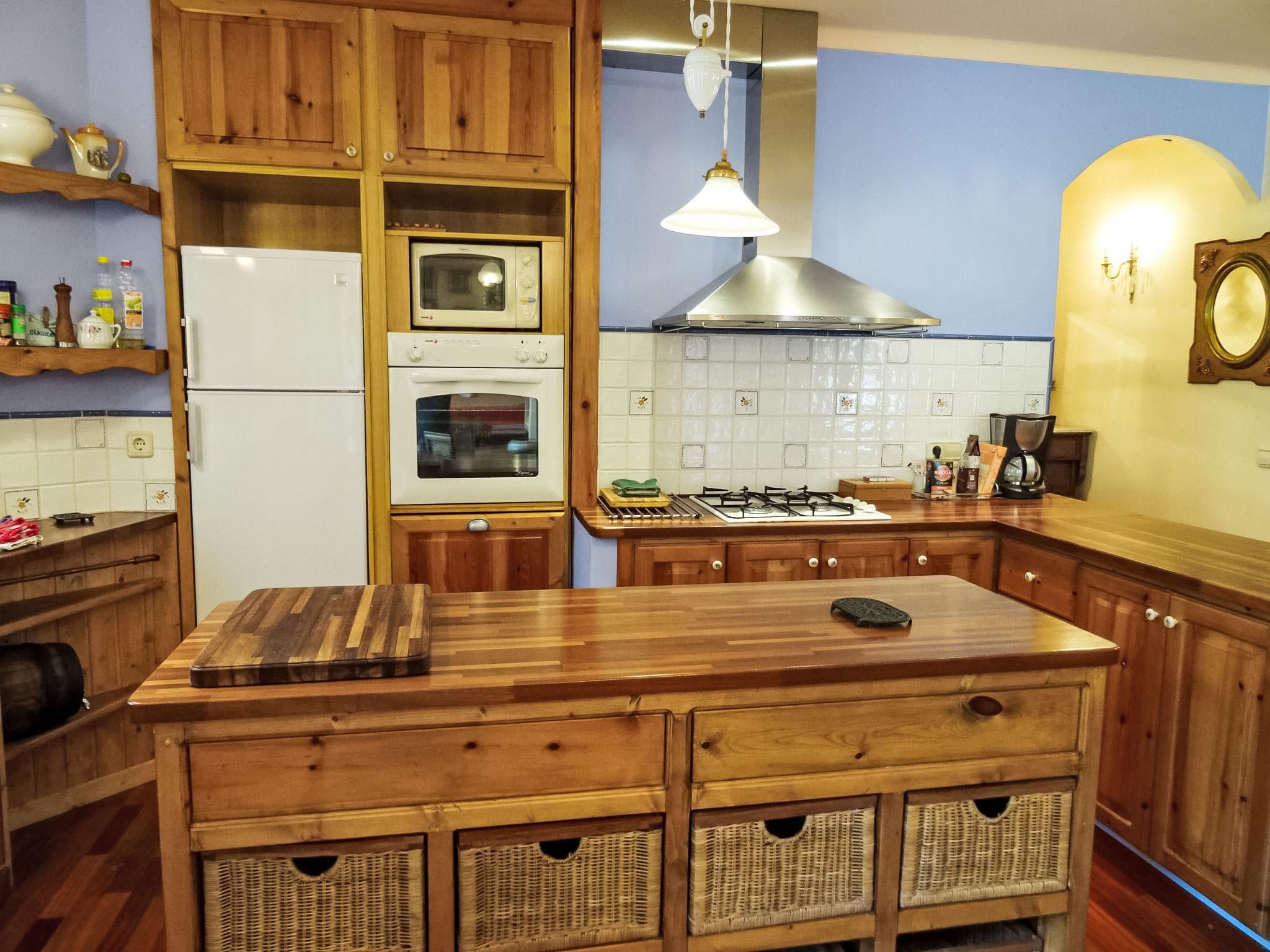 3-room apartment 90 m2 on 3rd floor. Comfortable and rustic furnishings: living/dining room with 1 sofabed (120 cm, length 180 cm), dining table, digital TV and hi-fi system. 2 rooms, each room with 1 french bed. Open kitchen (4 hot plates, oven, dishwasher, microwave). Bath/bidet/WC. Gas heating. Balcony. View of the resort and the river. Facilities: washing machine, iron, children's high chair, baby cot for up to 2 year olds, hair dryer. Internet (WiFi, free). HUTG000250 // Reg. Nr.: ESFCTU000017004000194172000000000000000000HUTG0002503