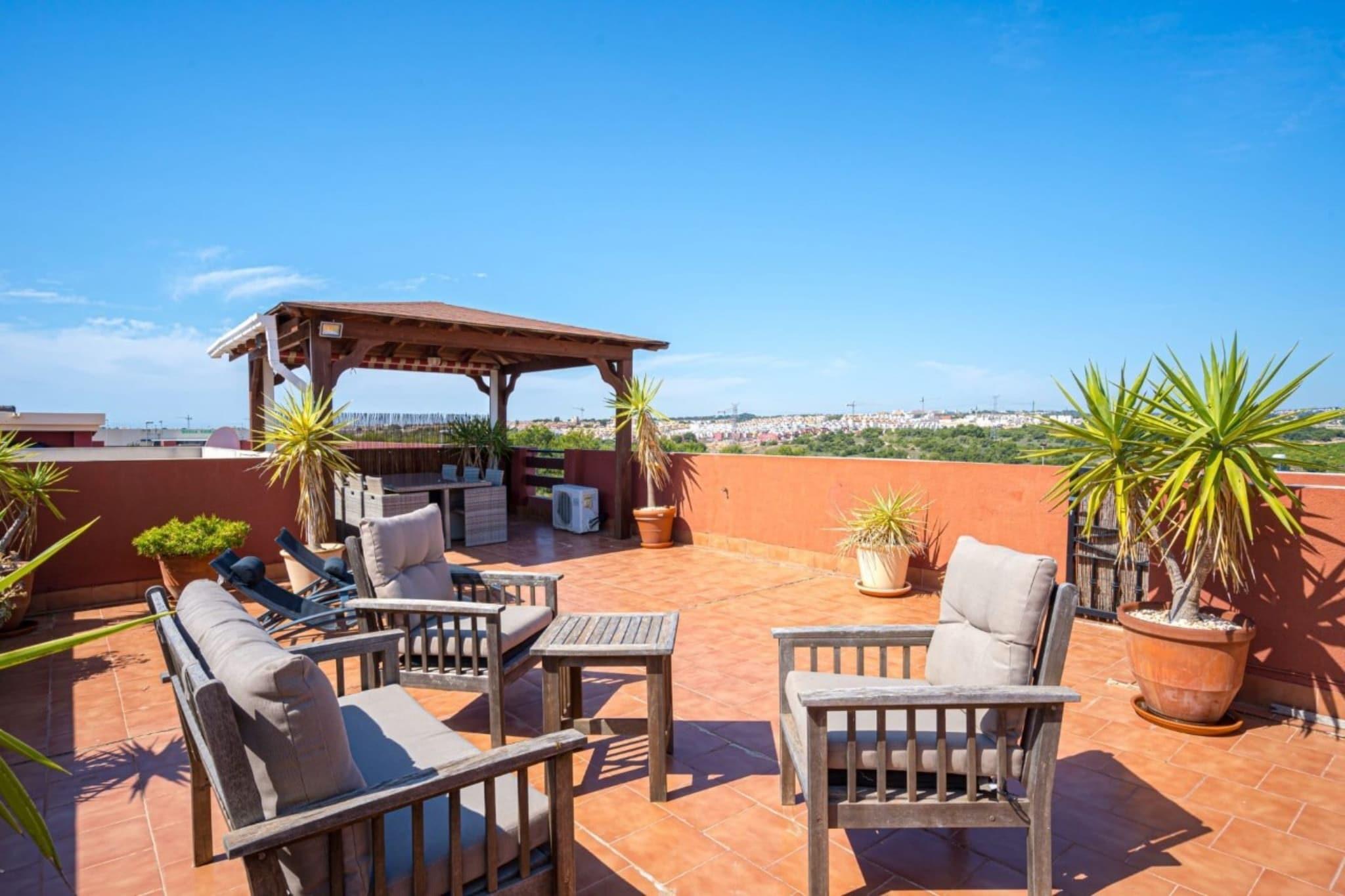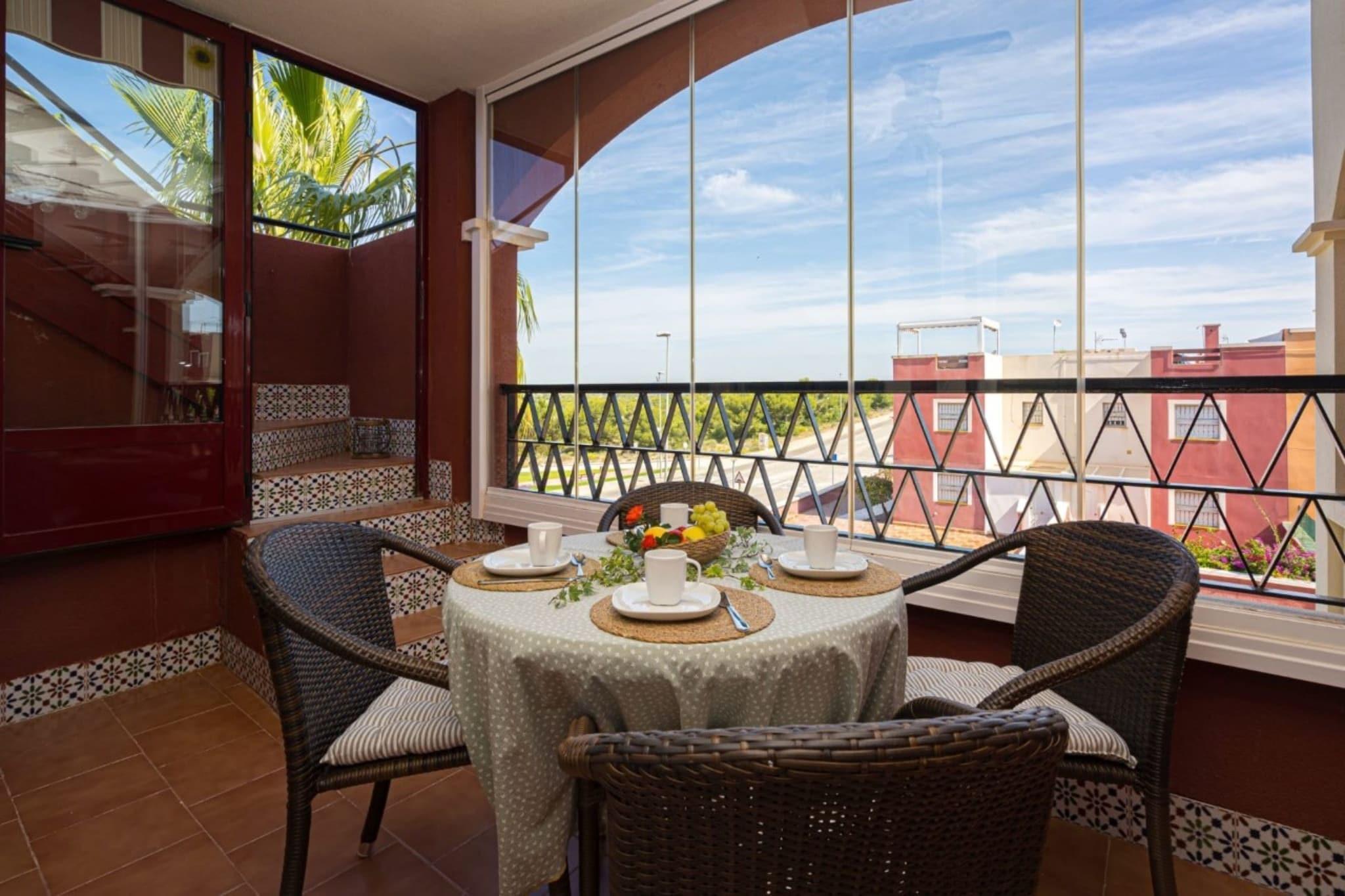 Nyd Middelhavets solskin i dette dejlige feriehus på Costa Blanca, perfekt til familier, der søger en afslappende kystflugt. Med en privat terrasse med en betagende udsigt og aircondition overalt, er komfort og ro garanteret. Boligen har en hyggelig stue med tv og indbydende siddepladser, der er ideelle til at slappe af efter en dag med udforskning. Det veludstyrede køkken giver dig mulighed for at tilberede lækre måltider, mens WiFi sikrer, at du holder dig forbundet og underholdt. Træd udenfor for at nyde den fælles swimmingpool, perfekt til at køle af i de varme sommermåneder. Beliggende i nærheden af Costa Blancas fantastiske strande og livlige boulevarder, vil du blive forkælet af valgmuligheder med gåture ved havet, strandbarer og charmerende caféer. Gå ikke glip af den berømte lyserøde sø ved Torrevieja, et naturligt vidunder, der er perfekt til naturskønne gåture og fotoops. Uanset om du slikker solen, udforsker kysten eller nyder en stille aften på terrassen, tilbyder dette feriehus den perfekte base for din spanske ferie.