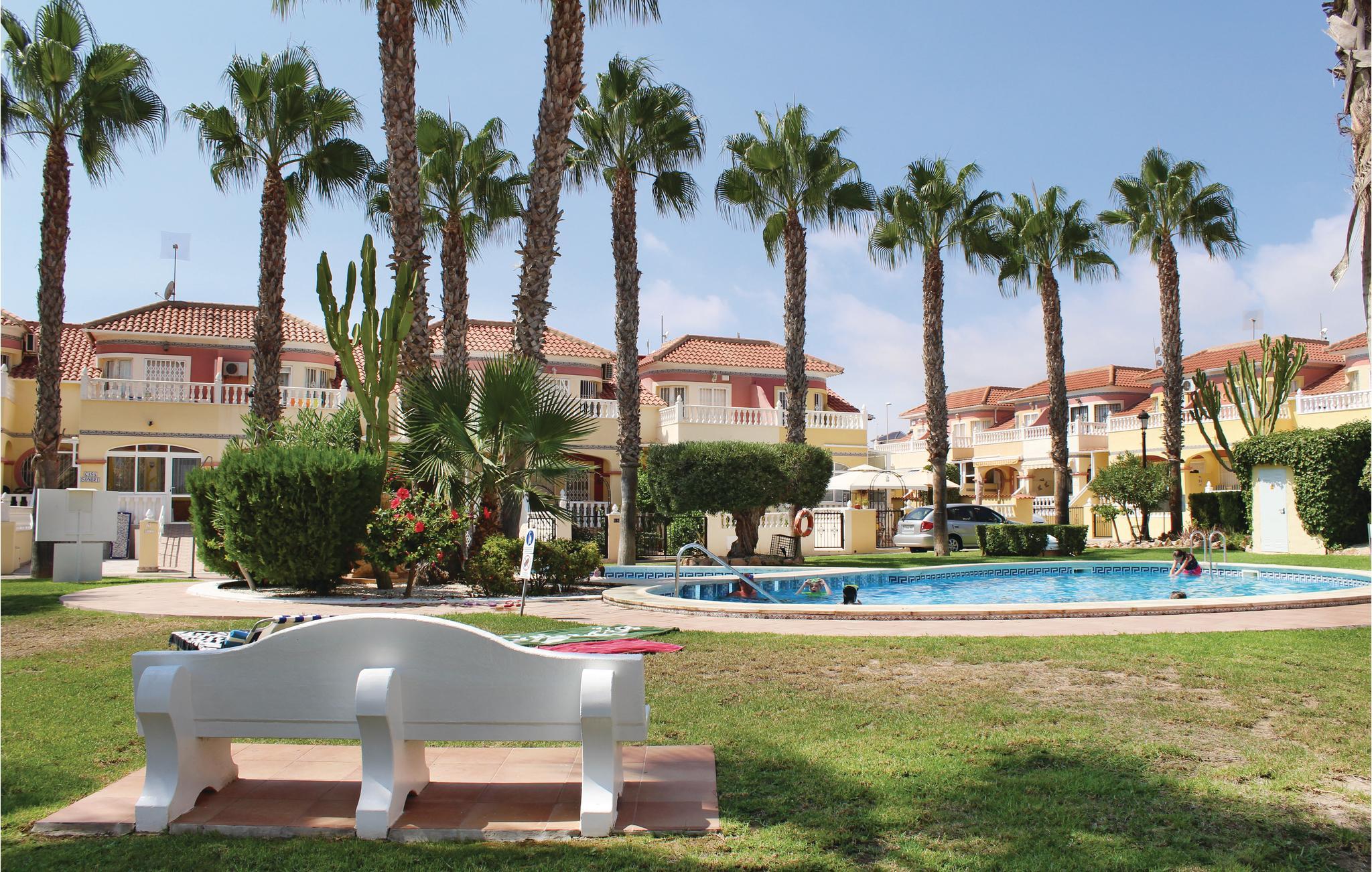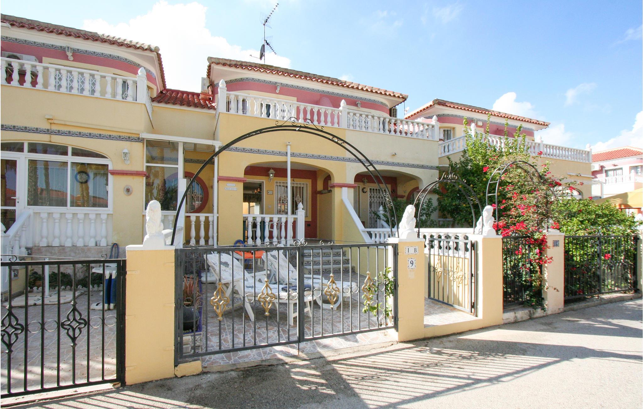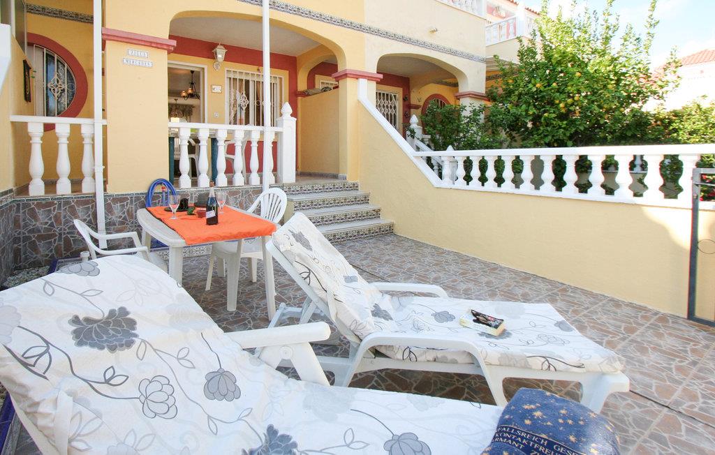 Dette rækkehus ligger i rolige omgivelser med udsigt til den fælles pool i feriekomplekset Colinas de la Zenia, tæt på havet og den skønne sandstrand. Her kan I holde ferie året rundt – forkæl jer selv med en skøn lang vinterferie i det behagelige klima – eller kom om sommeren hvor der er solgaranti. Ud over et populært indkøbscenter er der alle mulige servicetilbud i La Zenia. Der er to km til nærmeste golfbane og nærmeste restaurant ligger kun 400 m væk. Den nærmeste by er den livlige badeby Torrevieja (otte km), med mange former for restauranter, underholdning og seværdigheder.