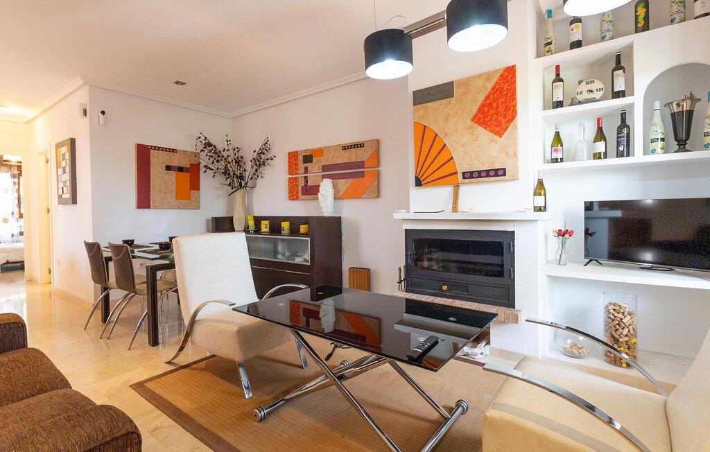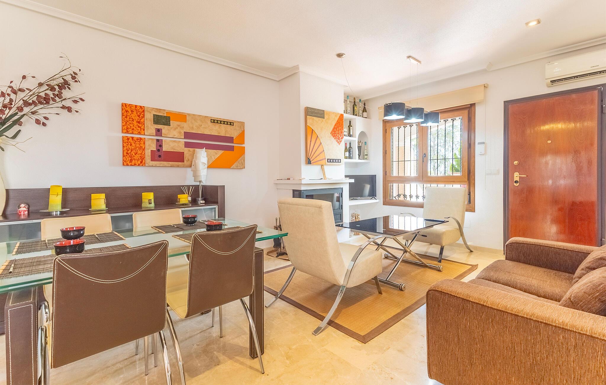 Dette lyse og indbydende feriehus tilbyder et komfortabelt tilflugtssted, hvor I fordyber jer i Orihuela-kystens middelhavsatmosfære. Tilbered jeres yndlingsmåltider og planlæg jeres aktiviteter omkring det indbydende spisebord. Slap af efter en lang dag med et brætspil eller en god bog.