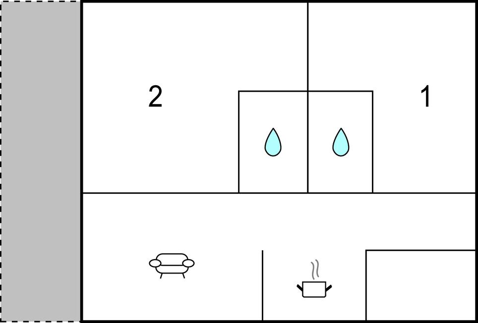 Badeværelse (nr. 2) - WC. Varmt og koldt vand. Bruser