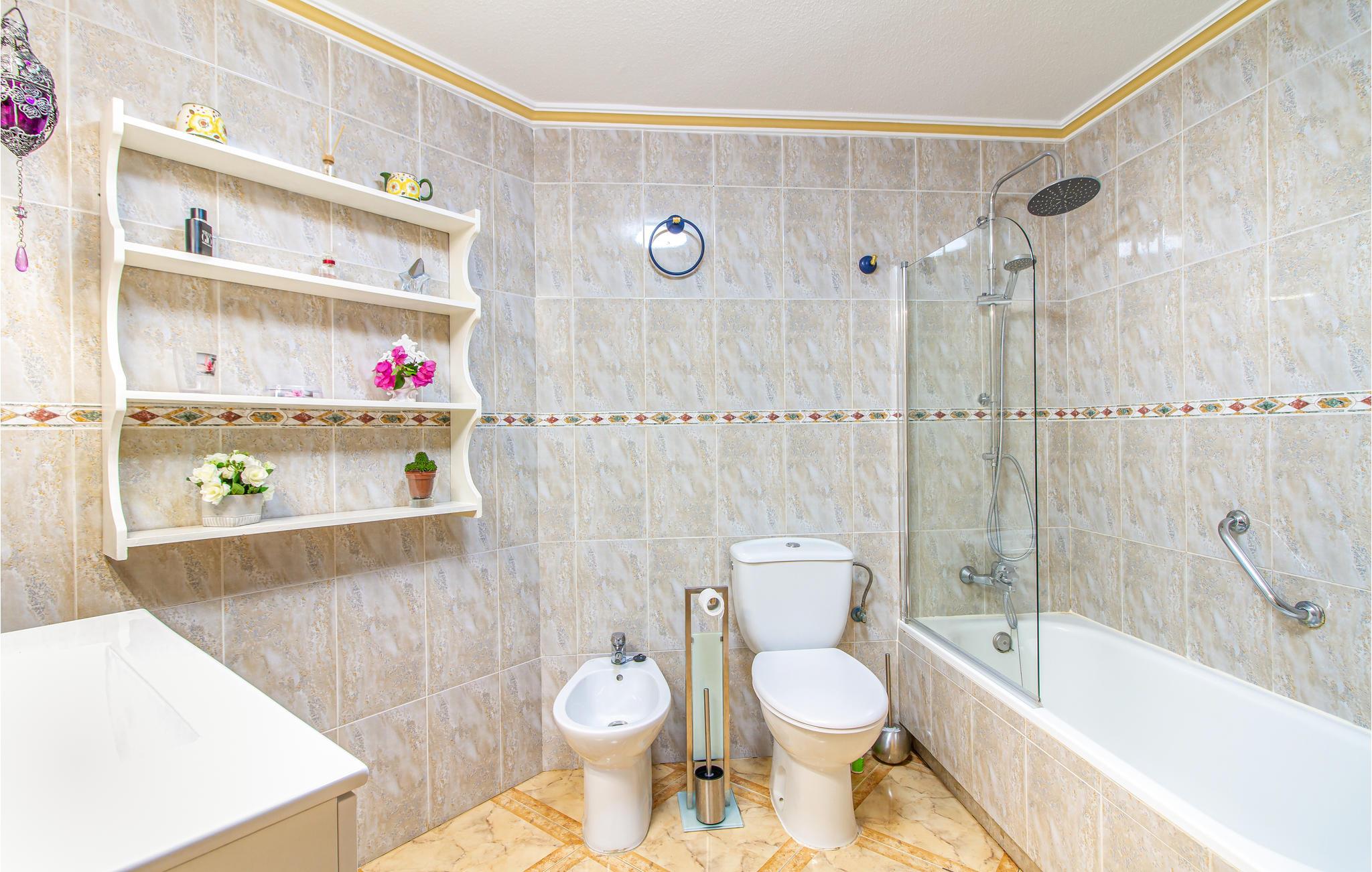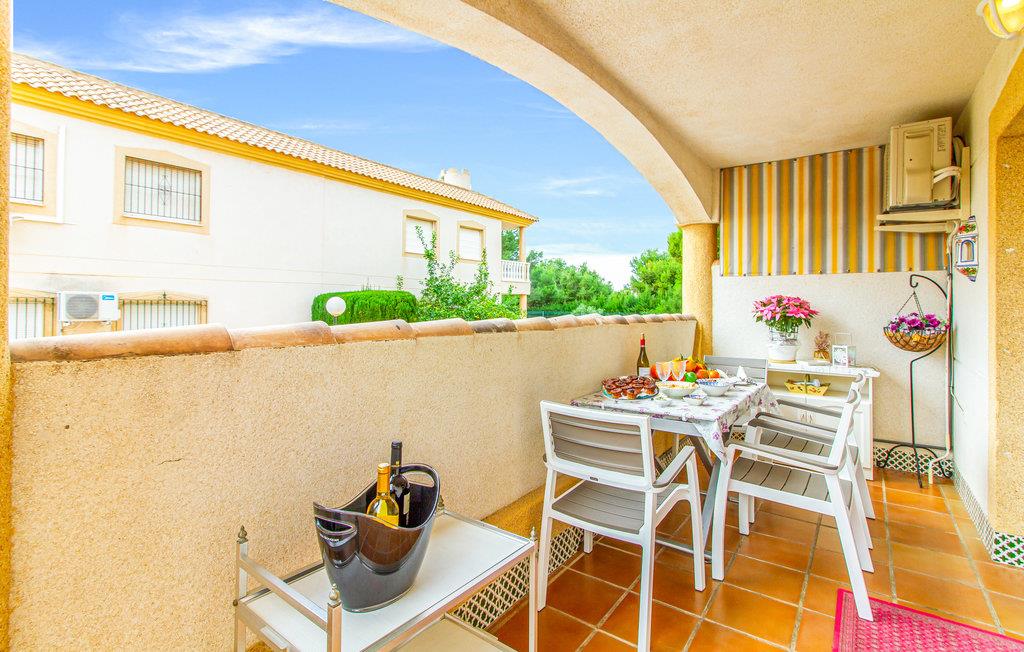 Denne velholdte lejlighed med adgang for kørestolsbrugere ligger i anlægget Zenia Sol II. Den store terrasse indbyder til at slappe af året rundt i de behagelige havemøbler, lav maden på grillen og spis den helt frisk fra risten. Stranden ligger kun få minutters gang væk, og også alle butikkerne og restauranterne kan nås bekvemt til fods. Børn kan bevæge sig uforstyrret her, og bilerne kan parkeres sikkert, da anlægget er låst og beskyttet af porte. Her kan I holde ferie året rundt i det behagelige klima, vælg selv om det skal være varm solferie eller om I vil forkæle jer selv med en vinterferie i det lune klima.