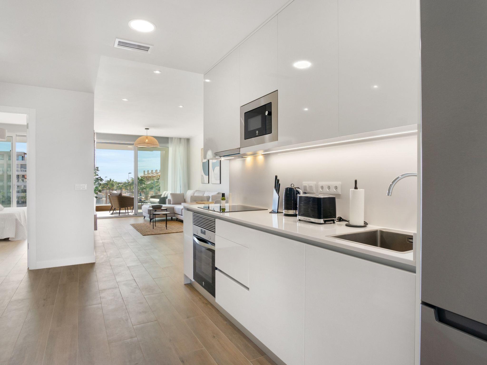 Modern, beautiful apartment block "Ema Residencial", 4 storeys, built in 2023. 3 km from the centre of La Zenia, 4 km from the centre of Punta Prima, 7 km from the centre of Dehesa de Campoamor, traffic calmed area, 2.8 km from the sea, 2.8 km from the beach. For shared use: property (fenced), swimming pool (seasonal availability: 01.Jan. - 31.Dec.). Children's pool, outdoor shower, children's playground. In the house: lift. Grocery, supermarket 950 m, restaurant 100 m, bus stop "Platja Flamenca – Mercadillo" 350 m, railway station "Orihuela" 27 km, sandy beach "Playa la Zenia" 3 km. Golf course (18 hole) 1.9 km. The owner does not accept any groups.