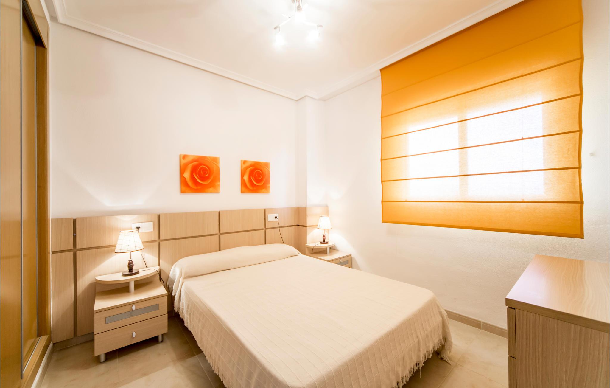 Lejligheden ligger på første sal og har to soveværelser med dobbeltsenge samt to badeværelser, så der er god plads til fire personer, som får en dejlig ferie her. Boligen er lyst og behageligt indrettet, og der er alt, hvad I skal bruge til en vellykket ferie. Klimaanlægget sørger for en behagelig temperatur, selv på varme sommerdage.