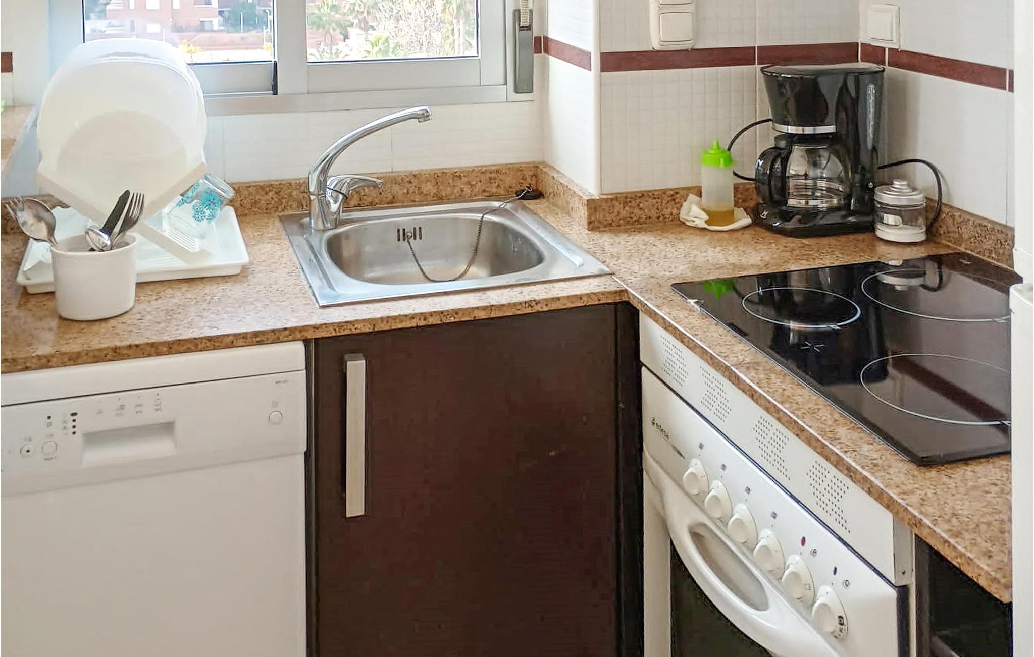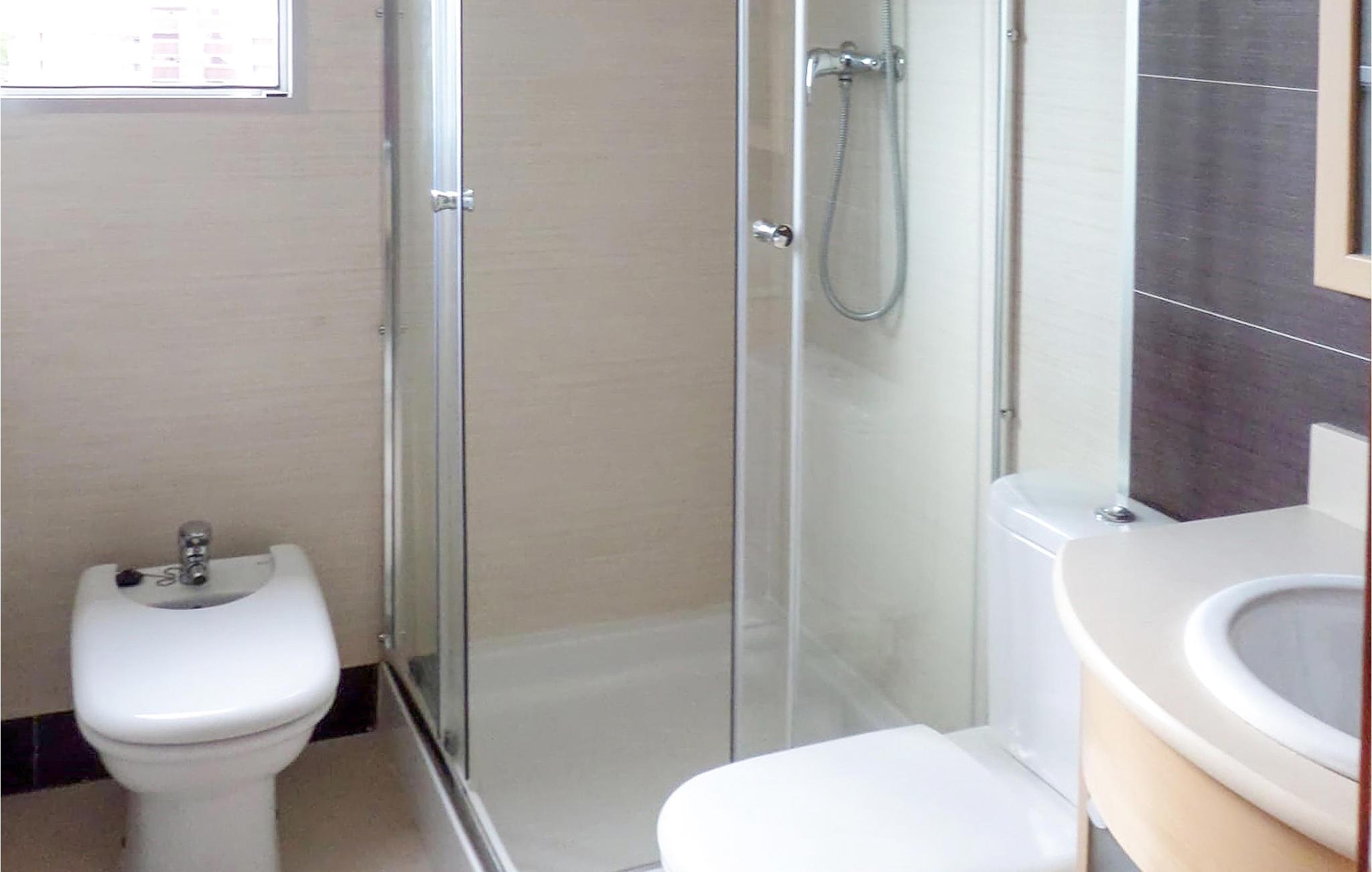 Den lyse lejlighed ligger på 6. sal i en bygning med elevator og tilbyder jer og familien alt, hvad I skal bruge for en vellykket ferie. Efter lange dage på stranden kan I slappe af i stuen med en film eller nyde jeres tilberedte måltider på balkonen. Her kan I nyde en vidunderlig udsigt over havet og hyggelige timer udendørs på den overdækkede altan. I de tidlige morgentimer kan I svømme runder i den fælles pool eller bruge fællesområderne med sauna, squash og pool, mens de fleste af gæsterne stadig sover eller langsomt vågner.