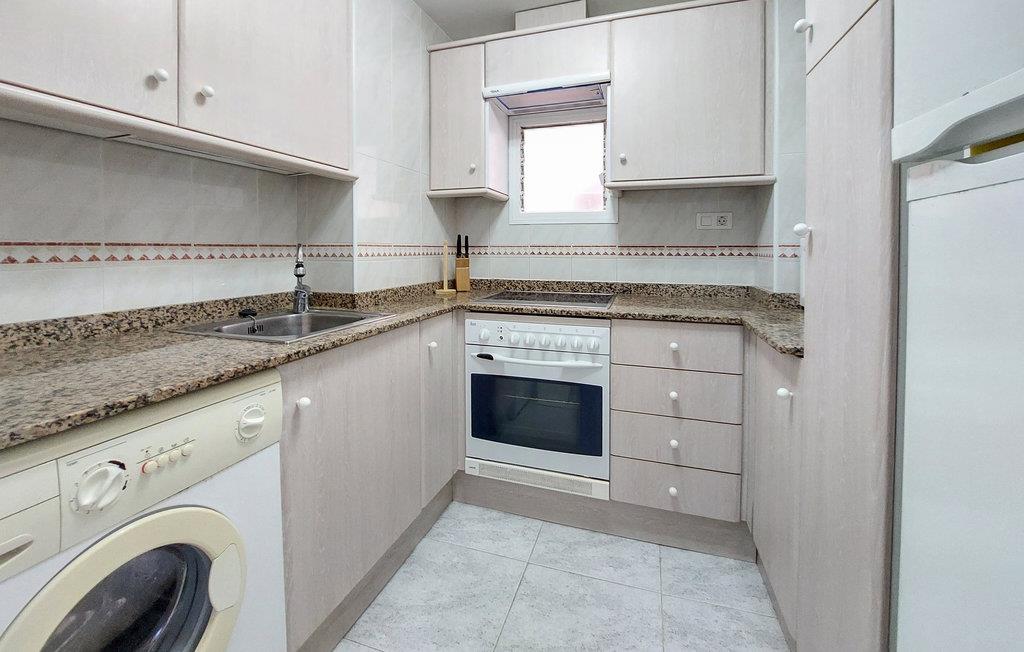 Ferielejligheden er det ideelle sted til en dejlig pause, hvor I kan nyde strandhygge og spændende udflugter i lige høj grad. Den ligger næsten lige over for stranden og er derfor det rigtige valg for ivrige badenymfer og badeløver. Læg planer for dagen over morgenmaden i stuen og vend tilbage til jeres bolig efter dagens eventyr. Lejligheden er moderne og forholdsvis enkelt indrettet, men byder på gode faciliteter. I kan også nyde morgenkaffen og de første solstråler udenfor på den overdækkede balkon med markise og lade blikket vandre ud over stranden og havet, så I får lyst til at tage på stranden med det samme.