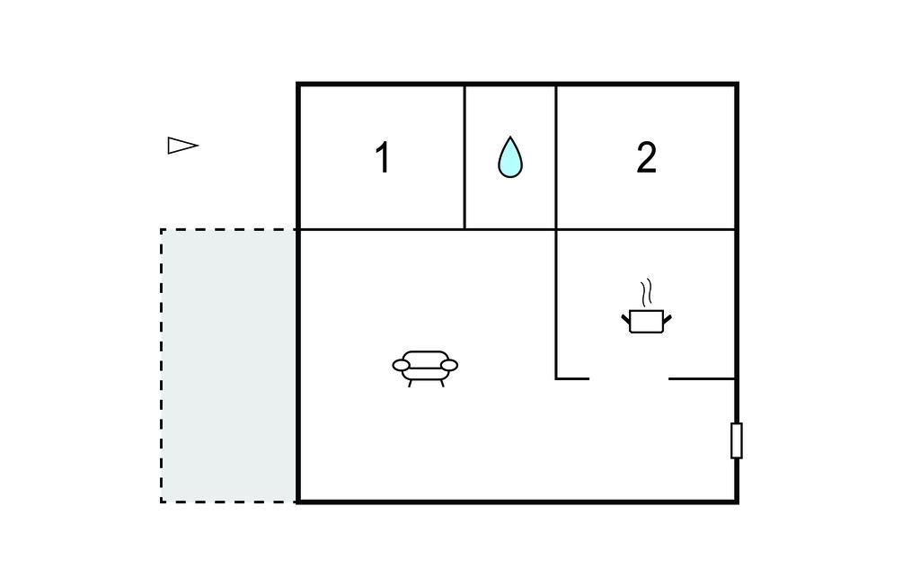 Opholdsstue 25m2 - 2 Sovepladser. (Sofa, madras eller lignende).