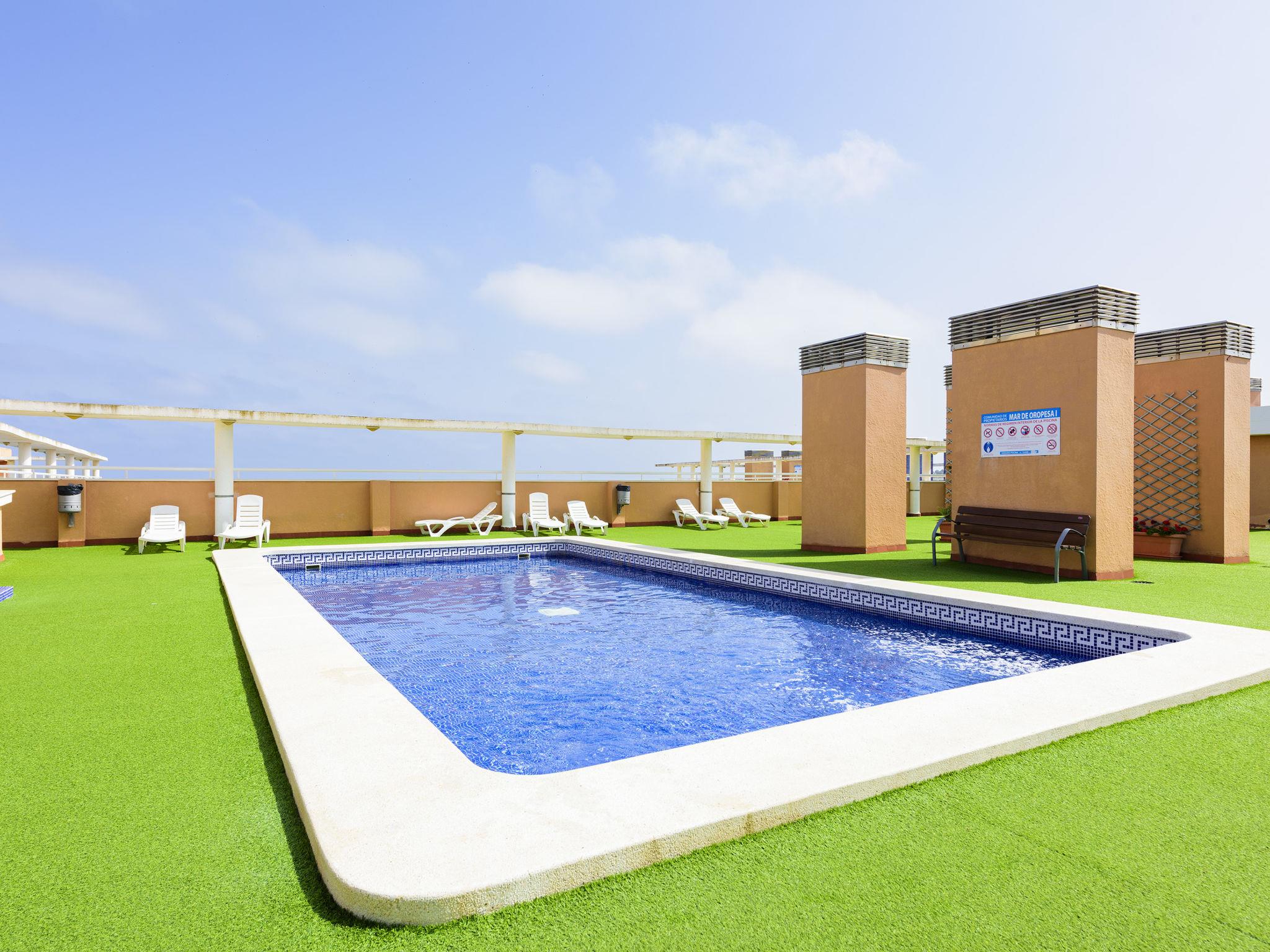 Comfortable apartment block "Mar de Oropesa I - Playa Concha". In a central, sunny position, 300 m from the sea, 300 m from the beach. For shared use: 4 swimming pools (depth 40 - 145 cm, seasonal availability: 01.Jun. - 30.Sep.). Shower/WC in the pool area, children's pool, table tennis, children's playground. In the house: lift. Roofed, parking at the house, public parking on the road. Parking space or garage only for small to medium-sized cars. Shop, supermarket, restaurant, bar, café 200 m, bus stop 100 m, railway station 800 m, sandy beach "La Concha" 300 m. Groups of teenagers on request only. Neighbourhood highly sensitive to noise. Quietness and good behaviour expected.