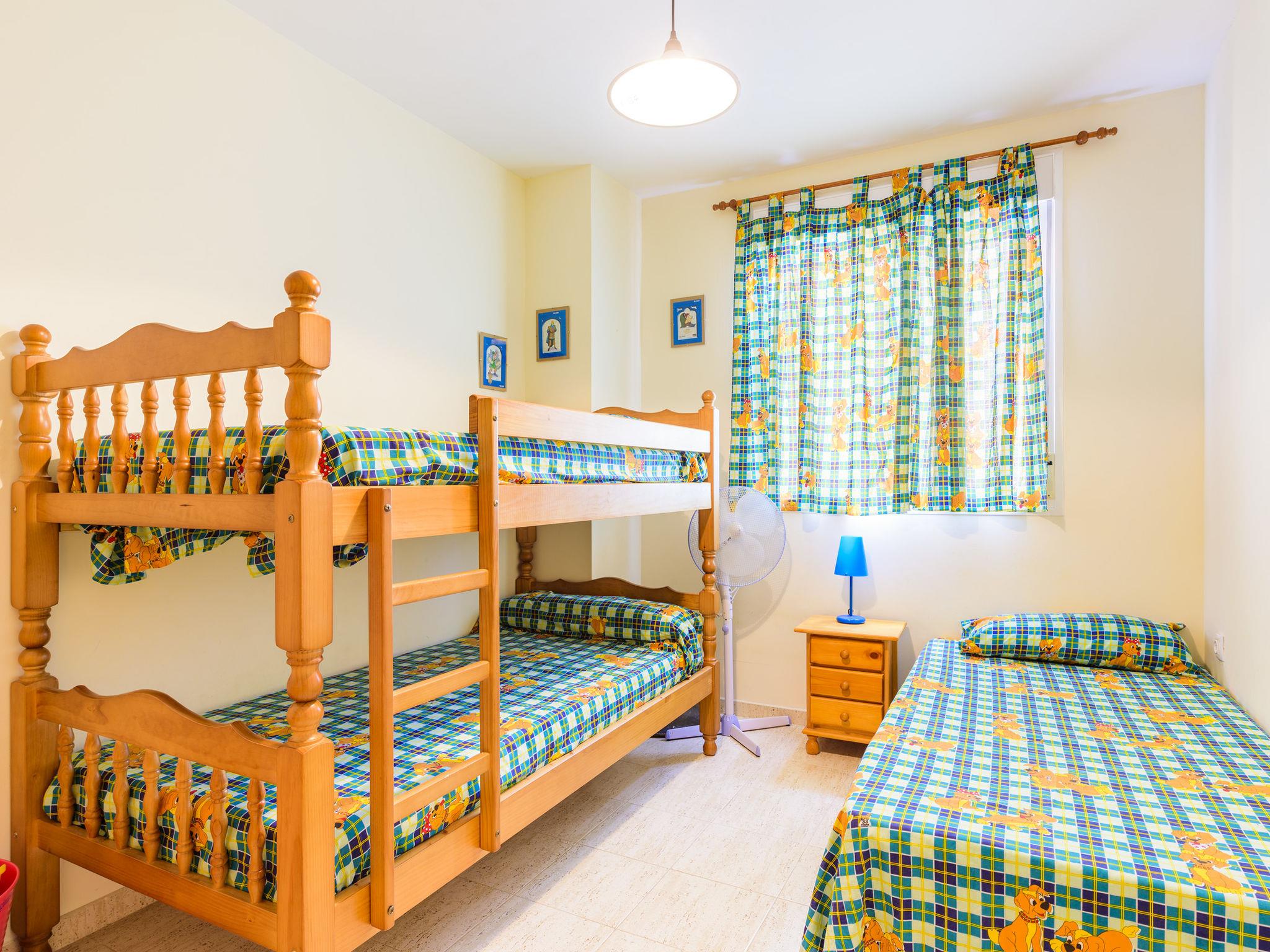 "Mar de Oropesa I", 2-room apartment 73 m2 on 1st floor. Practical and comfortable furnishings: living/dining room with dining table, digital TV, flat screen, air conditioning and forced-air heating. Exit to the terrace. 1 room with 1 double bed (150 cm, length 190 cm). 1 room with 3 beds (90 cm, length 190 cm). Open kitchen (dishwasher, 4 ceramic glass hob hotplates, toaster, microwave, freezer, electric coffee machine). Bath/WC. Terrace. Terrace furniture. View of the resort. Facilities: washing machine, iron, hair dryer. Internet (WiFi, free). Garage space n 27. Please note: suitable for families. Non-smokers only. VT-43184-CS // Reg. Nr.: ESFCTU00001202600040012600000000000000000VT-43184-CS4