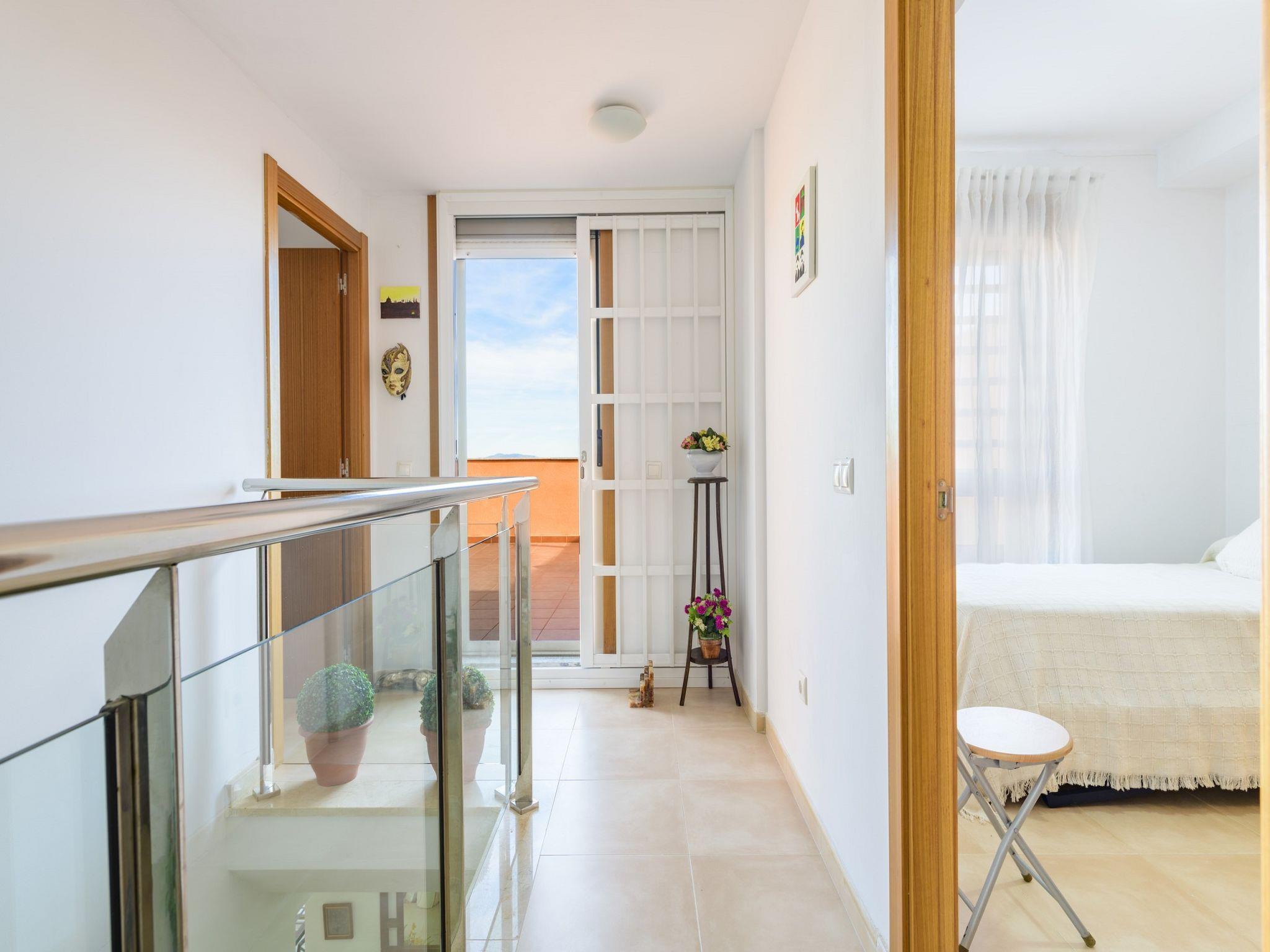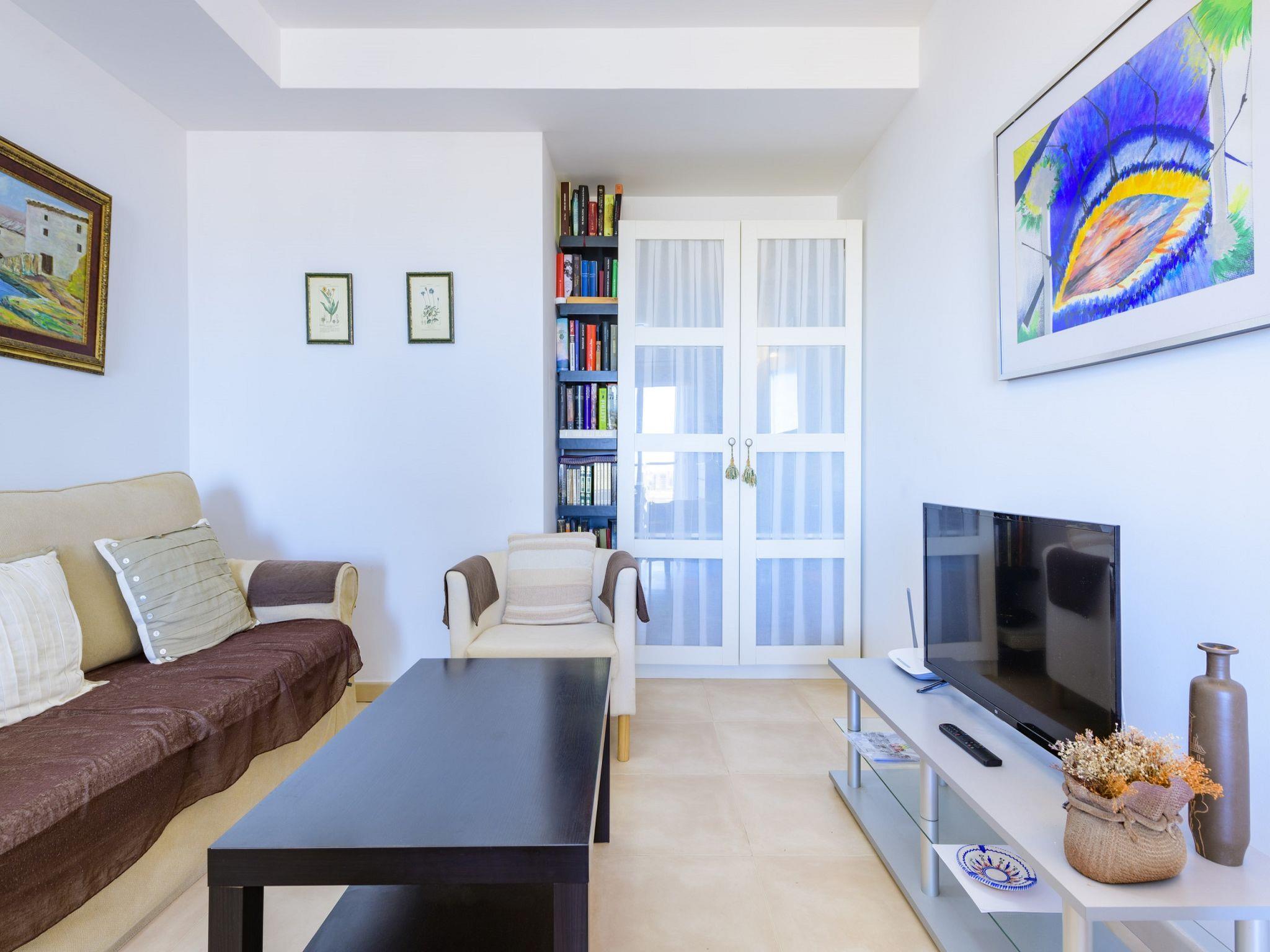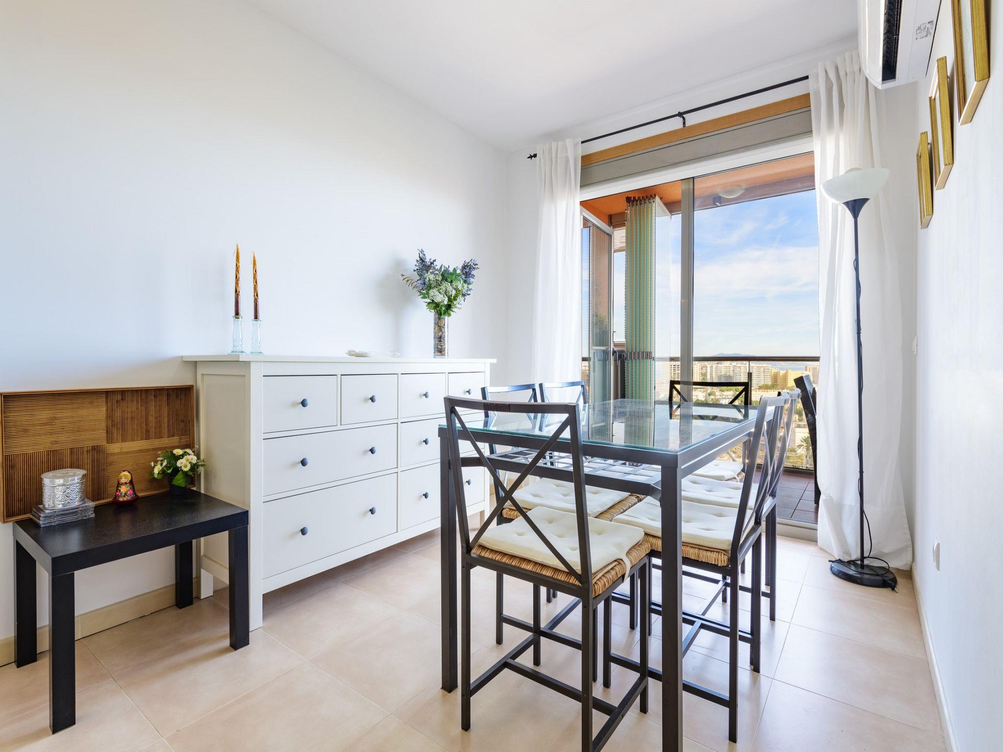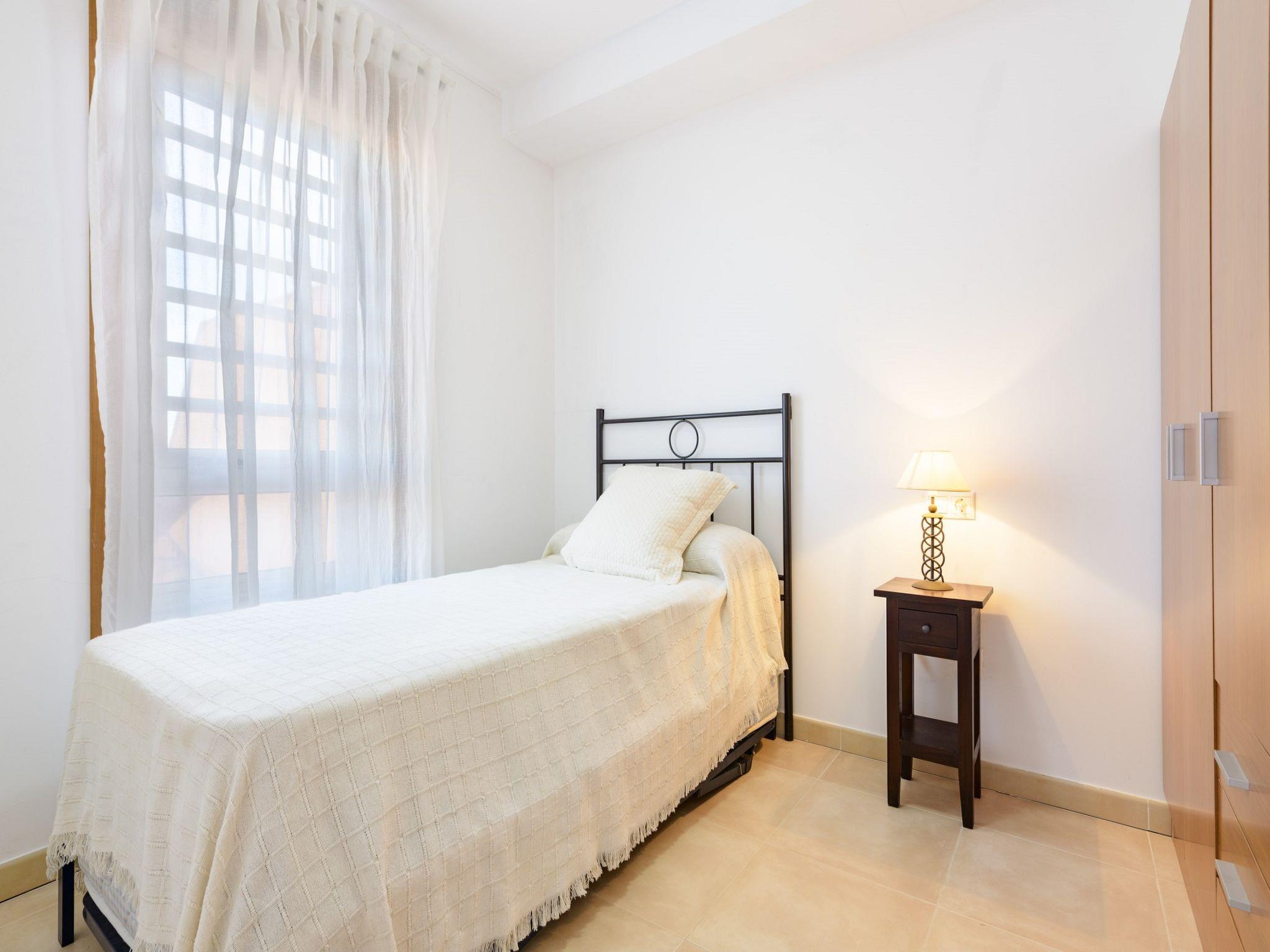 "Algaida", 4-room apartment 100 m2 on 2 levels on 11st floor. Practical and comfortable furnishings: living/dining room with dining table, digital TV, flat screen, air conditioning, fan and forced-air heating. Exit to the terrace. 1 room with 1 french bed (150 cm, length 200 cm), air conditioning and forced-air heating. Kitchen (oven, dishwasher, 4 ceramic glass hob hotplates, toaster, kettle, microwave, freezer, electric coffee machine, Capsules for coffee machine (Dolce Gusto) extra). Bath/bidet/WC. Upper floor: 1 room with 2 beds (90 cm, length 200 cm), air conditioning and forced-air heating. 1 room with 1 pull-out bed (2 x 90 cm, length 190 cm). Bath/WC. Terrace, large terrace 40 m2. Terrace furniture. Facilities: washing machine, iron, children's high chair, baby cot for up to 2 year olds, hair dryer. Internet (WiFi, free). Parking space n 10 (roofed) at the house. Please note: suitable for families. Non-smokers only. 1 small pet/ dog allowed. VT-44650-CS // Reg. Nr.: ESFCTU00001202600055020300000000000000000VT-44650-CS1