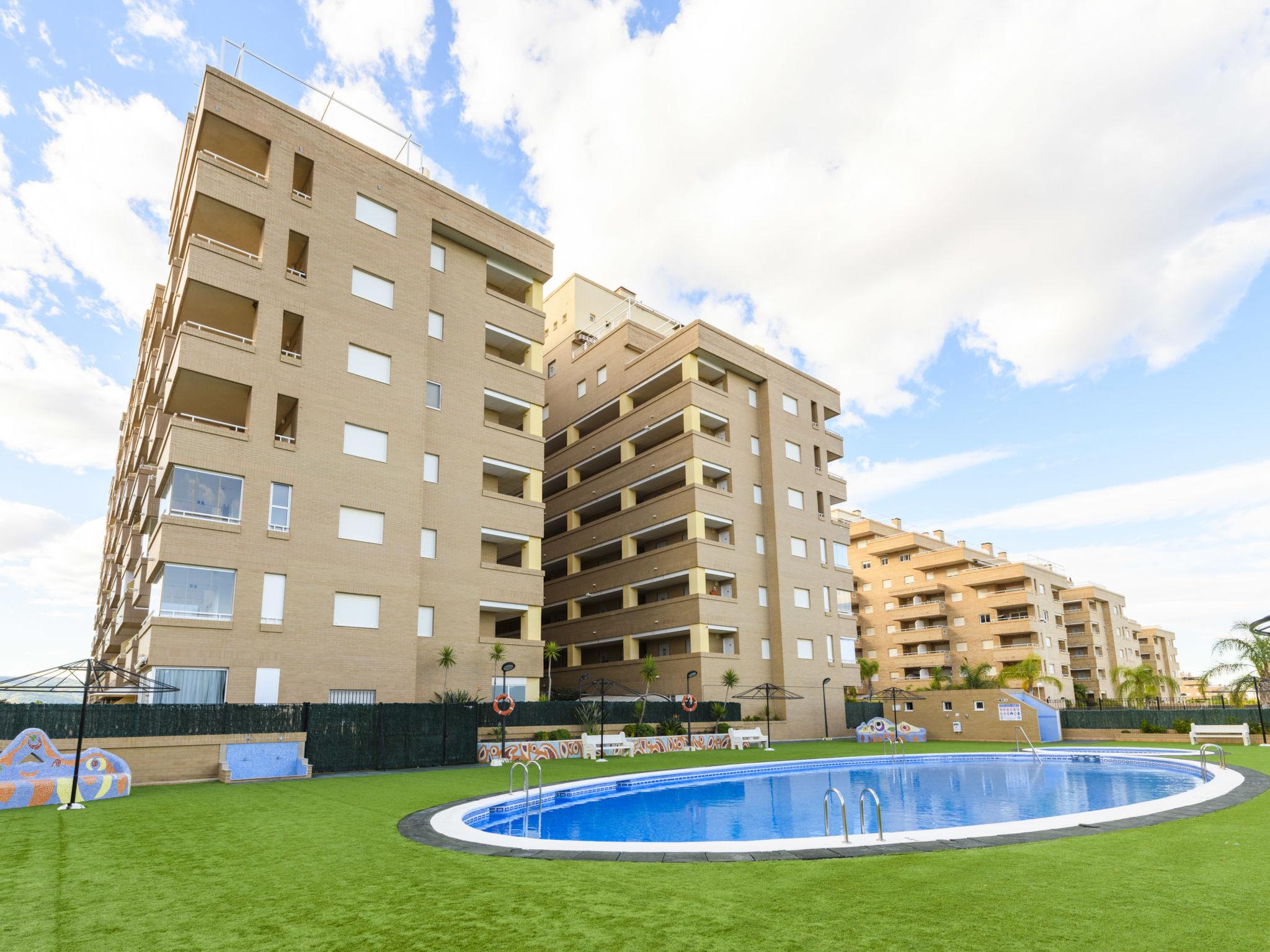 Marina d'Or: Large residence "Costa Caribe III". In a sunny position, 300 m from the sea, 300 m from the beach. For shared use: garden, swimming pool round (20 x 10 m, depth 70 - 230 cm, seasonal availability: 01.Jul. - 15.Sep.). Children's pool. In the house: lift. Supermarket 700 m, restaurant, bar, café 800 m, bus stop 1.1 km, railway station 3.2 km.