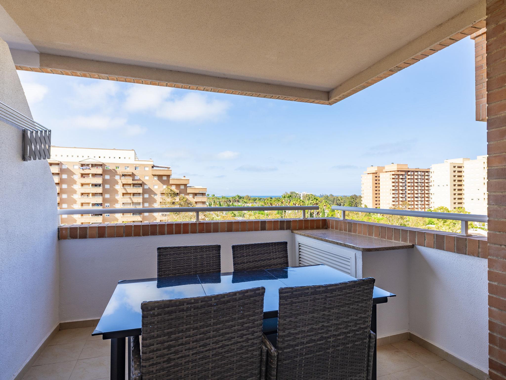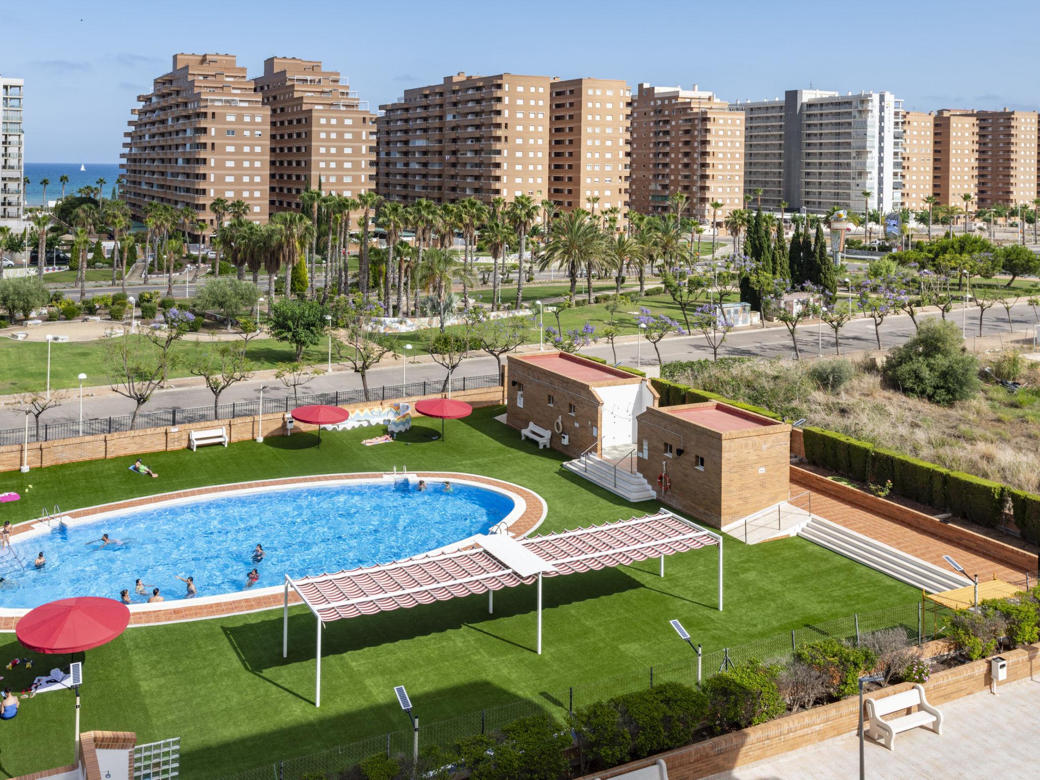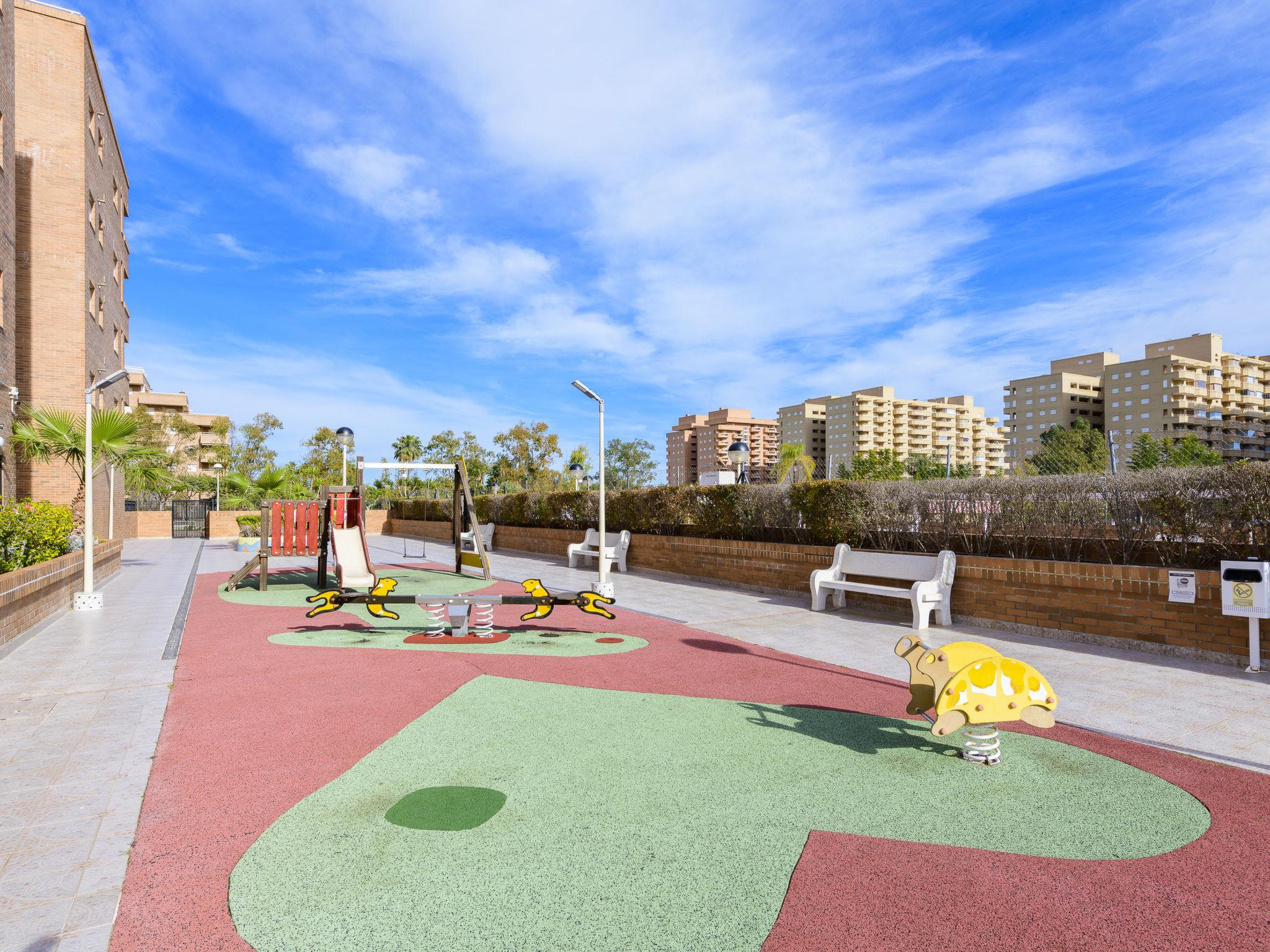 Magic World: Large apartment block "Torremar". In the centre of Magic World, in a central, sunny position, 300 m from the sea, 250 m from the beach. For shared use: garden, swimming pool (20 x 10 m, depth 70 - 240 cm, seasonal availability: 01.Jun. - 30.Sep.). Children's pool, outdoor shower, children's playground (slide, swing). In the house: lift. Roofed, parking at the house, public parking on the road. Parking space or garage only for small to medium-sized cars. Supermarket 100 m, restaurant 200 m, bus stop 100 m, railway station "Oropesa de Mar" 3 km, sandy beach 250 m. Children's playground 200 m. Nearby attractions: Jardín Encantado 500 m. Please note: entertainment in the season. Suitable for families. Groups of teenagers on request only. Neighbourhood highly sensitive to noise. Quietness and good behaviour expected.