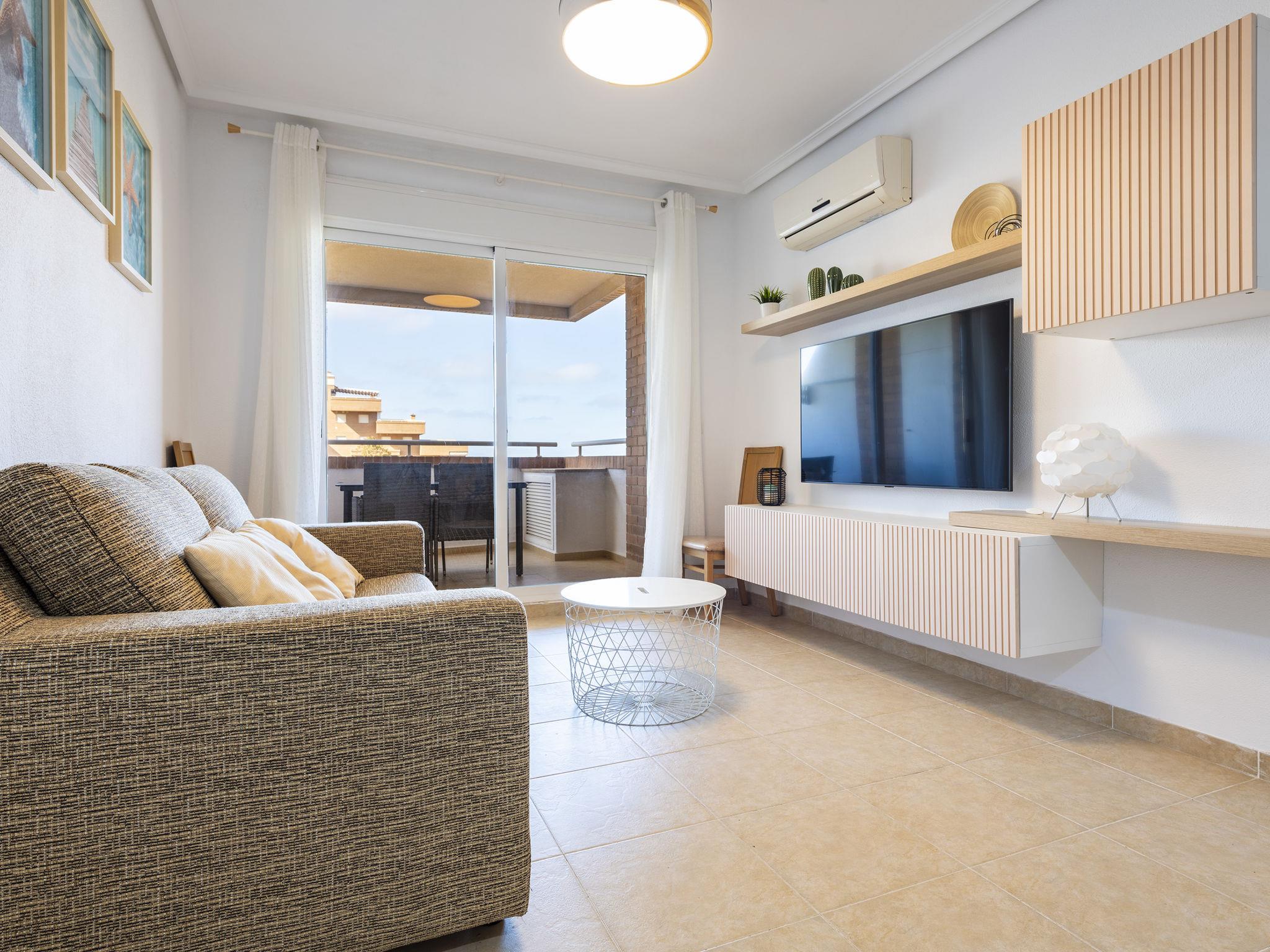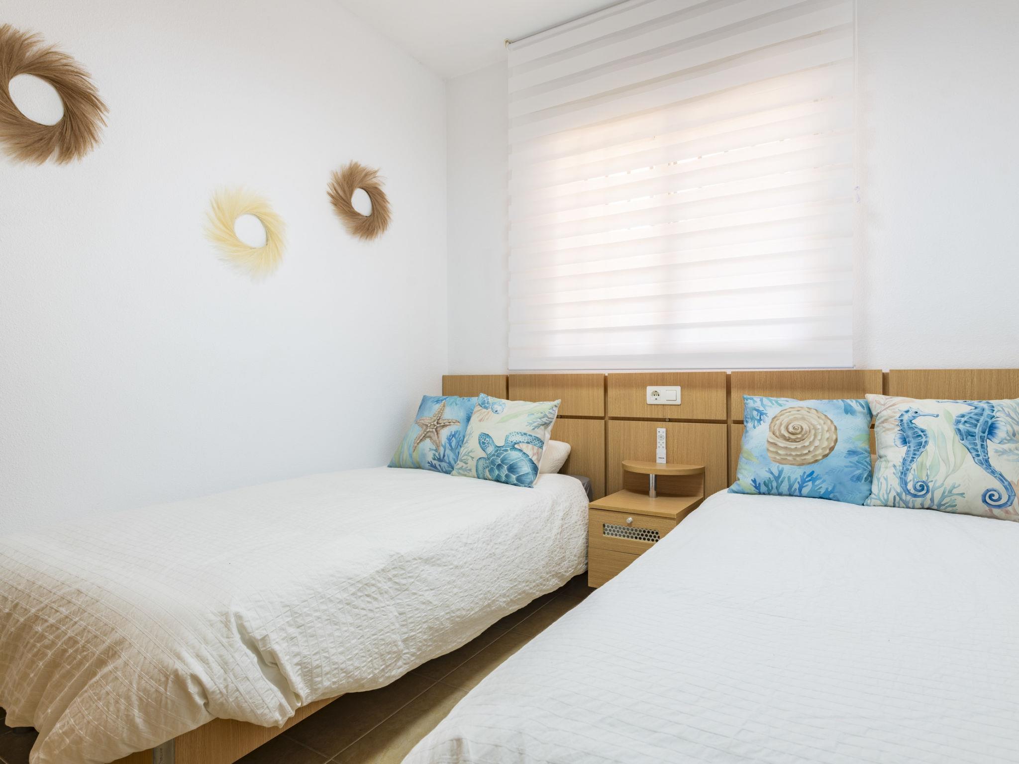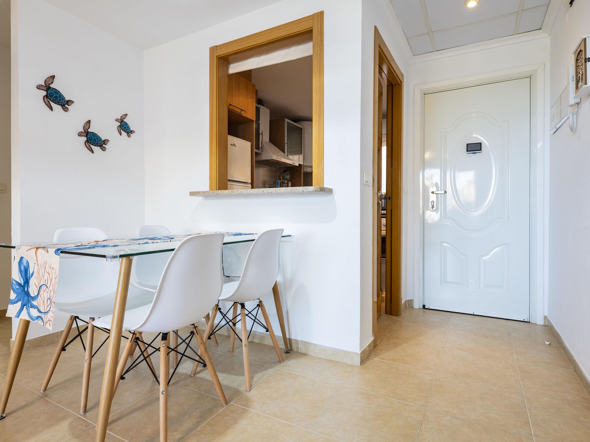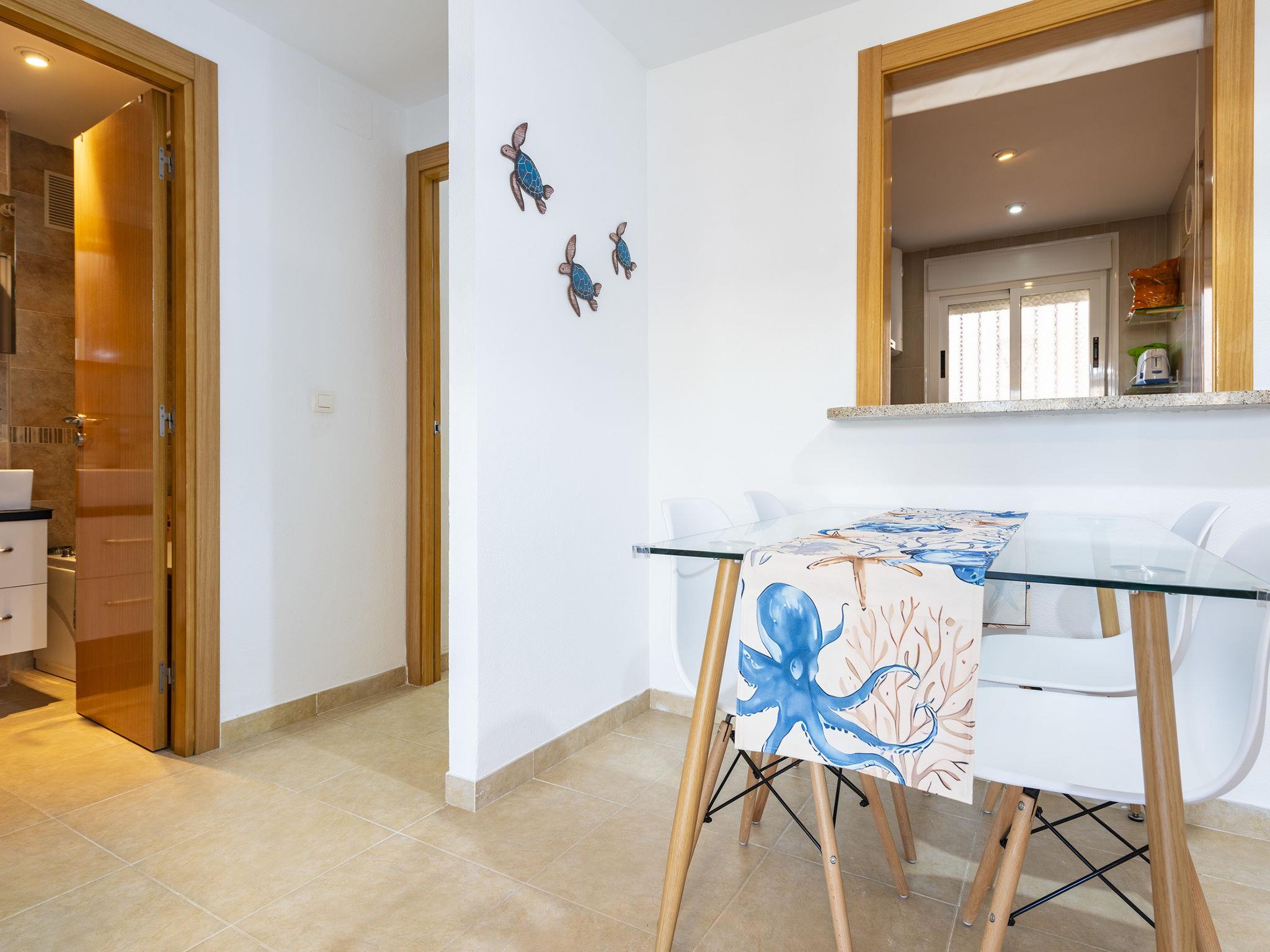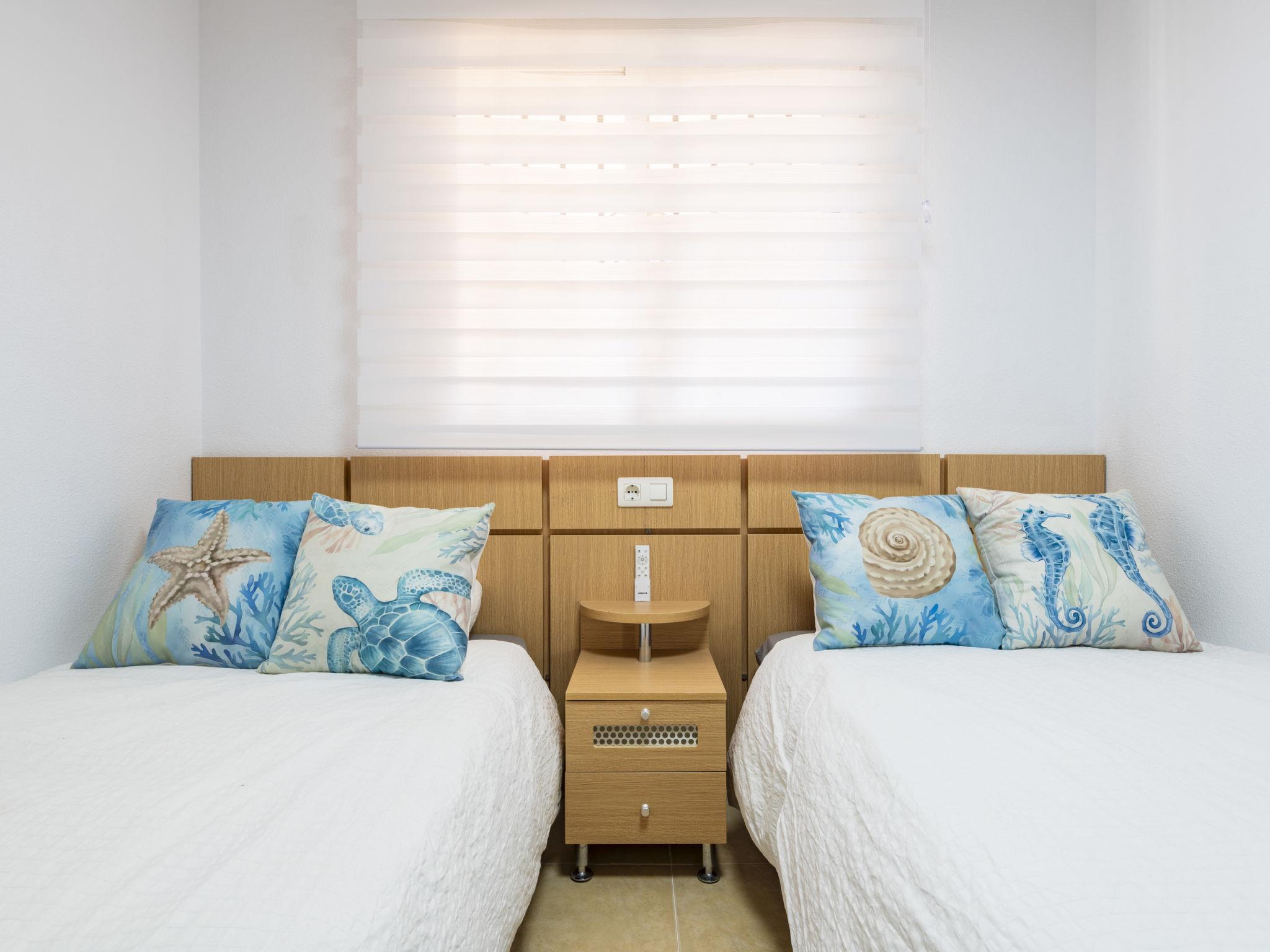 "Torremar Vistas Mar", 3-room apartment 60 m2 on 4th floor. Bright, modern furnishings: living/dining room with dining table, digital TV, flat screen, air conditioning and forced-air heating. Exit to the terrace. 1 room with 1 french bed (135 cm, length 190 cm), fan. 1 room with 2 beds (90 cm, length 190 cm). Kitchen (oven, dishwasher, 4 ceramic glass hob hotplates, toaster, microwave, freezer, electric coffee machine, Capsules for coffee machine (NESPRESSO) free) with hatch. Bath/bidet/WC. Boiler (50 litres). Heating not available in all rooms. Terrace. Terrace furniture. Facilities: washing machine, iron, children's high chair, hair dryer. Internet (WiFi, free). Parking space n 176 (roofed) at the house. Please note: non-smokers only. VT-44774-CS // Reg. Nr.: ESFCTU00001202600058825100000000000000000VT-44774-CS4