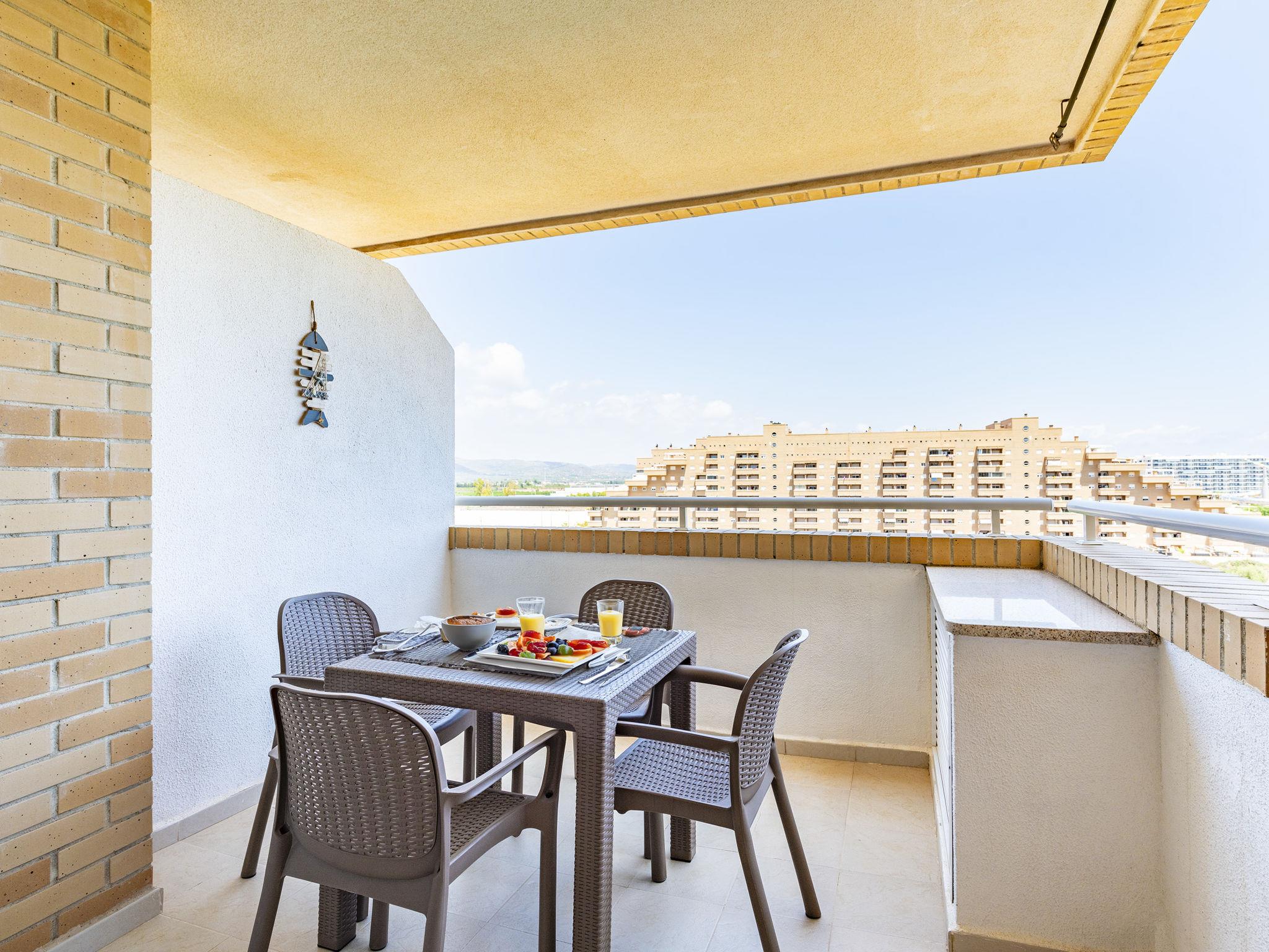 "Costa Azahar", 3-room apartment 60 m2 on 6th floor. Bright, practical and comfortable furnishings: living/dining room with dining table, TV, digital TV, air conditioning and forced-air heating. Exit to the terrace. 1 room with 1 french bed (135 cm, length 190 cm). 1 room with 2 beds (90 cm, length 190 cm), fan. Kitchen (oven, dishwasher, 4 ceramic glass hob hotplates, toaster, kettle, microwave, freezer) with hatch. Bath/WC. Terrace. Terrace furniture. Side view of the sea and the mountains. Facilities: washing machine, iron, hair dryer. Internet (WiFi, free). Parking space n 342 (roofed). Suitable for families. VT-44866-CS // Reg. Nr.: ESFCTU00001202600058990600000000000000000VT-44866-CS2