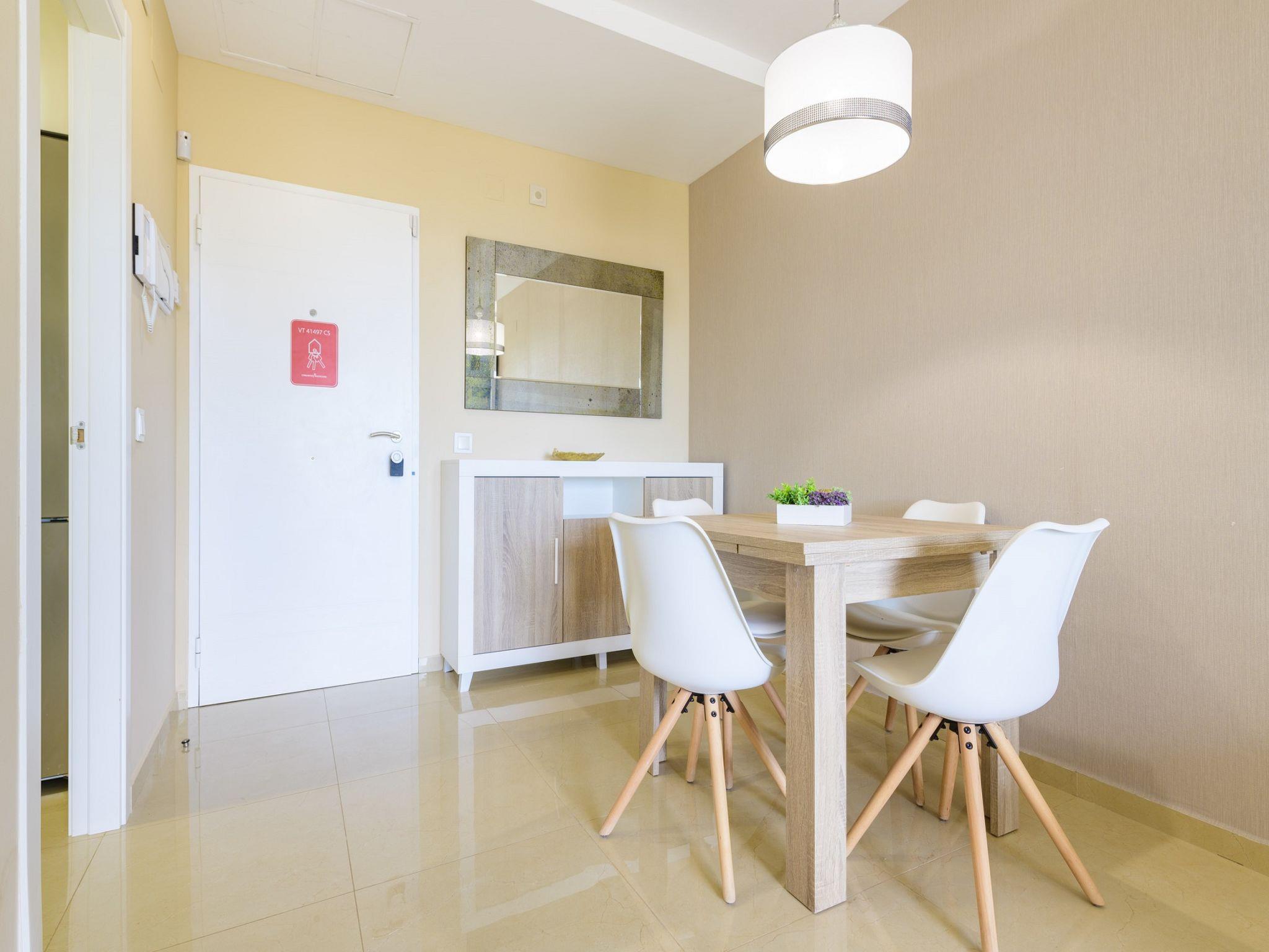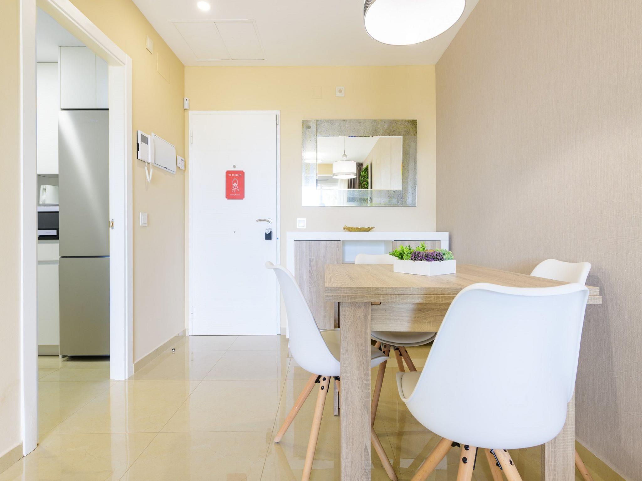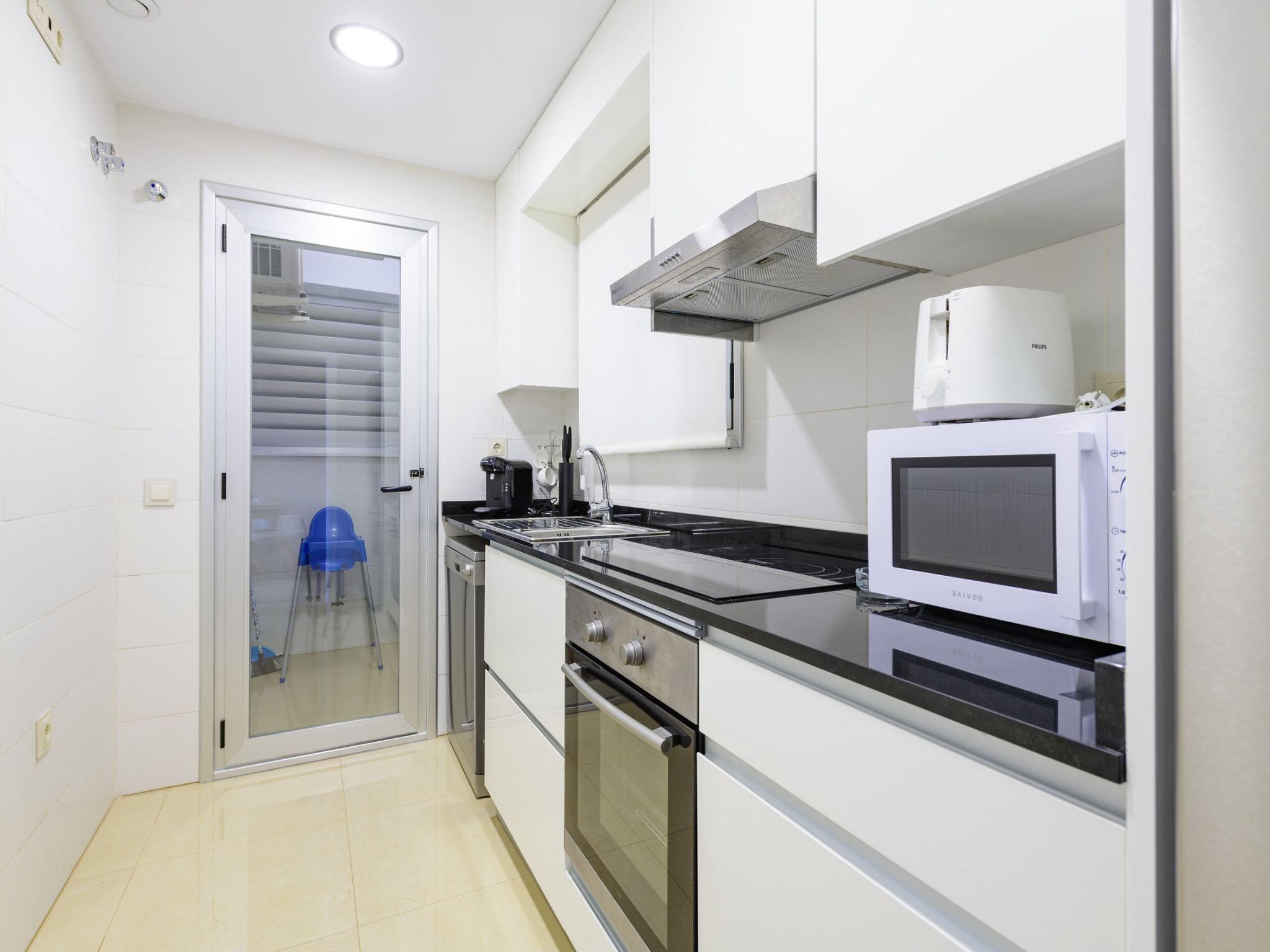 "Miramar", 3-room apartment 60 m2. Comfortable and modern furnishings: living/dining room with dining table, satellite TV and digital TV (flat screen), air conditioning and forced-air heating. Exit to the terrace. 1 double bedroom with 2 beds (90 cm, length 190 cm). 1 room with 1 french bed (135 cm, length 190 cm), shower/bidet/WC. Exit to the balcony. Kitchen (oven, dishwasher, 4 ceramic glass hob hotplates, toaster, microwave, freezer, electric coffee machine). Shower/bidet/WC. Large terrace. Terrace furniture. Very beautiful view of the sea. Facilities: washing machine, iron, children's high chair, baby cot for up to 2 year olds, hair dryer. Internet (WiFi, free). Please note: suitable for families. Non-smoking house. VT-43808-CS // Reg. Nr.: ESFCTU00001202600088848100000000000000000VT-43808-CS1