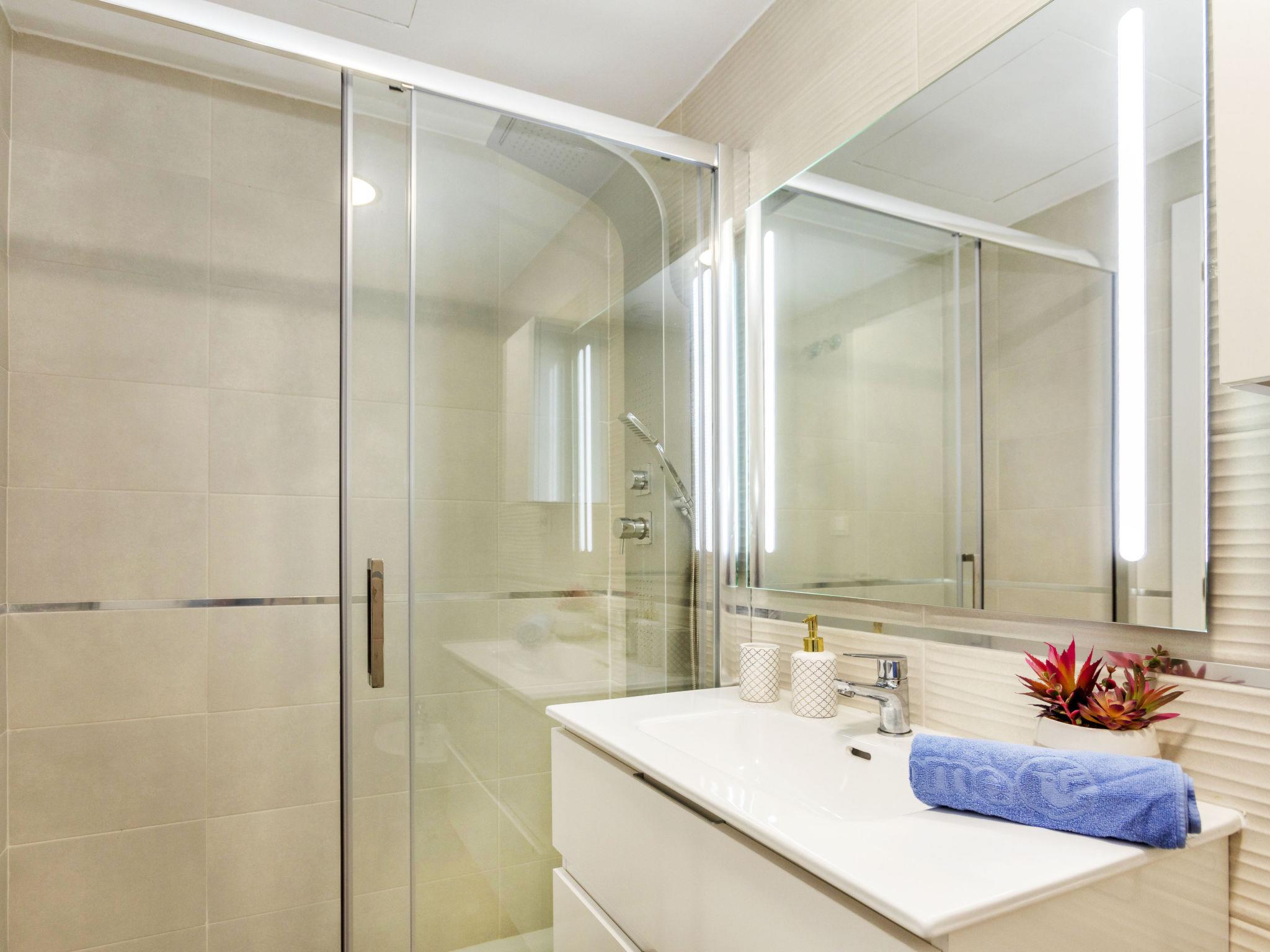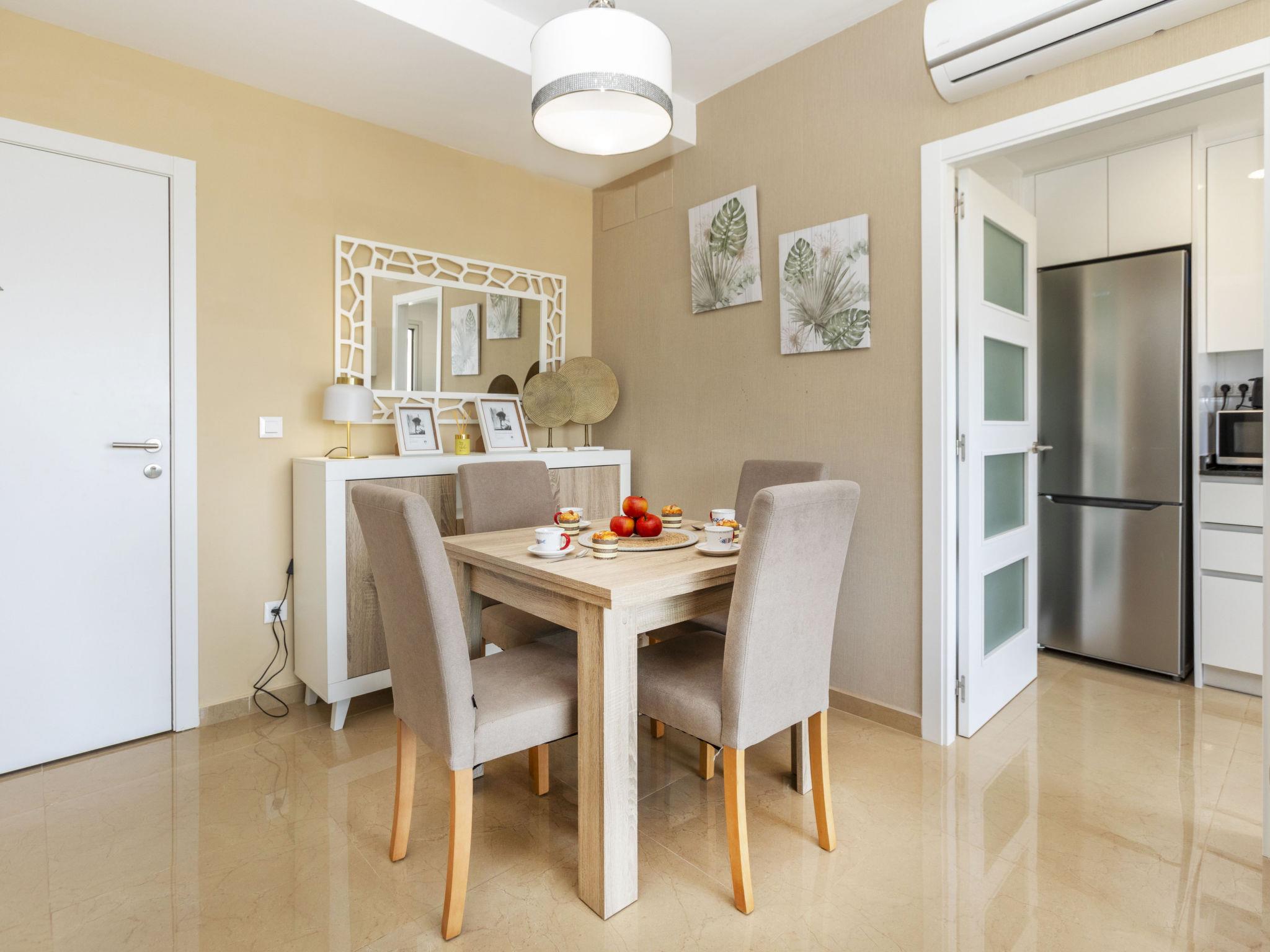 "Ciudad Jardin II", 3-room apartment 70 m2. Practical and comfortable furnishings: living/dining room with digital TV, air conditioning, forced-air heating and electric shutters. Exit to the terrace. 1 room with 1 french bed (150 cm, length 200 cm), shower/bidet/WC. 1 room with 2 beds (90 cm, length 200 cm). Kitchen (oven, dishwasher, 3 ceramic glass hob hotplates, toaster, kettle, microwave, freezer, electric coffee machine). Exit to the terrace. Shower/bidet/WC. Large terrace 19 m2. Terrace furniture. Side view of the sea and the resort. Facilities: washing machine, dryer, iron, hair dryer. Internet (WiFi, free). Parking space n 213 (roofed). Please note: non-smokers only. Please note: construction work is underway around the building. R000000001