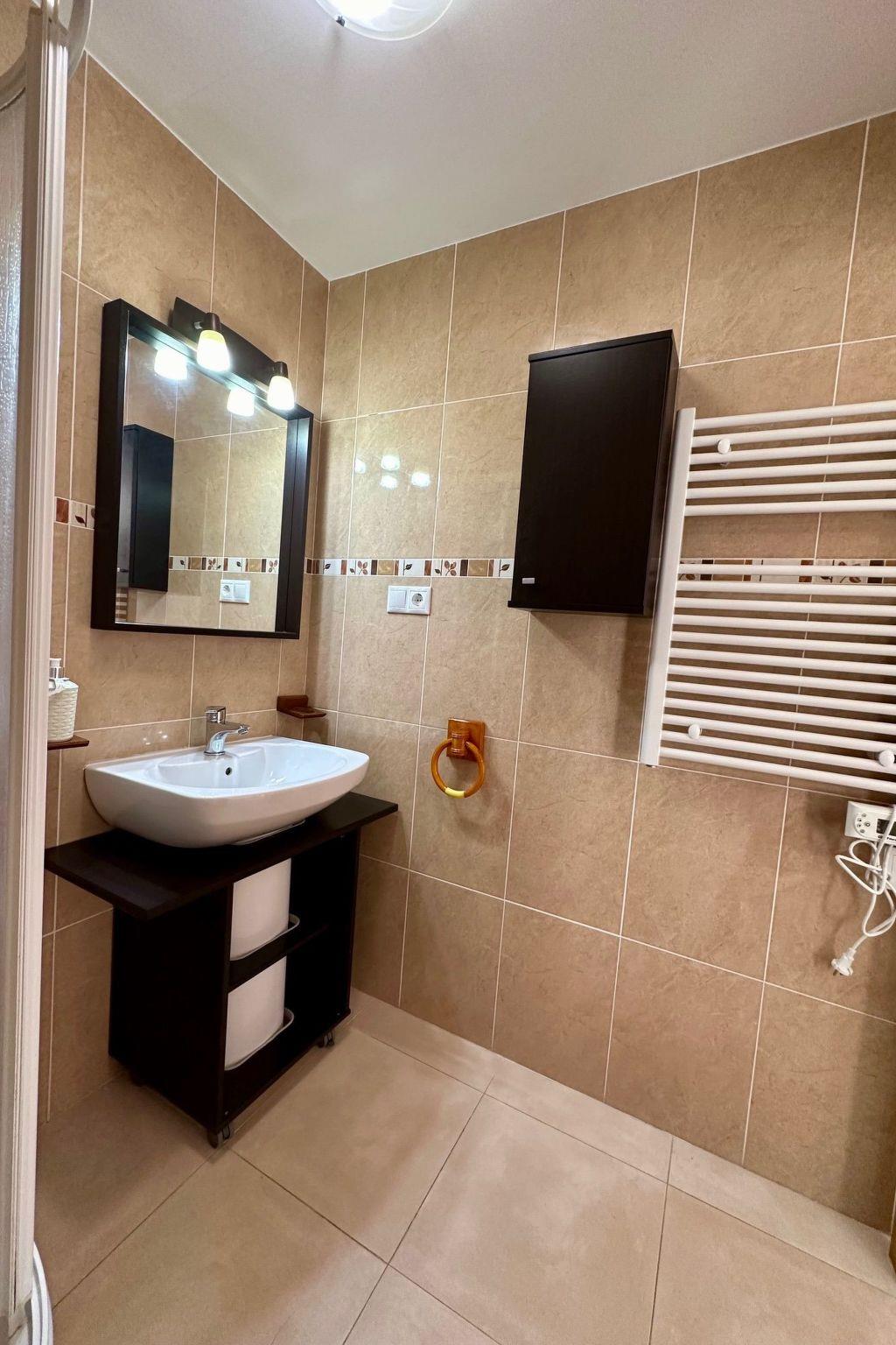 Inside, the flat welcomes you with an atmosphere of comfort and functionality. It is equipped with everything you need to ensure a carefree stay. Two bedrooms are carefully arranged for your rest: the main one with a comfortable double bed and the second one with two single beds, perfect for companions or children. In addition, a sofa bed in the common area offers extra space for two more people. For your convenience, the accommodation includes two full bathrooms, one with a shower and the other with a bathtub, as well as a full kitchen for preparing your favourite dishes, a washing machine for exclusive use and a dishwasher to make your stay even more comfortable.