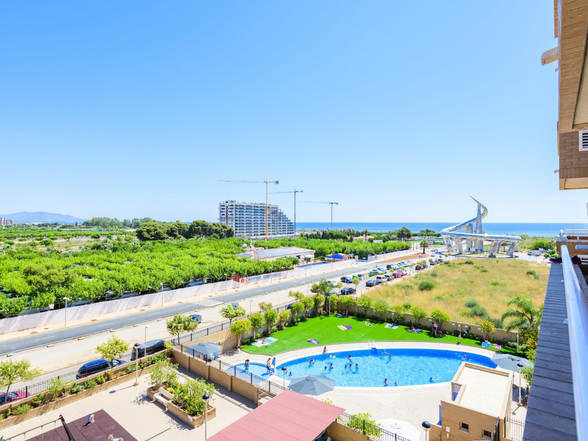 Marina D'or: Comfortable apartment block "Jardines del Mar III". On the outskirts, 3.5 km from the centre of Oropesa del Mar, in the district Marina D´or, in a busy, sunny position, 300 m from the sea, 300 m from the beach, on a main road. For shared use: garden, swimming pool round (20 x 10 m, depth 70 - 270 cm, seasonal availability: 01.Jun. - 15.Sep. pool opening hours: 10:00-14:00 and 16:00-20:00). Children's pool, outdoor shower, children's playground. In the house: lift. Communal covered parking. Supermarket, restaurant, bar, café 200 m, bus stop 1.2 km, railway station "Oropesa de Mar" 3 km, sandy beach 300 m. Sports harbour 6 km, golf course 22 km. Nearby attractions: Parque Acuatico 1 km. Groups of teenagers on request only. Please note: motorway 900 m from the property. Main road 300 m from the property. Railway line 300 m from the property. Nightclub/disco 300 m from the property. Additional accommodations can be booked. Property ref. ES9653.8 is situated on the same property. Neighbourhood highly sensitive to noise. Quietness and good behaviour expected.