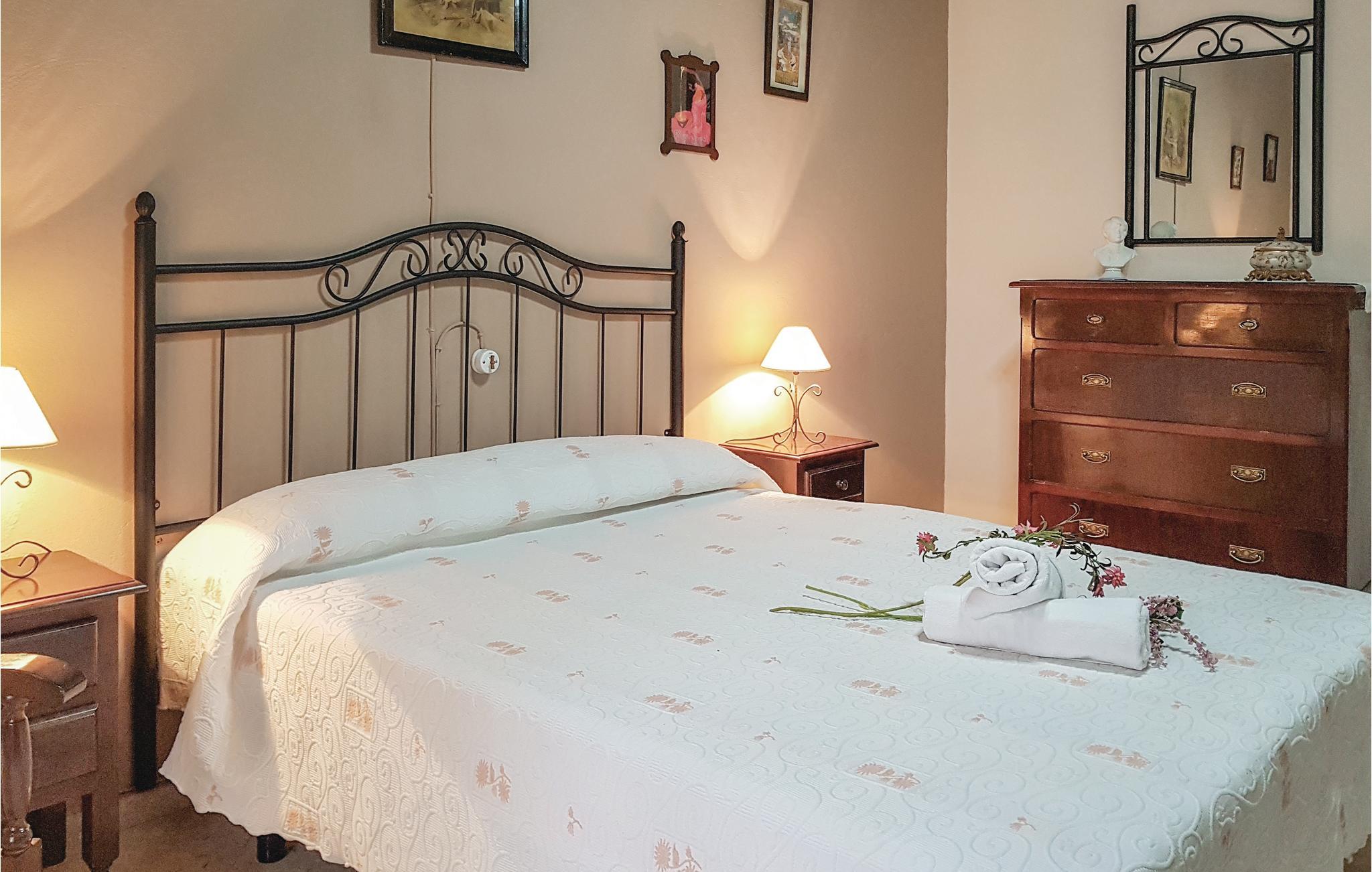 Skønt feriehus til 10 personer, på hele 180 m² fordelt på to etagter i Osuna ved Sevilla. Huset er rustik indrettet i andalusisk stil og har to soveværelser med dobbeltsenge og yderligere tre soveværelser med enkeltsenge. Alle rum er lyse og rummelige. Desuden er der to badeværelser, det ene med brusebad og det andet med badekar. I den hyggelige stue er der klimaanlæg og i alle rum er der radiatorer til vinterhalvåret. Ved siden af det komplet udstyrede køkken ligger den store spisestue med bord der kan trækkes ud og kamin i stuen hvor der er sofaer, tv og læsehjørne. Udendørs har I jeres private pool, en terrasse til afslapning og et wc. Her er der også et overdækket område med grill og parkeringsmulighed til seks biler. Huset ligger på en typisk andalusisk finca, der har specialiseret sig i oliven. Det ligger på grundens højeste punkt, med en fantastisk udsigt over Sevillas sydlige Sierra. Huset er dekoreret med gamle landbrugsredskaber, hvad der giver en særlig charme. Der er ti minutter til den barokke by Osuna hvor I kann se en gammel kirke, Marques de la Gomerapaladset, Arco de la Pastora og den tyrefægterarena der er med i „Game of Thrones“. Her kan I køre til alle interessante centrale byer som Sevilla, Granada og Málaga på under en time.