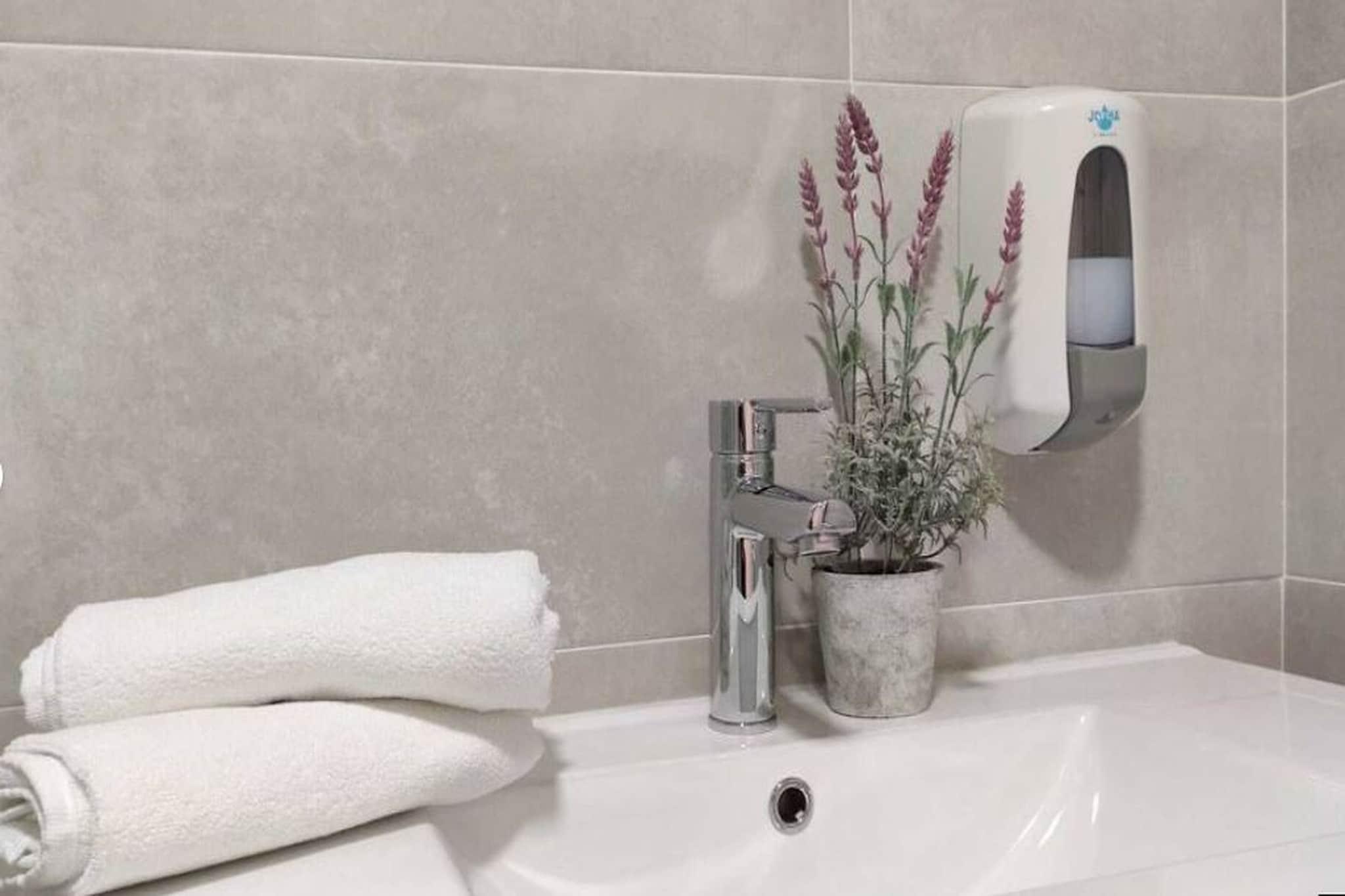 Stueetage: (Indgang (adgang udefra), elevator) På 5. etage: (Indgang , Stue(dobbeltsovesofa, dobbeltsovesofa, Fjernsyn(fladskærm, Smart-TV), spisebord, sofahjørne), Køkken(kogeplade, brødrister, emhætte, kaffemaskine, ovn, mikrobølgeovn, opvaskemaskine , køle-fryseskab, Saftpresser), soveværelse(dobbeltseng(150 x 200 cm)), soveværelse(dobbeltseng(150 x 200 cm)), soveværelse(dobbeltseng(150 x 200 cm)), badeværelse(bruser, håndvask, toilet, bidet, føntørrer), badeværelse(håndvask, toilet, vaskemaskine), varme, klimaanlæg, terrasse(privat, 14 m2)) parkering