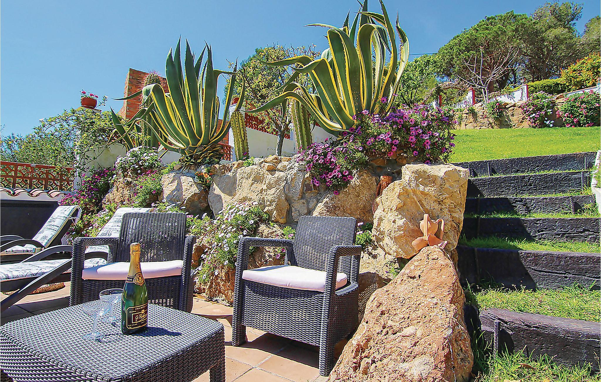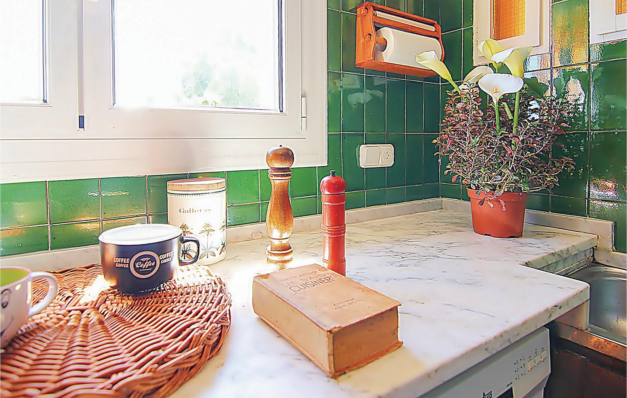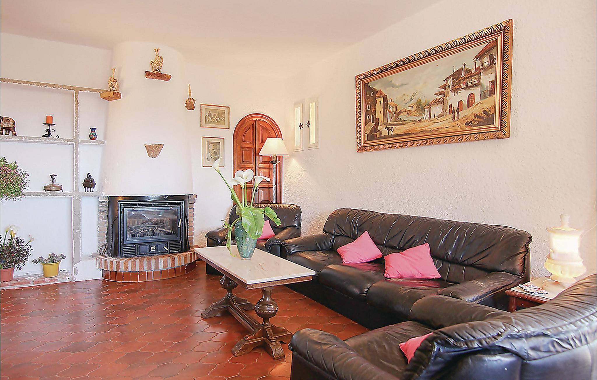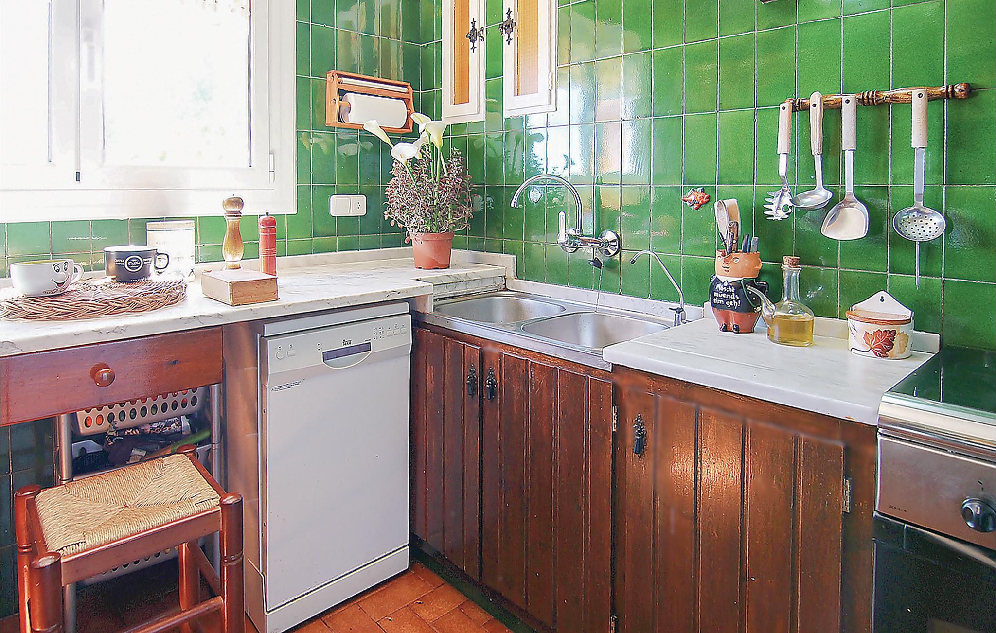 I dette betagende feriehus med alsidig stemning kan alle straks finde deres yndlingsplet. I den fortryllende have venter der en dejlig pool til svømmeture lige når I har lyst og liggestole samt et område under vinranker med stenbænke til hyggeligt samvær med noget lækkert i glasset. Dertil er der en veranda med stole og endnu en med stort bord, som I kan spise omkring mens I nyder udsigten til havet i det fjerne. Dertil er der en muret grill og en lukket terrasse, så I kan nyde udsigten beskyttet fra vind og vejr. Huset ligger i en bebyggelse blandt bjergene, kun 1 km fra stranden.