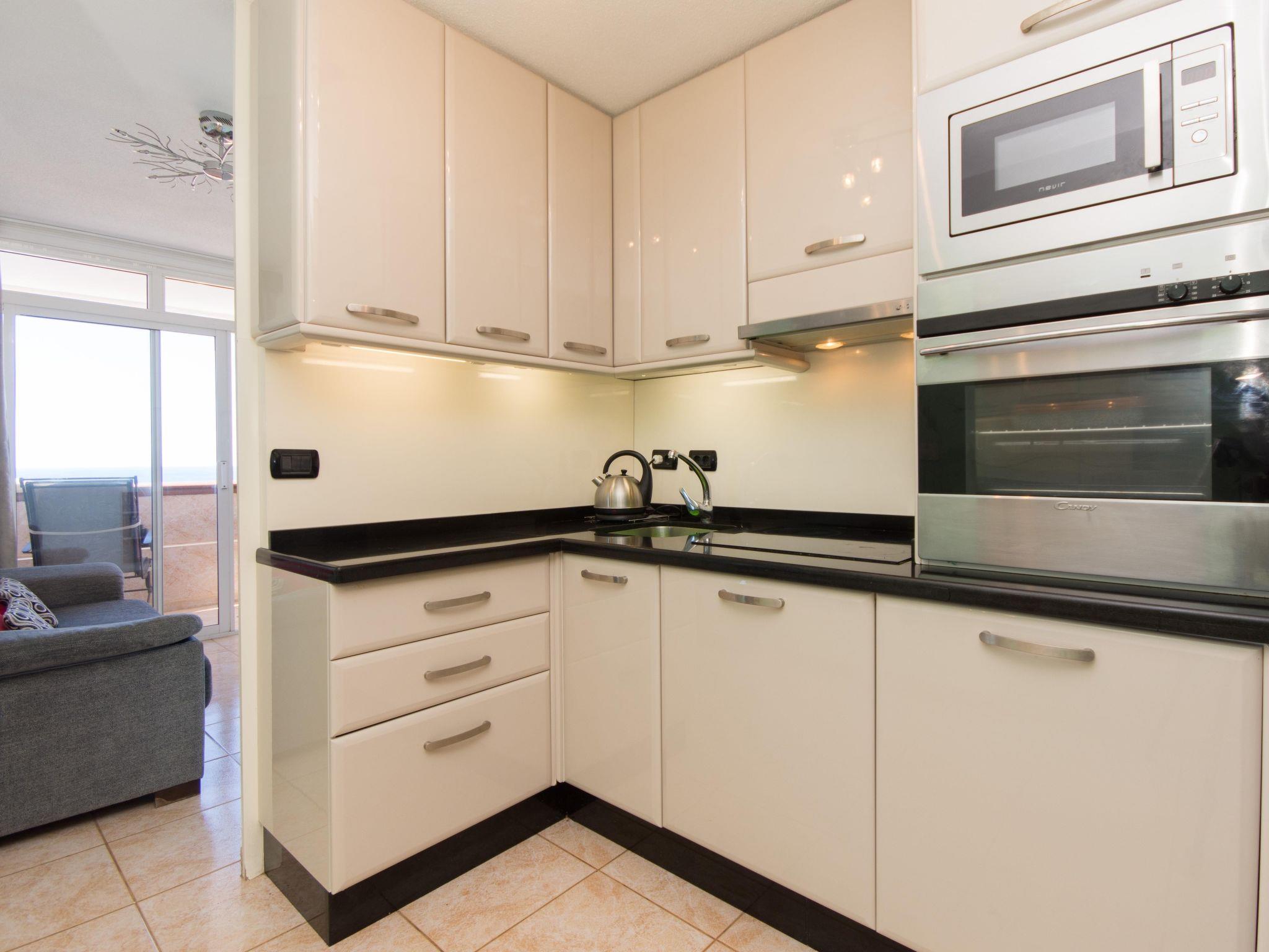 3-room apartment 60 m2 on 8th floor. Practical furnishings: living/dining room with satellite TV. Exit to the terrace. 1 room with 1 french bed (135 cm, length 190 cm), shower/WC. 1 room with 1 french bed (135 cm, length 190 cm). Open kitchen (oven, dishwasher, 4 ceramic glass hob hotplates, toaster, kettle, microwave, electric coffee machine). Shower/WC. Balcony 8 m2. Terrace furniture. View of the sea. Facilities: washing machine, iron, children's high chair, baby cot, hair dryer. Internet (WiFi, free). O00006501E1900040926 // Reg. Nr.: ESFCTU0000380160001773790000000000000VV-38-4-00897105