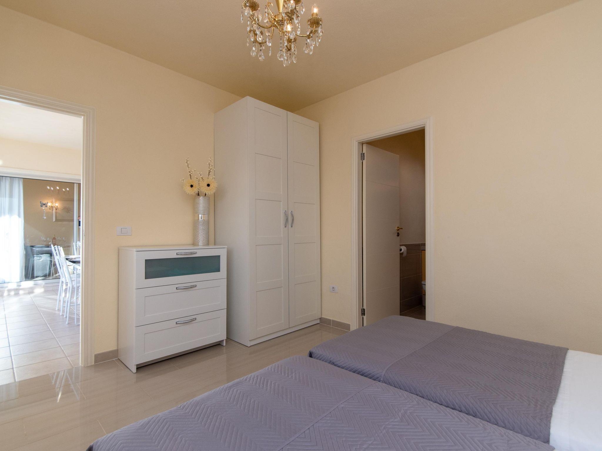 3-room house 100 m2. Practical furnishings: living/dining room with digital TV. Exit to the terrace. 1 room with 2 beds (90 cm, length 190 cm), bath/WC. 1 room with 2 beds (90 cm, length 190 cm). Kitchen (oven, dishwasher, 4 ceramic glass hob hotplates, toaster, kettle, microwave, electric coffee machine). Shower/WC. Terrace. Terrace furniture. Facilities: washing machine, iron, children's high chair, baby cot, hair dryer. Internet (WiFi, free). Please note: non-smoking house. VV-38-4-0088505 // Reg. Nr.: ESFCTU0000380160003589140000000000000VV-38-4-00885054