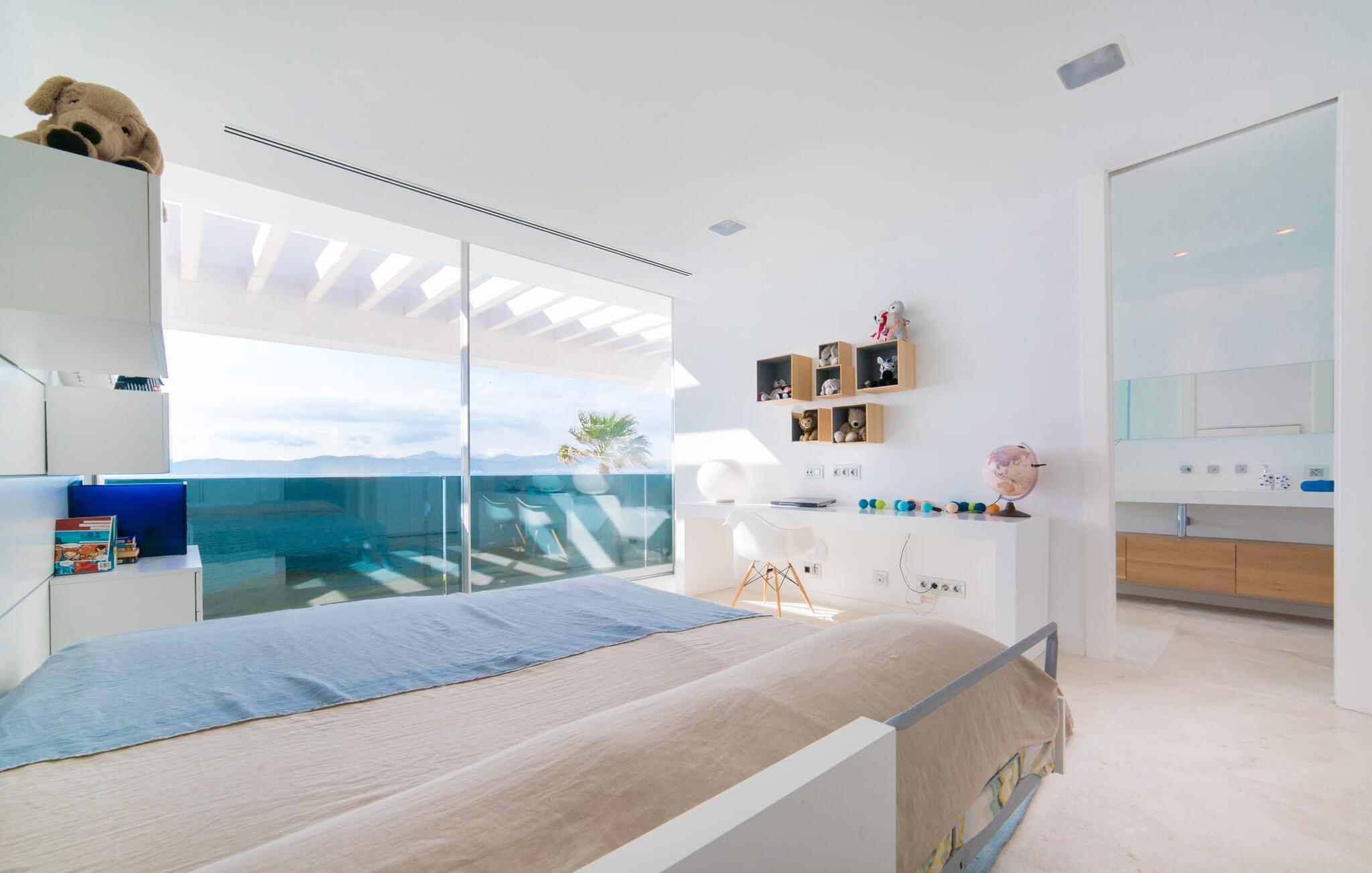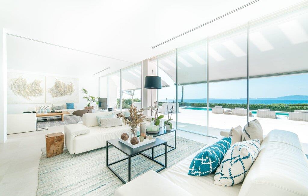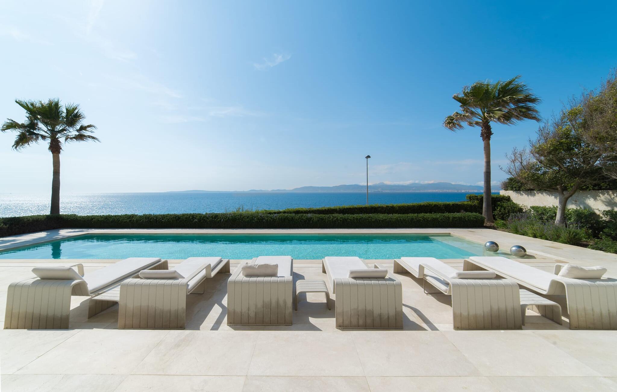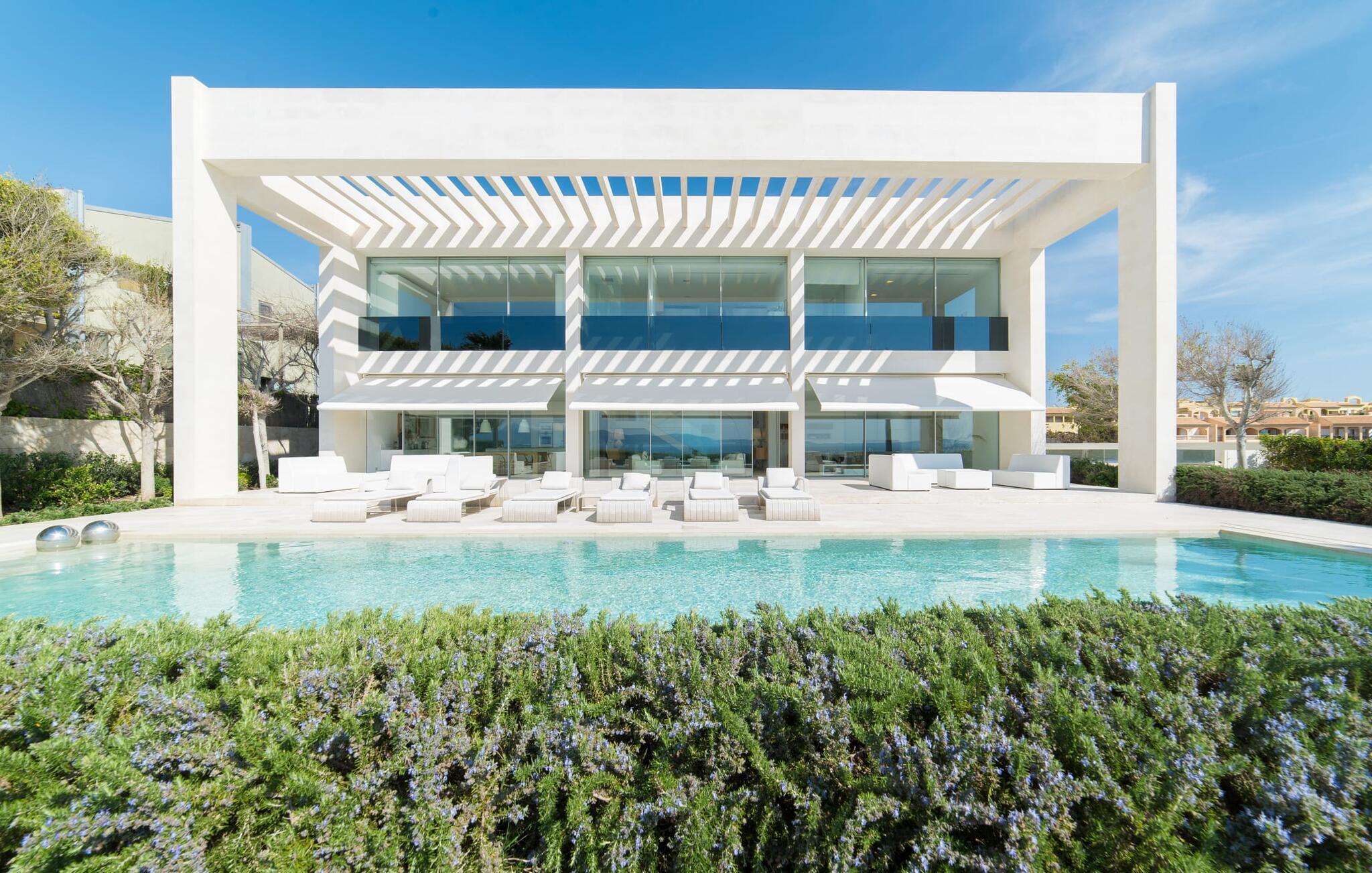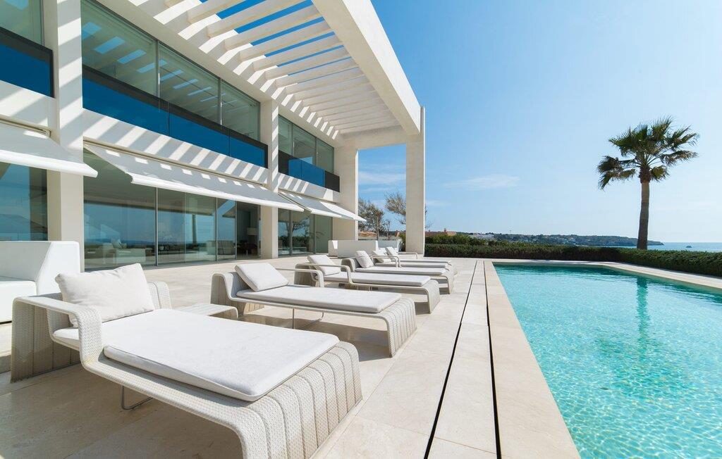 Leder I efter en ekstraordinær drømmevilla, der opfylder de højeste krav? Så bør I læse videre, for dette luksuriøse feriehus har alt, hvad I behøver: Et ultramoderne, åbent boligkoncept, der er uden sidestykke, er blevet til på den 900 m² store grund. Den store terrasse med komfortable liggestole tilbyder uforstyrret panoramaudsigt over det åbne hav. Det store, skrånende bassin er velegnet til daglig træning samt en forfriskende svømmetur ind imellem. Poolen kan selvfølgelig oplyses om aftenen, hvilket skaber en særlig stilfuld atmosfære til jeres private middagsselskab. I det overdækkede terrasseområde kan I slappe af under de hvide markiser på hyggelige udendørs lounger. 100% privatliv er givet her: ejendommen til villaen "Palma Bay Frontline" er beskyttet mod udsigt udefra. Et lyst, åbent boligkoncept venter jer i den lyse boligareal i den 500 m² store villa: den store panoramaglasfront skaber en næsten sømløs overgang til terrassen. Slap af på komfortable loungesofaer og oplev de spektakulære solnedgange over det vestlige Middelhav. Hele huset er naturligvis fuldt klimatiseret, så I vil ikke svede selv i varme temperaturer. Et stort spisebord i træ danner overgangen til det ultramoderne, fuldt udstyrede køkken med en praktisk kogeø. Der er også et gæstetoilet i stueetagen af jeres sommerhus. På øverste etage er der tre indbydende soveværelser med luksuriøst udstyrede en-suite badeværelser. Et af værelserne har walk-in-closet. Fra værelserne på denne etage kan I nyde en fantastisk udsigt over det åbne hav og den brede horisont. Et andet opholds- og soveområde med eget badeværelse samt legerum til de små gæster er placeret i husets kælder. I kan parkere jeres biler sikkert og ude af solen i den private underjordiske parkeringsplads. En ejendom af denne kaliber har naturligvis også brug for en eksklusiv beliggenhed: Den lille, ædle villabebyggelse Son Veri Nou ligger på Mallorcas populære sydvestkyst, men næppe nogen pakkerejser finder vej hertil: de vil sætte pris på det privatliv, som dette retræte tilbyder . Ikke desto mindre kan I takket være de gode transportforbindelser hurtigt nå den livlige hovedstad Palma, festbyen S'Arenal eller det landlige Llucmajor med dens rustikke charme. Den spektakulære udsigt over Palma-bugten og det glitrende hav er en sand fornøjelse: Takket være nærheden til den lokale lystbådehavn kan I spotte en eller to utrolige yachter hist og her. I Son Veri Nou finder I en lille, men hyggelig tennis- og squashklub; De smukke golfbaner Son Antem og Maioris er også kun et stenkast væk. Vi anbefaler også stærkt en vandretur til det imponerende Fort del Cap Enderrocat, som blev bygget i 1898 for at overvåge kysten i 1800-tallet og nu er et populært udflugtsmål. Denne eksklusive luksusejendom er beliggende i det lille, eksklusive boligkompleks Son Veri Nou ved den fine sandbugt i Palma. Nyd en unik, uforstyrret udsigt over havet og tilbring jeres drømmeferie i en ekstraordinær villa, der kombinerer avantgarde design med det højeste niveau af komfort. Der er en fantastisk tennis- og squashklub i byen, mens I kan opleve maritim flair i den nærliggende marina. To golfbaner er kun få minutter væk i bil.