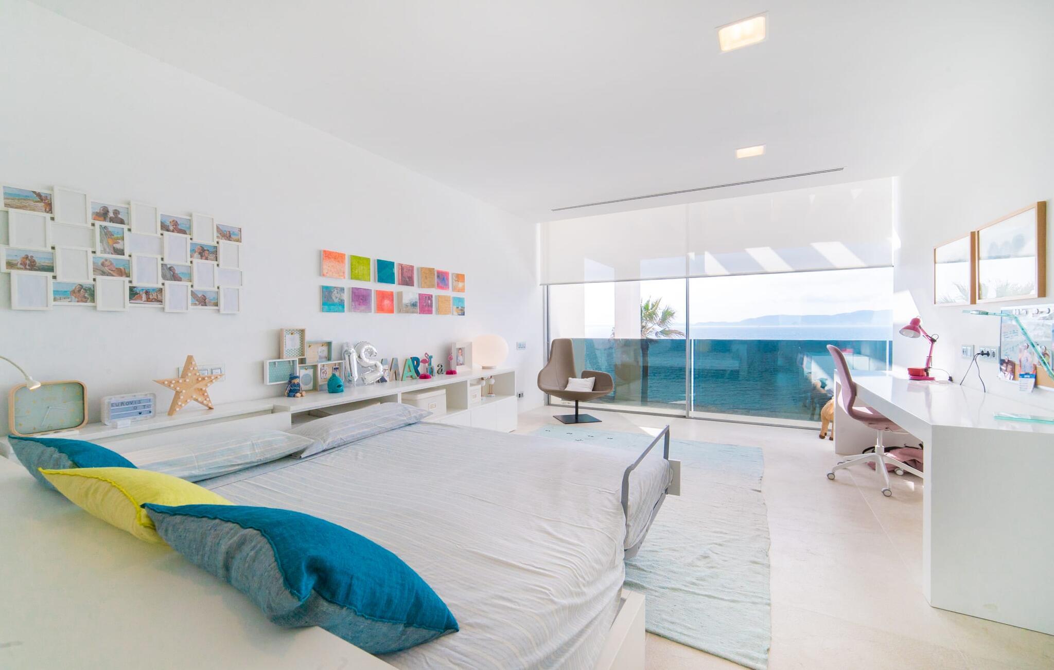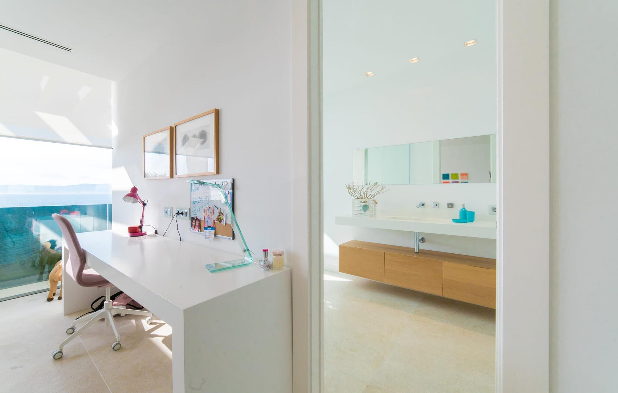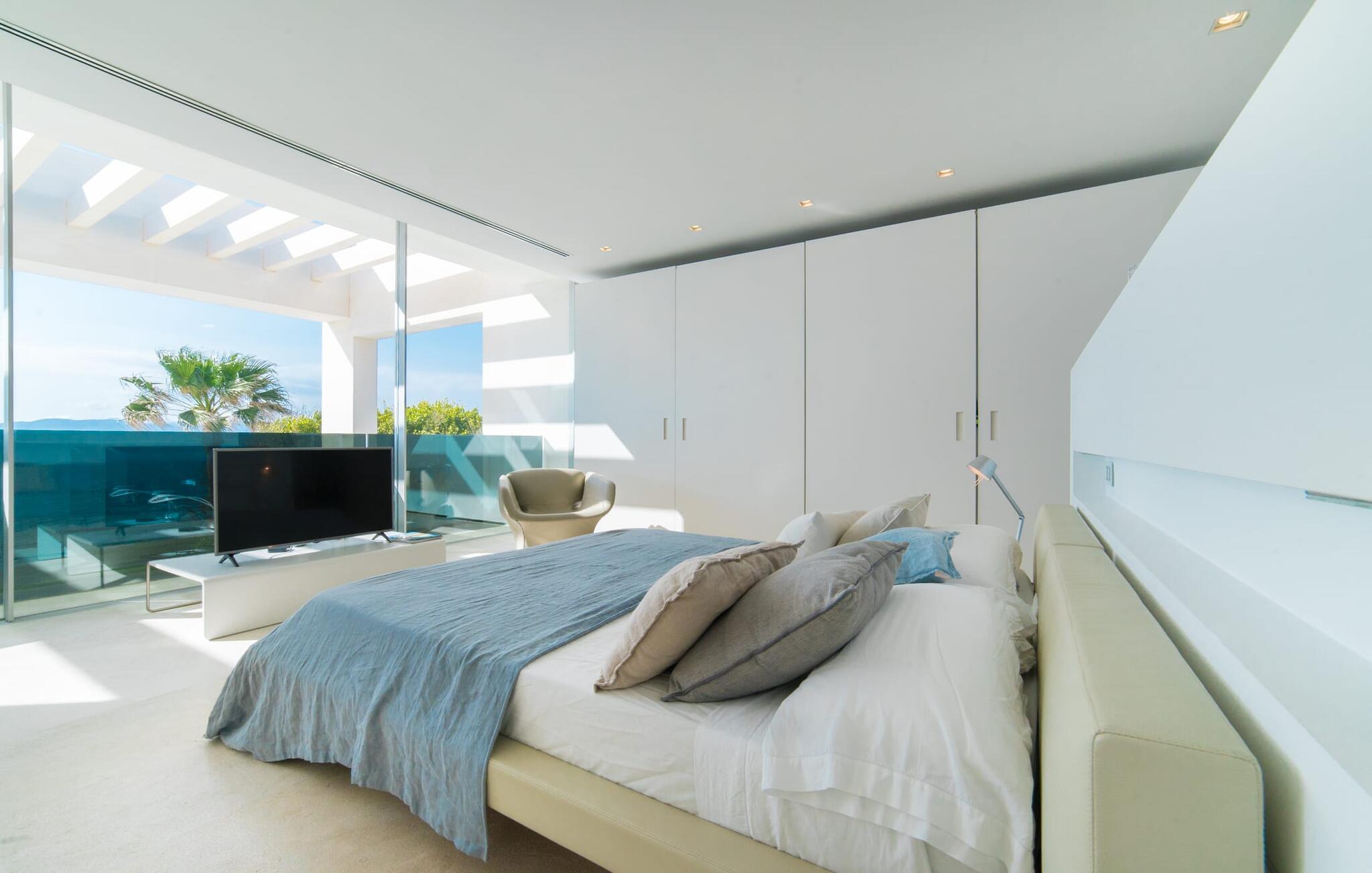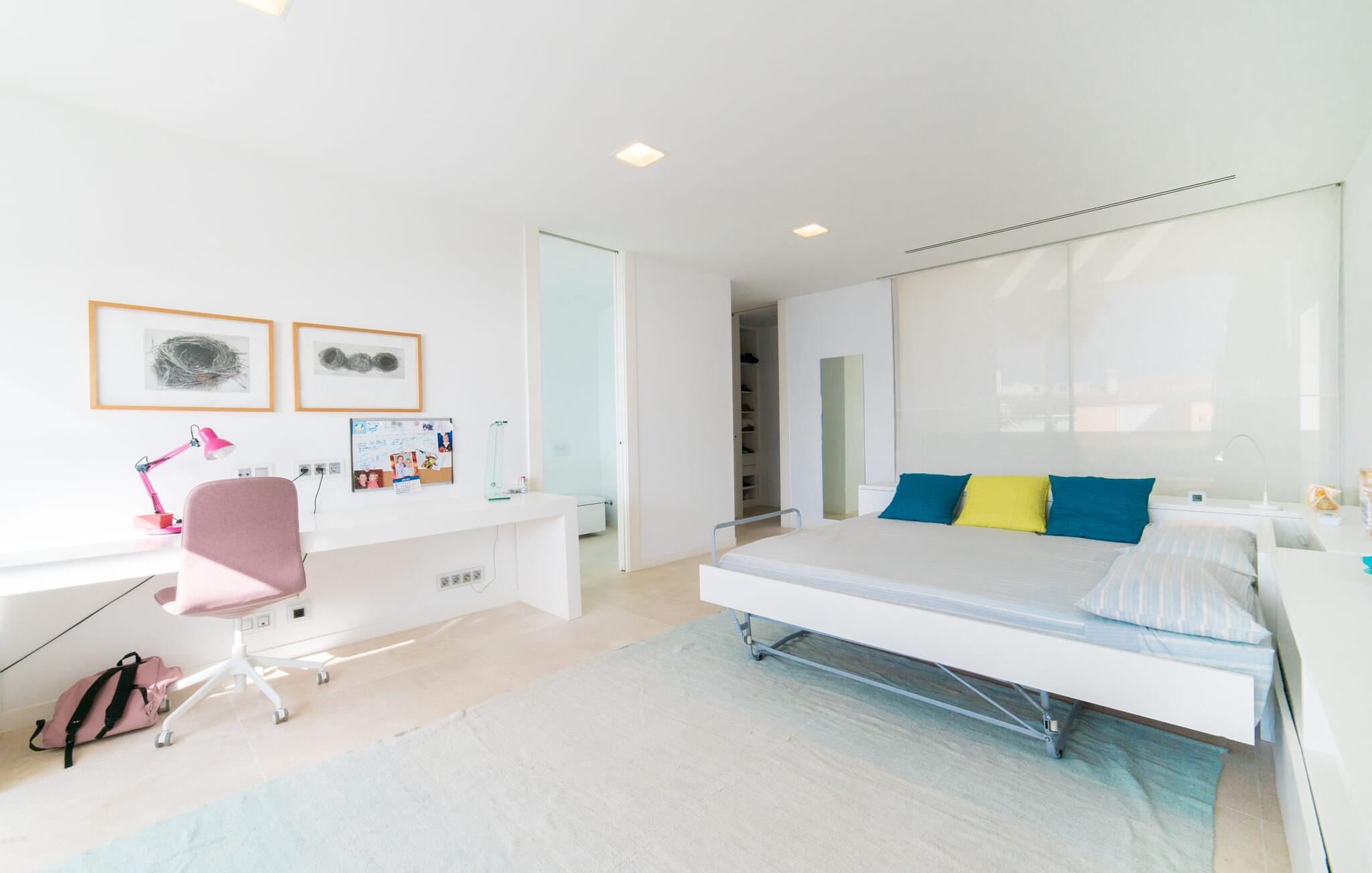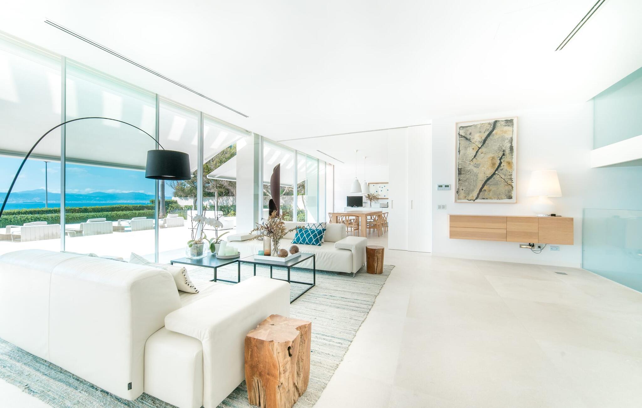 Leder I efter en ekstraordinær drømmevilla, der opfylder de højeste krav? Så bør I læse videre, for dette luksuriøse feriehus har alt, hvad I behøver: Et ultramoderne, åbent boligkoncept, der er uden sidestykke, er blevet til på den 900 m² store grund. Den store terrasse med komfortable liggestole tilbyder uforstyrret panoramaudsigt over det åbne hav. Det store, skrånende bassin er velegnet til daglig træning samt en forfriskende svømmetur ind imellem. Poolen kan selvfølgelig oplyses om aftenen, hvilket skaber en særlig stilfuld atmosfære til jeres private middagsselskab. I det overdækkede terrasseområde kan I slappe af under de hvide markiser på hyggelige udendørs lounger. 100% privatliv er givet her: ejendommen til villaen "Palma Bay Frontline" er beskyttet mod udsigt udefra. Et lyst, åbent boligkoncept venter jer i den lyse boligareal i den 500 m² store villa: den store panoramaglasfront skaber en næsten sømløs overgang til terrassen. Slap af på komfortable loungesofaer og oplev de spektakulære solnedgange over det vestlige Middelhav. Hele huset er naturligvis fuldt klimatiseret, så I vil ikke svede selv i varme temperaturer. Et stort spisebord i træ danner overgangen til det ultramoderne, fuldt udstyrede køkken med en praktisk kogeø. Der er også et gæstetoilet i stueetagen af jeres sommerhus. På øverste etage er der tre indbydende soveværelser med luksuriøst udstyrede en-suite badeværelser. Et af værelserne har walk-in-closet. Fra værelserne på denne etage kan I nyde en fantastisk udsigt over det åbne hav og den brede horisont. Et andet opholds- og soveområde med eget badeværelse samt legerum til de små gæster er placeret i husets kælder. I kan parkere jeres biler sikkert og ude af solen i den private underjordiske parkeringsplads. En ejendom af denne kaliber har naturligvis også brug for en eksklusiv beliggenhed: Den lille, ædle villabebyggelse Son Veri Nou ligger på Mallorcas populære sydvestkyst, men næppe nogen pakkerejser finder vej hertil: de vil sætte pris på det privatliv, som dette retræte tilbyder . Ikke desto mindre kan I takket være de gode transportforbindelser hurtigt nå den livlige hovedstad Palma, festbyen S'Arenal eller det landlige Llucmajor med dens rustikke charme. Den spektakulære udsigt over Palma-bugten og det glitrende hav er en sand fornøjelse: Takket være nærheden til den lokale lystbådehavn kan I spotte en eller to utrolige yachter hist og her. I Son Veri Nou finder I en lille, men hyggelig tennis- og squashklub; De smukke golfbaner Son Antem og Maioris er også kun et stenkast væk. Vi anbefaler også stærkt en vandretur til det imponerende Fort del Cap Enderrocat, som blev bygget i 1898 for at overvåge kysten i 1800-tallet og nu er et populært udflugtsmål. Denne eksklusive luksusejendom er beliggende i det lille, eksklusive boligkompleks Son Veri Nou ved den fine sandbugt i Palma. Nyd en unik, uforstyrret udsigt over havet og tilbring jeres drømmeferie i en ekstraordinær villa, der kombinerer avantgarde design med det højeste niveau af komfort. Der er en fantastisk tennis- og squashklub i byen, mens I kan opleve maritim flair i den nærliggende marina. To golfbaner er kun få minutter væk i bil.