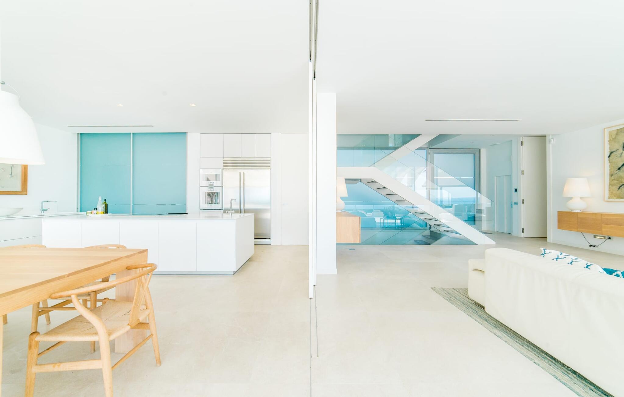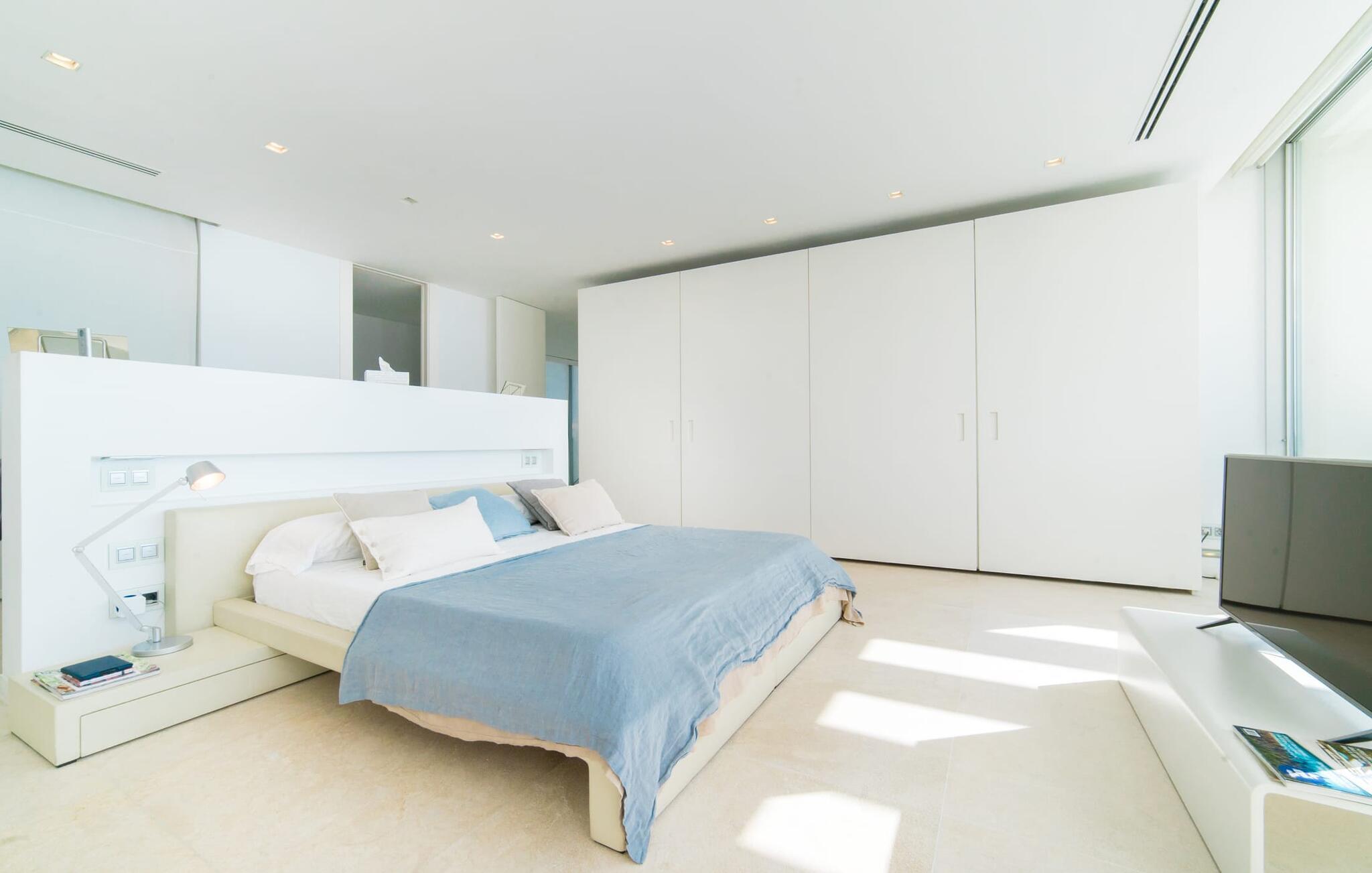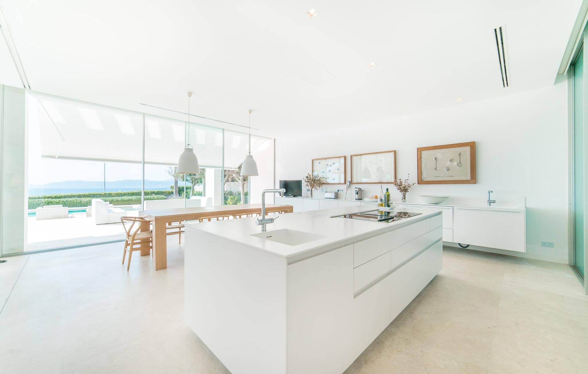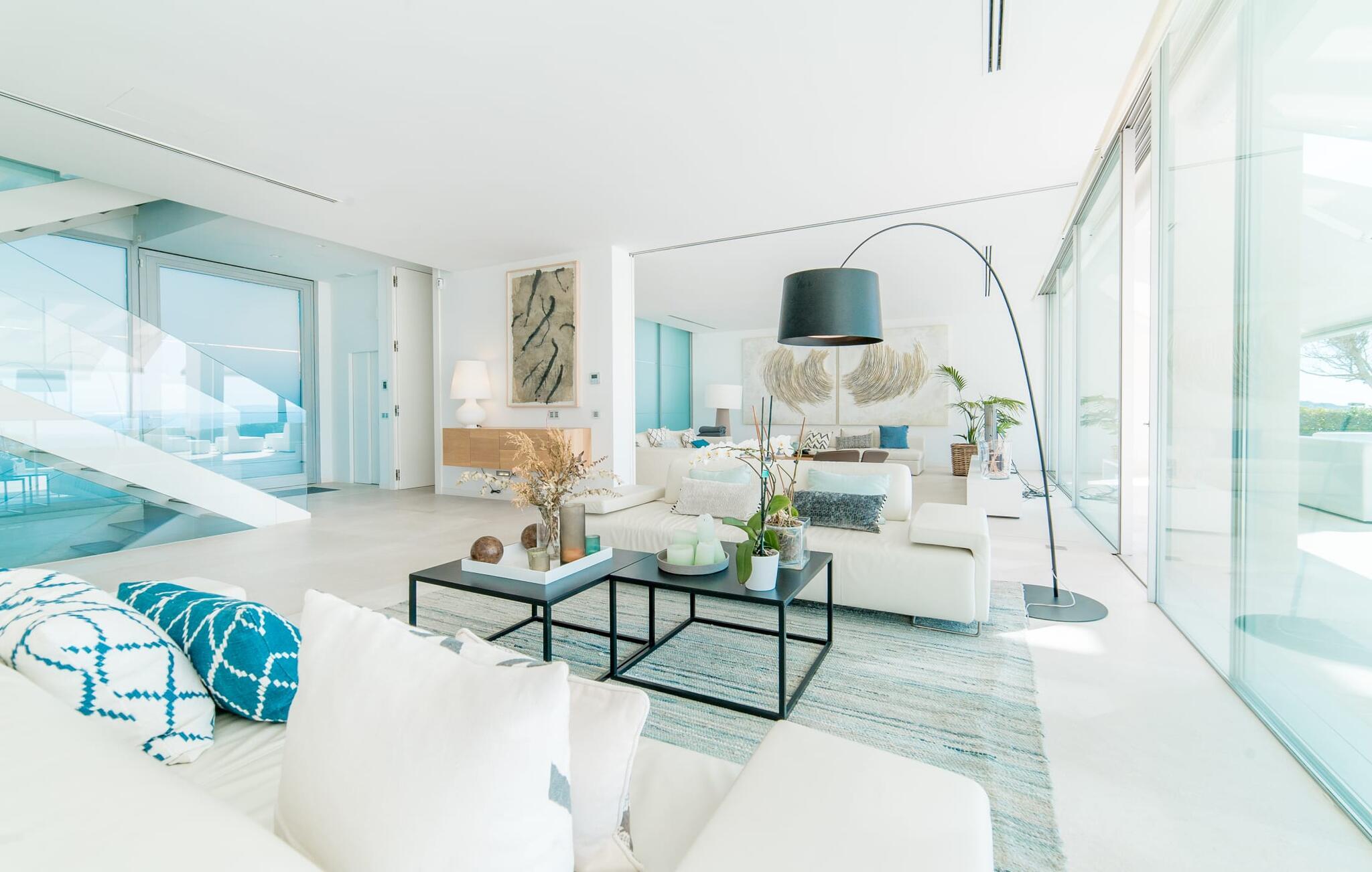 Leder I efter en ekstraordinær drømmevilla, der opfylder de højeste krav? Så bør I læse videre, for dette luksuriøse feriehus har alt, hvad I behøver: Et ultramoderne, åbent boligkoncept, der er uden sidestykke, er blevet til på den 900 m² store grund. Den store terrasse med komfortable liggestole tilbyder uforstyrret panoramaudsigt over det åbne hav. Det store, skrånende bassin er velegnet til daglig træning samt en forfriskende svømmetur ind imellem. Poolen kan selvfølgelig oplyses om aftenen, hvilket skaber en særlig stilfuld atmosfære til jeres private middagsselskab. I det overdækkede terrasseområde kan I slappe af under de hvide markiser på hyggelige udendørs lounger. 100% privatliv er givet her: ejendommen til villaen "Palma Bay Frontline" er beskyttet mod udsigt udefra. Et lyst, åbent boligkoncept venter jer i den lyse boligareal i den 500 m² store villa: den store panoramaglasfront skaber en næsten sømløs overgang til terrassen. Slap af på komfortable loungesofaer og oplev de spektakulære solnedgange over det vestlige Middelhav. Hele huset er naturligvis fuldt klimatiseret, så I vil ikke svede selv i varme temperaturer. Et stort spisebord i træ danner overgangen til det ultramoderne, fuldt udstyrede køkken med en praktisk kogeø. Der er også et gæstetoilet i stueetagen af jeres sommerhus. På øverste etage er der tre indbydende soveværelser med luksuriøst udstyrede en-suite badeværelser. Et af værelserne har walk-in-closet. Fra værelserne på denne etage kan I nyde en fantastisk udsigt over det åbne hav og den brede horisont. Et andet opholds- og soveområde med eget badeværelse samt legerum til de små gæster er placeret i husets kælder. I kan parkere jeres biler sikkert og ude af solen i den private underjordiske parkeringsplads. En ejendom af denne kaliber har naturligvis også brug for en eksklusiv beliggenhed: Den lille, ædle villabebyggelse Son Veri Nou ligger på Mallorcas populære sydvestkyst, men næppe nogen pakkerejser finder vej hertil: de vil sætte pris på det privatliv, som dette retræte tilbyder . Ikke desto mindre kan I takket være de gode transportforbindelser hurtigt nå den livlige hovedstad Palma, festbyen S'Arenal eller det landlige Llucmajor med dens rustikke charme. Den spektakulære udsigt over Palma-bugten og det glitrende hav er en sand fornøjelse: Takket være nærheden til den lokale lystbådehavn kan I spotte en eller to utrolige yachter hist og her. I Son Veri Nou finder I en lille, men hyggelig tennis- og squashklub; De smukke golfbaner Son Antem og Maioris er også kun et stenkast væk. Vi anbefaler også stærkt en vandretur til det imponerende Fort del Cap Enderrocat, som blev bygget i 1898 for at overvåge kysten i 1800-tallet og nu er et populært udflugtsmål. Denne eksklusive luksusejendom er beliggende i det lille, eksklusive boligkompleks Son Veri Nou ved den fine sandbugt i Palma. Nyd en unik, uforstyrret udsigt over havet og tilbring jeres drømmeferie i en ekstraordinær villa, der kombinerer avantgarde design med det højeste niveau af komfort. Der er en fantastisk tennis- og squashklub i byen, mens I kan opleve maritim flair i den nærliggende marina. To golfbaner er kun få minutter væk i bil.