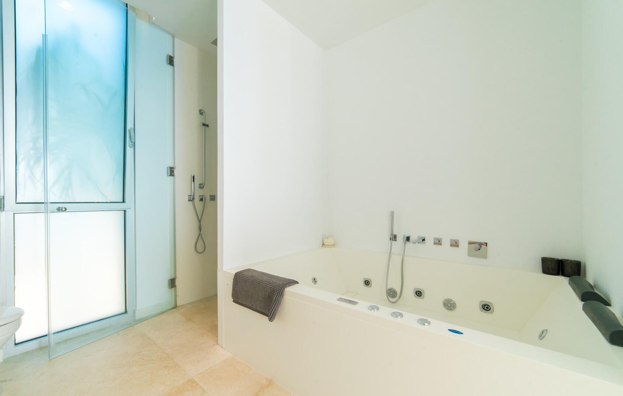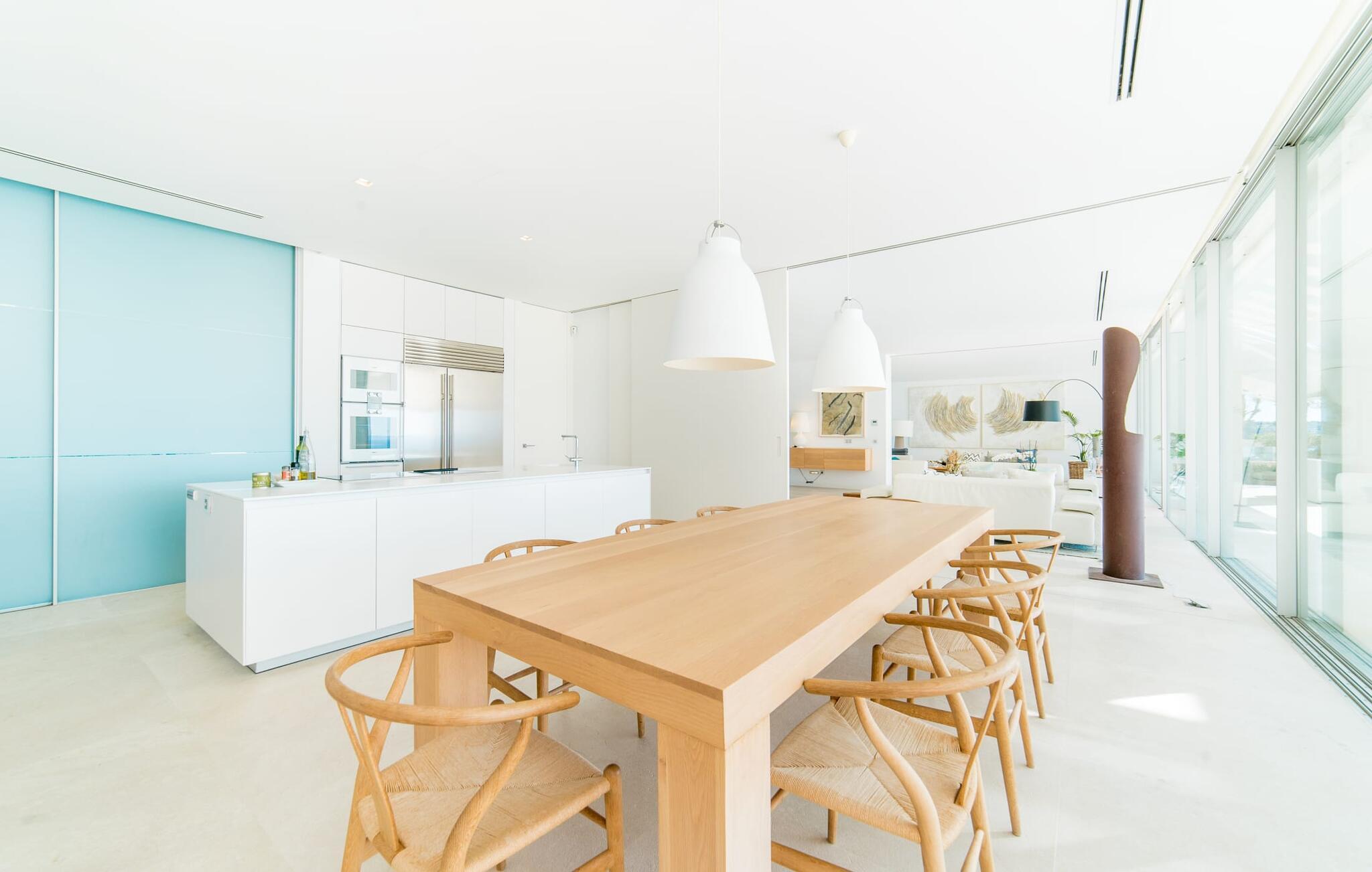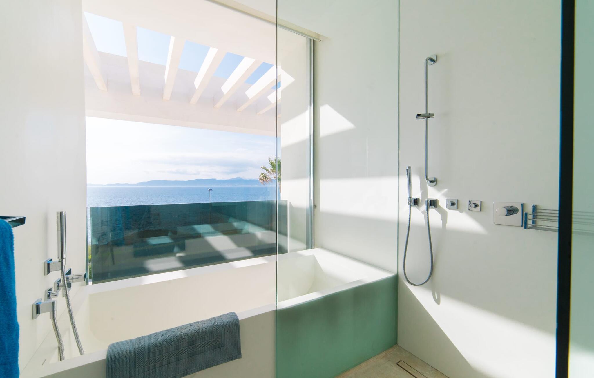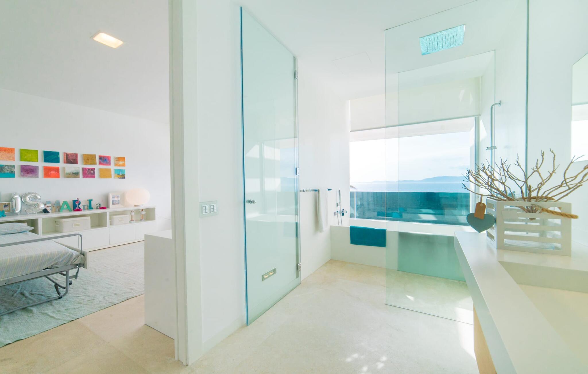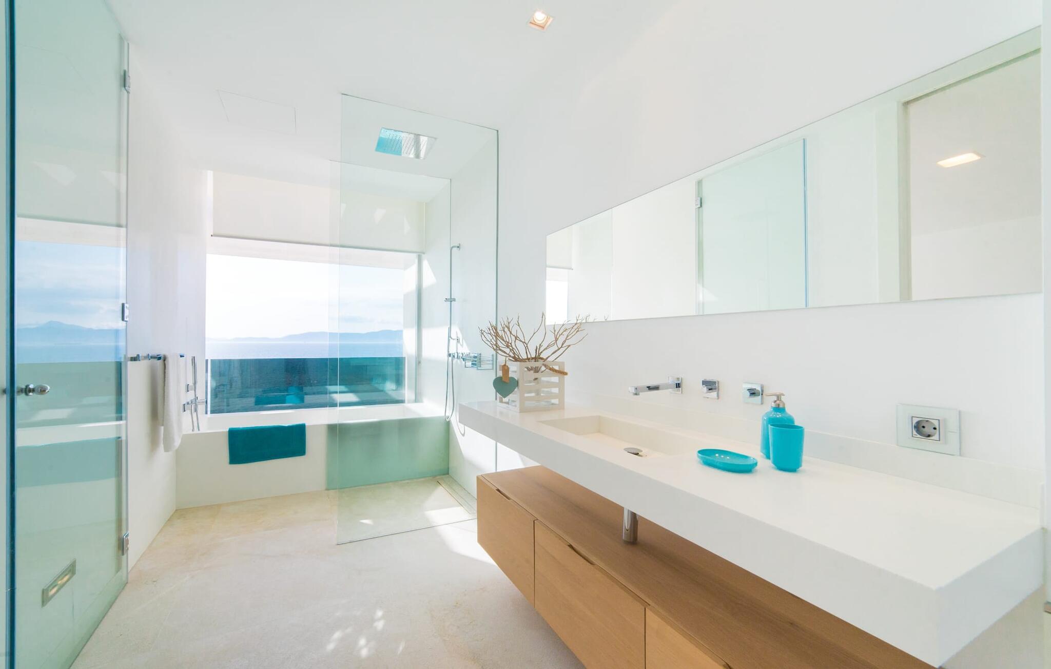 Leder I efter en ekstraordinær drømmevilla, der opfylder de højeste krav? Så bør I læse videre, for dette luksuriøse feriehus har alt, hvad I behøver: Et ultramoderne, åbent boligkoncept, der er uden sidestykke, er blevet til på den 900 m² store grund. Den store terrasse med komfortable liggestole tilbyder uforstyrret panoramaudsigt over det åbne hav. Det store, skrånende bassin er velegnet til daglig træning samt en forfriskende svømmetur ind imellem. Poolen kan selvfølgelig oplyses om aftenen, hvilket skaber en særlig stilfuld atmosfære til jeres private middagsselskab. I det overdækkede terrasseområde kan I slappe af under de hvide markiser på hyggelige udendørs lounger. 100% privatliv er givet her: ejendommen til villaen "Palma Bay Frontline" er beskyttet mod udsigt udefra. Et lyst, åbent boligkoncept venter jer i den lyse boligareal i den 500 m² store villa: den store panoramaglasfront skaber en næsten sømløs overgang til terrassen. Slap af på komfortable loungesofaer og oplev de spektakulære solnedgange over det vestlige Middelhav. Hele huset er naturligvis fuldt klimatiseret, så I vil ikke svede selv i varme temperaturer. Et stort spisebord i træ danner overgangen til det ultramoderne, fuldt udstyrede køkken med en praktisk kogeø. Der er også et gæstetoilet i stueetagen af jeres sommerhus. På øverste etage er der tre indbydende soveværelser med luksuriøst udstyrede en-suite badeværelser. Et af værelserne har walk-in-closet. Fra værelserne på denne etage kan I nyde en fantastisk udsigt over det åbne hav og den brede horisont. Et andet opholds- og soveområde med eget badeværelse samt legerum til de små gæster er placeret i husets kælder. I kan parkere jeres biler sikkert og ude af solen i den private underjordiske parkeringsplads. En ejendom af denne kaliber har naturligvis også brug for en eksklusiv beliggenhed: Den lille, ædle villabebyggelse Son Veri Nou ligger på Mallorcas populære sydvestkyst, men næppe nogen pakkerejser finder vej hertil: de vil sætte pris på det privatliv, som dette retræte tilbyder . Ikke desto mindre kan I takket være de gode transportforbindelser hurtigt nå den livlige hovedstad Palma, festbyen S'Arenal eller det landlige Llucmajor med dens rustikke charme. Den spektakulære udsigt over Palma-bugten og det glitrende hav er en sand fornøjelse: Takket være nærheden til den lokale lystbådehavn kan I spotte en eller to utrolige yachter hist og her. I Son Veri Nou finder I en lille, men hyggelig tennis- og squashklub; De smukke golfbaner Son Antem og Maioris er også kun et stenkast væk. Vi anbefaler også stærkt en vandretur til det imponerende Fort del Cap Enderrocat, som blev bygget i 1898 for at overvåge kysten i 1800-tallet og nu er et populært udflugtsmål. Denne eksklusive luksusejendom er beliggende i det lille, eksklusive boligkompleks Son Veri Nou ved den fine sandbugt i Palma. Nyd en unik, uforstyrret udsigt over havet og tilbring jeres drømmeferie i en ekstraordinær villa, der kombinerer avantgarde design med det højeste niveau af komfort. Der er en fantastisk tennis- og squashklub i byen, mens I kan opleve maritim flair i den nærliggende marina. To golfbaner er kun få minutter væk i bil.