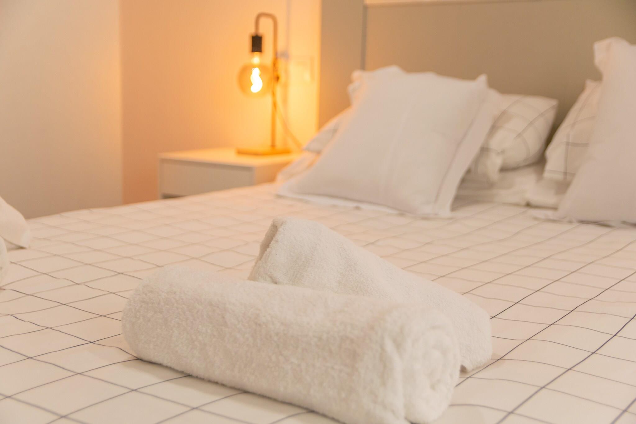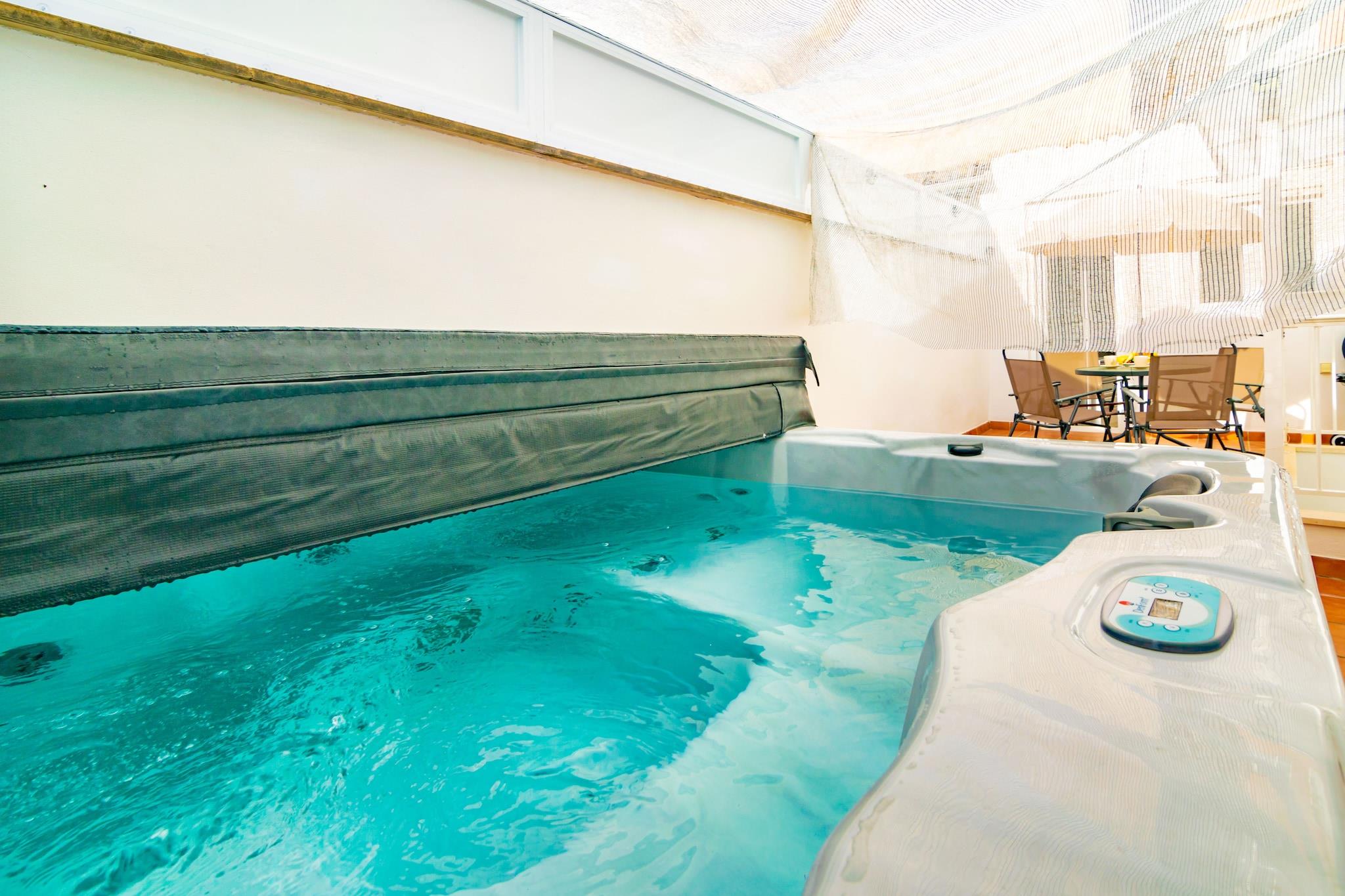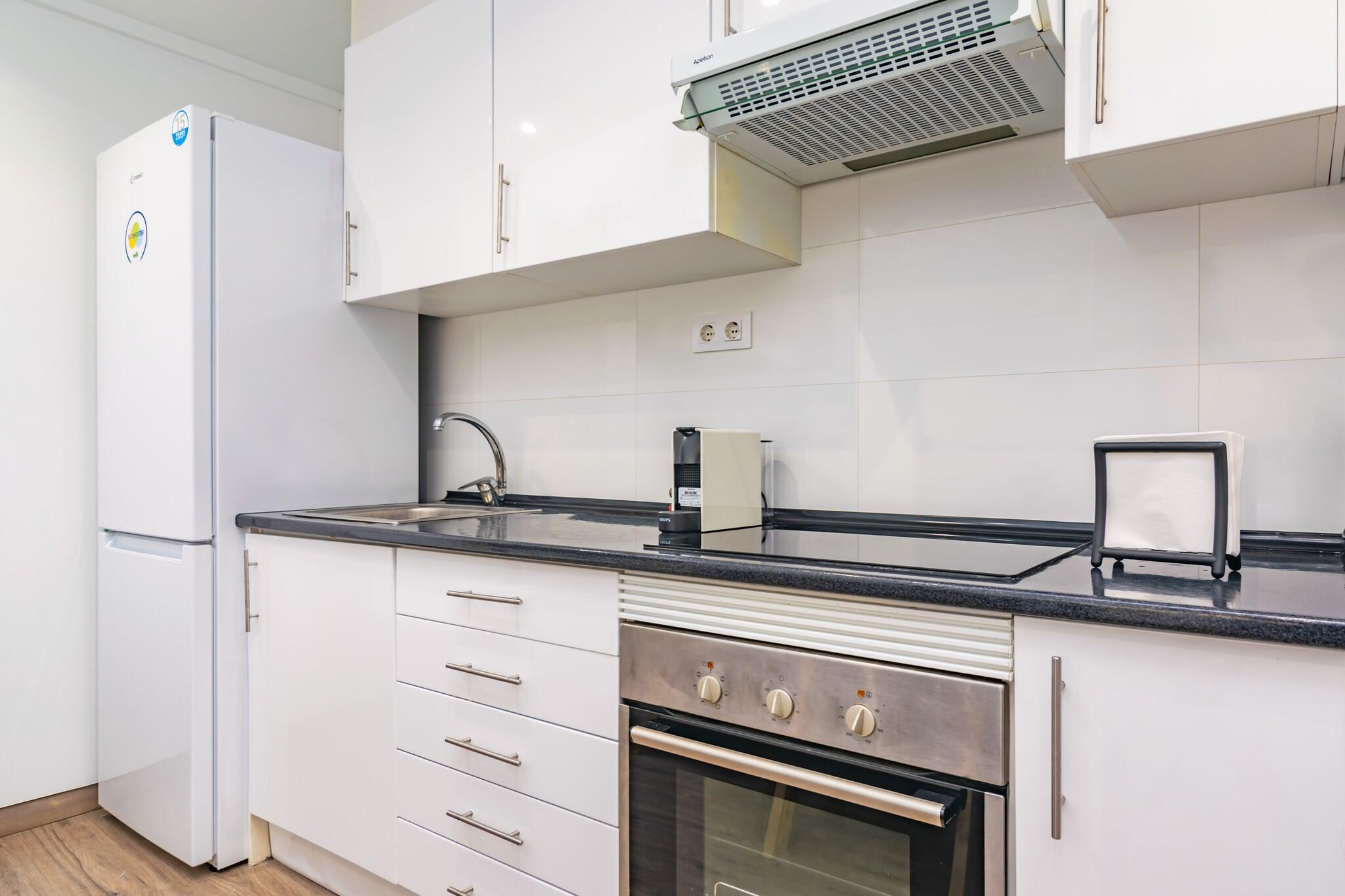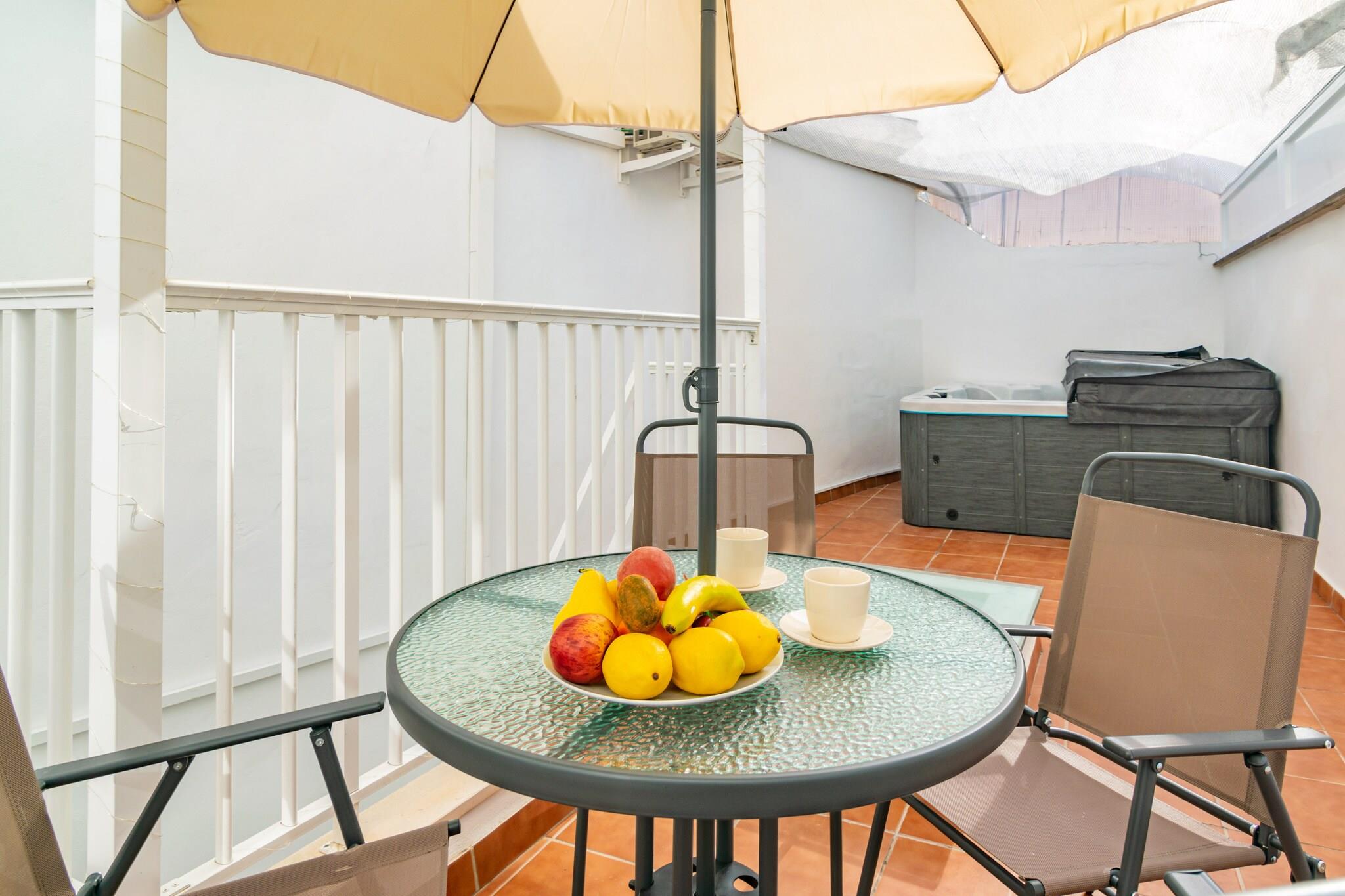 Beliggende i det pulserende hjerte af Palma tilbyder denne rolige lejlighed den perfekte flugt efter en dag med udforskning. Slap af på den hyggelige terrasse på toppen, ideel til at slappe af med en bog eller nyde drinks med familie og venner. Den moderne bolig strækker sig over to etager og har en rummelig stue/spisestue med AC og et Smart TV, der problemfrit forbinder til et åbent køkken udstyret med en keramisk kogeplade og alt det nødvendige til at lave dejlige måltider. Første sal indeholder to velindrettede soveværelser: et med dobbeltseng, TV, AC og garderobe, og et andet med en trilleseng, TV, AC og garderobe. Et badeværelse med bruser fuldender dette niveau. Anden sal huser det sidste soveværelse, som også byder på en trilleseng, tv, AC og kommode. Yderligere faciliteter omfatter en vaskemaskine, strygebræt og strygejern. Hvis du rejser med små, kan en barneseng og høj stol stilles til rådighed efter anmodning. Valgfri parkering er tilgængelig, og gæsterne kan nyde den afslappende jacuzzi. Palma blander historisk charme med en pulserende moderne scene, der viser den fantastiske katedral Santa Maria de Palma (La Seu) og et rigt udvalg af middelalderarkitektur. Forkæl dig selv med traditionelle mallorcanske retter, såsom Frit og l"Arrós Brut, og nyd solen på nærliggende strande som Can Pere Antoni og Cala Mayor. Bemærk venligst: Gæster under 25 år accepteres ikke, medmindre de er en del af en familiegruppe. Kopi af pas er påkrævet for booking. Kæledyr og arrangementer er ikke tilladt. Turistlicens: ETV/8955. Der gælder en obligatorisk turistskat (Ecotasa), der varierer efter sæson. Som reaktion på Coronavirus (COVID-19) er yderligere sikkerheds- og sanitære foranstaltninger i kraft på denne ejendom.