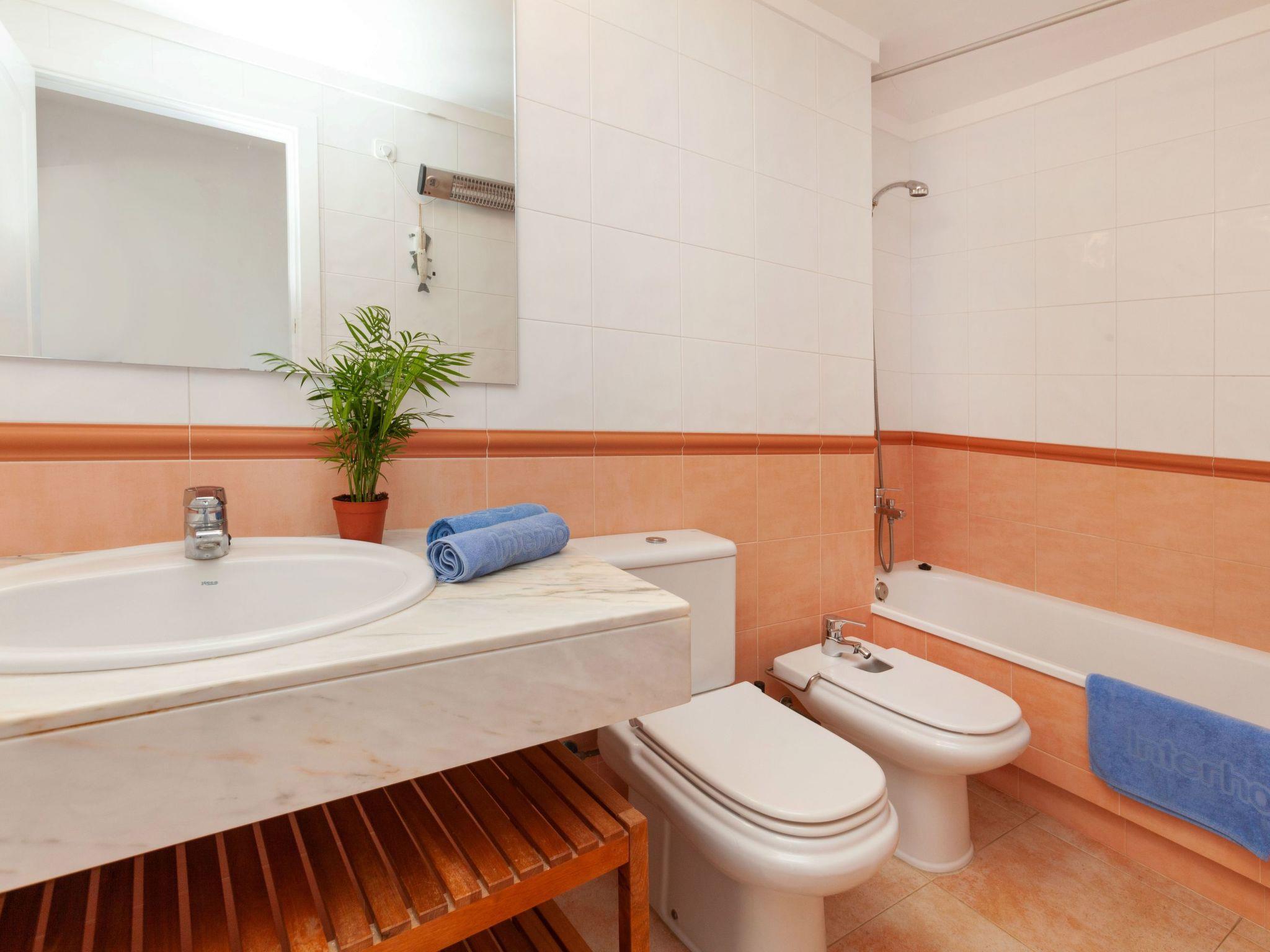 "Port Pals B II", 3-room apartment 70 m2. Living/dining room with dining table, digital TV, flat screen and air conditioning. Exit to the terrace. 1 room with 1 french bed (140 cm, length 200 cm), air conditioning and forced-air heating. 1 room with 2 beds (90 cm, length 190 cm), air conditioning and forced-air heating. Open kitchen (oven, dishwasher, 4 ceramic glass hob hotplates, microwave, electric coffee machine). Bath/WC. Boiler (150 litres). Large terrace. Terrace furniture. Very beautiful view of the sea. Facilities: washing machine, iron, children's high chair, baby cot, hair dryer. Internet (WiFi, free). Parking space n garage comunitari 31. Please note: TV only ES. Smart TV - The air conditioning for cooling and heating, is independently controlled in each bedroom and in the living-dining room. HUTG-034579