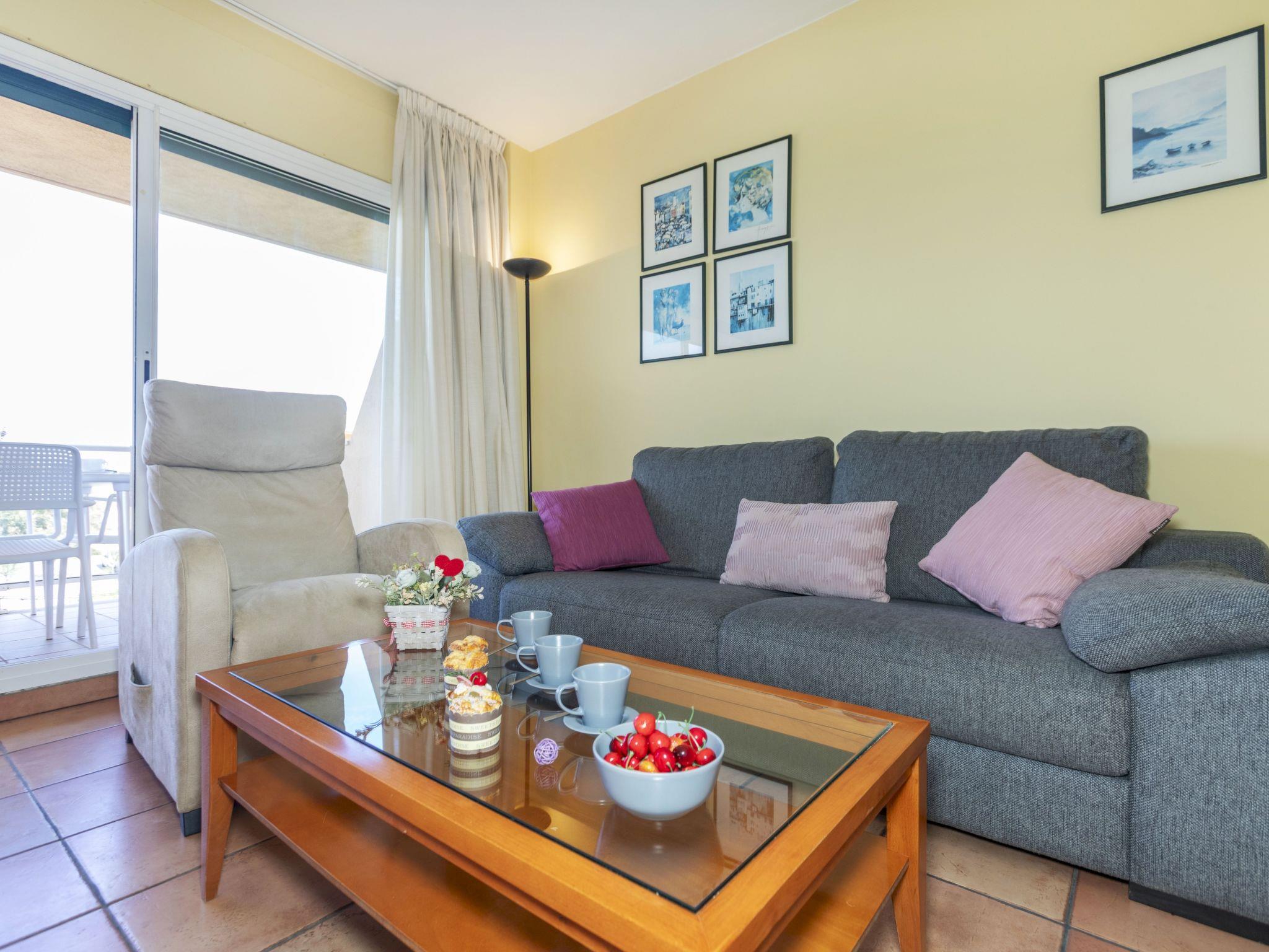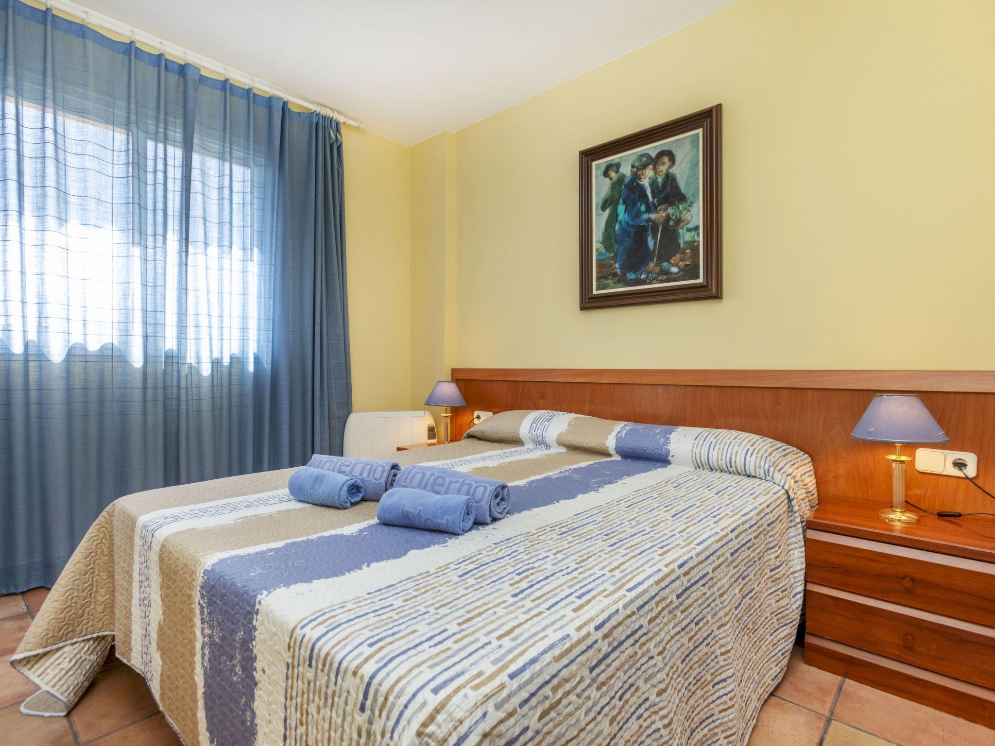 "Port Pals Sea View", 3-room apartment 90 m2 on 2nd floor. Practical furnishings: living/dining room with digital TV and electric heating. Exit to the terrace. 1 room with 1 french bed (150 cm, length 190 cm), bath/WC and electric heating. 1 room with 2 beds (80 cm, length 190 cm), electric heating. Open kitchen (dishwasher, 4 ceramic glass hob hotplates, microwave, electric coffee machine). Bath/bidet/WC. Electric heating, boiler (100 litres). Large terrace. Terrace furniture. View of the sea. Facilities: washing machine, iron, children's high chair, baby cot, hair dryer. Internet (WiFi, free). Parking space n 28 exterior (1 car). Please note: TV only ES. HUTG-011816 // Reg. Nr.: ESFCTU00001700700024752700000000000000000HUTG-0118162