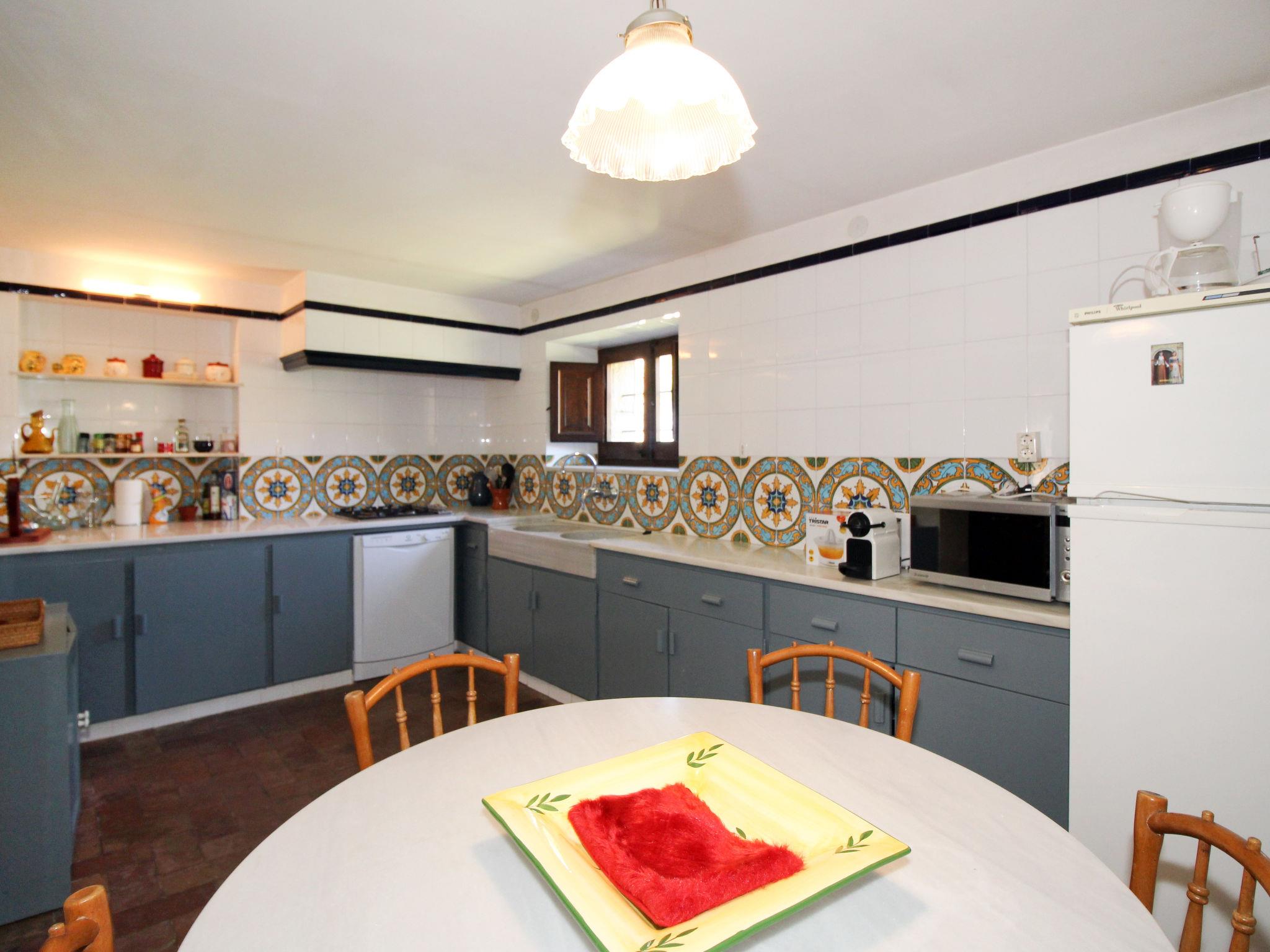 "Pals Antic", 7-room house 130 m2 on 2 levels. Object suitable for 8 adults. Practical and rustic furnishings: living room with open-hearth fireplace (only for decoration), digital TV and air conditioning. Exit to the terrace. 1 room with 1 french bed (180 cm, length 190 cm), bath/WC and air conditioning. 1 room with 1 french bed (150 cm, length 190 cm), shower/WC and air conditioning. Bath/WC. No heating option. Upper floor: living room with open-hearth fireplace (only for decoration), satellite TV and air conditioning. 1 room with 2 beds (90 cm, length 190 cm), air conditioning. 1 room with 1 french bed (135 cm, length 190 cm), shower/WC and air conditioning. Living room. Exit to the balcony, to the swimming pool. Open kitchen (dishwasher, 4 gas rings, toaster, microwave, freezer, electric coffee machine) with dining table. Marvellous view of the countryside. Facilities: washing machine. Internet (WiFi, free). Parking at the house. Please note: TV only ES. HUTG-014078