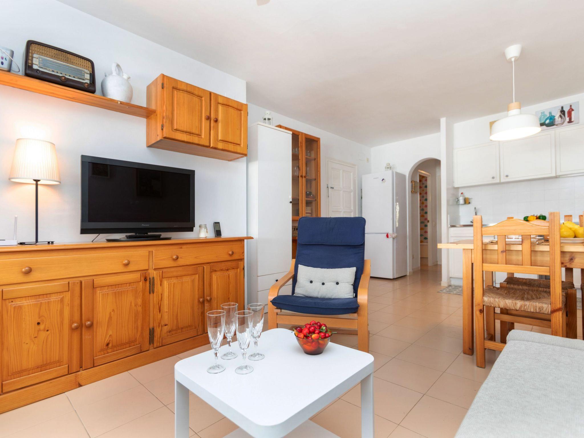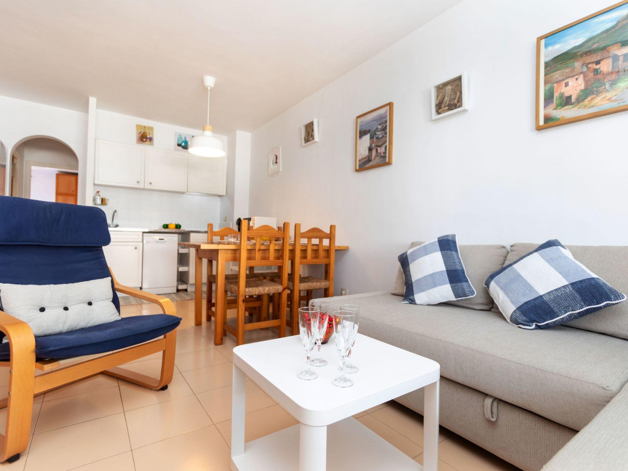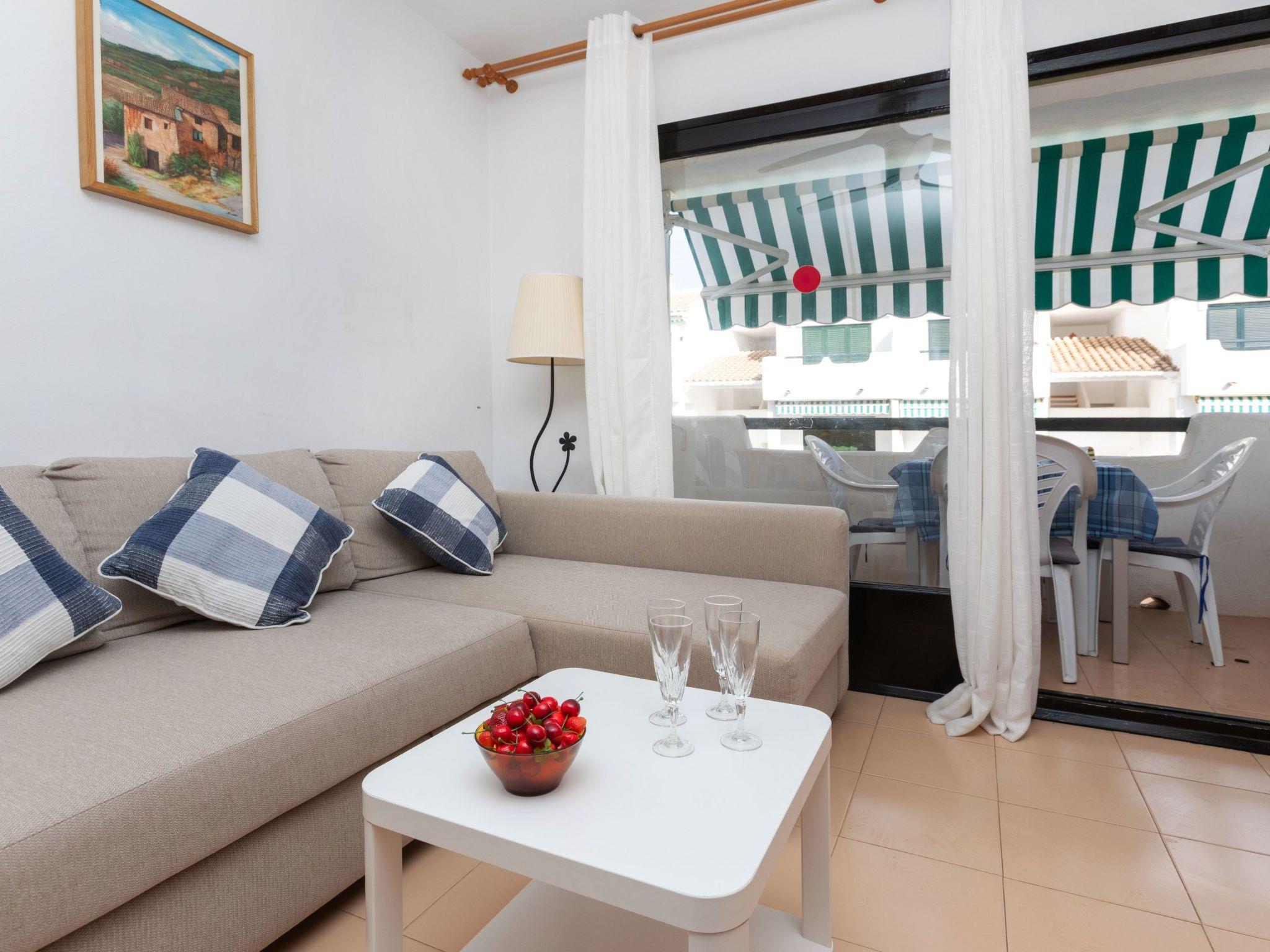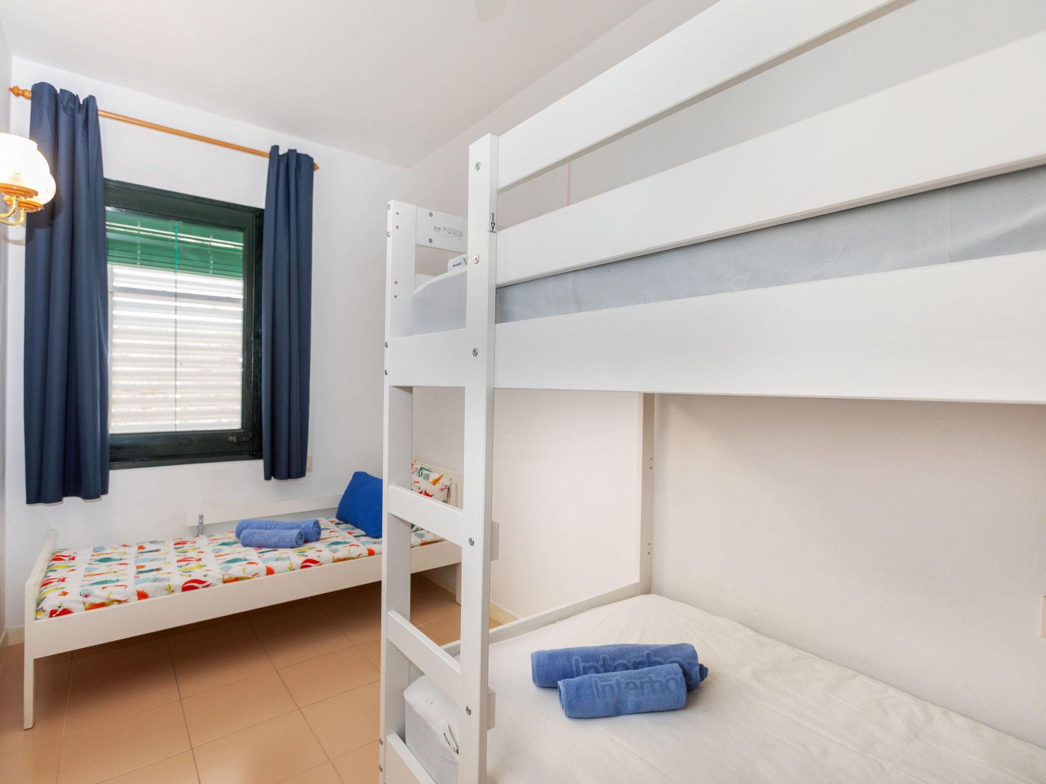 "El Coto G", 3-room apartment 65 m2 on 2nd floor. Bright, practical and comfortable furnishings: living/dining room with dining table. 1 room with 1 french bed (160 cm, length 190 cm). 1 room with 1 x 2 bunk beds (90 cm, length 190 cm). Open kitchen (dishwasher, 3 induction hot plates, toaster, kettle, microwave). Bath/WC. No heating option. Small terrace. View of the swimming pool and the garden. Facilities: washing machine, iron, children's high chair, baby cot for up to 2 year olds, hair dryer. Internet (WiFi). Parking space n Exterior G202 at 100 m. Please note: TV only ES. HUTG-076834 // Reg. Nr.: ESFCTU00001700700034165200000000000000000HUTG-0768347