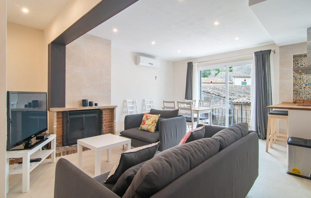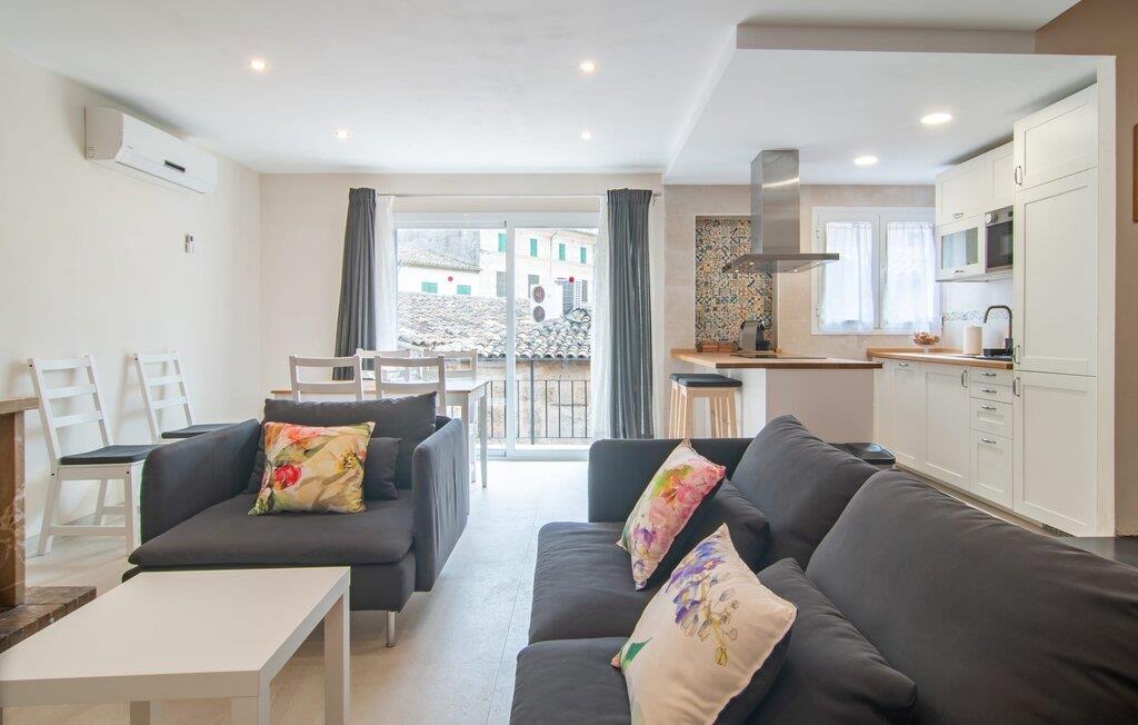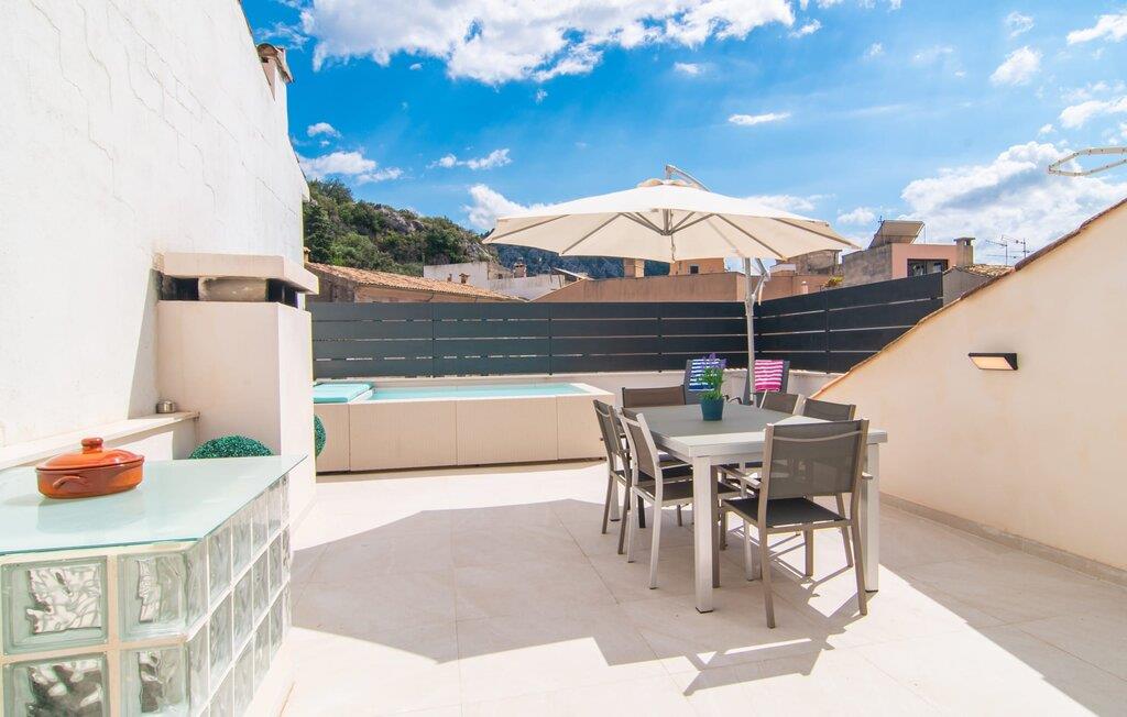 Herfra kan I gøre næsten alt til fods - det smarte feriehus "Pare Vives" i Pollença er simpelthen perfekt til en afslappende ferie på Mallorca. Især hvis I ikke vil køre rundt i en lejebil, hver gang I skal shoppe eller gå på restaurant. Takket være den centrale beliggenhed er I praktisk talt midt i ø-livet - men I kan også til enhver tid trække jer tilbage til jeres egne private fire vægge. I dette tilfælde vil I ikke gå glip af noget: Det meget veludstyrede feriehus byder på næsten al den komfort, I kan ønske jer under jeres ferie på Mallorca. Et særligt højdepunkt er den smukke tagterrasse. Derfra har I ikke kun en vidunderlig udsigt over de tilstødende tage af landsbyen. I kan også nyde solen, forfriske jer i den interne minipool og så spise sammen ved det store bord, hvad I har tilberedt på grillen og i det lille, men hyggelige udekøkken. “Pare Vives” imponerer over hele linjen – også med hensyn til indretningen. Dette smukke feriehus er designet med stor smag og sans for detaljer. Den vellykkede blanding af gammelt og moderne udstråler en behagelig hjemlig lethed, hvor I straks kan føle jer hjemme og godt tilpas. Takket være de mange vinduer, lyse farver og smart placeret loftsbelysning, er der pænt lyst overalt Ind i mellem finder I rustikke naturstensvægge, der giver huset et typisk mallorcansk præg. I stueetagen finder I den hyggelige opholds- og spisestue, hvor I kan samles om den hyggelige pejs. Det åbne køkken ligger kun få skridt væk - så der er ingen lange gåture fra komfuret til bordet med fuld bakke. To soveværelser med dobbeltsenge og to badeværelser, hvoraf det ene har eget badeværelse, fuldender boligarealet på denne etage. Et andet smukt soveværelse med dobbeltseng kan nås via den stilfulde åbne trappe. I Pollença, på den nordlige del af øen, finder I det smarte rækkehus "Pare Vives" - en fremragende udstyret perle med en fremragende beliggenhed. Fra tagterrassen med et smukt udekøkken og lille pool kan I nyde udsigten over byens tage - og jeres privatliv på samme tid. Huset ligger centralt på en akustisk mærkbar gade afhængig af vindretningen, så I nemt kan slentre gennem byen, shoppe og besøge restauranter til fods. Den nærmeste strand, Platja de Port de Pollença, ligger lidt over 6 km væk, og I kan parkere jeres lejebil i den private garage.