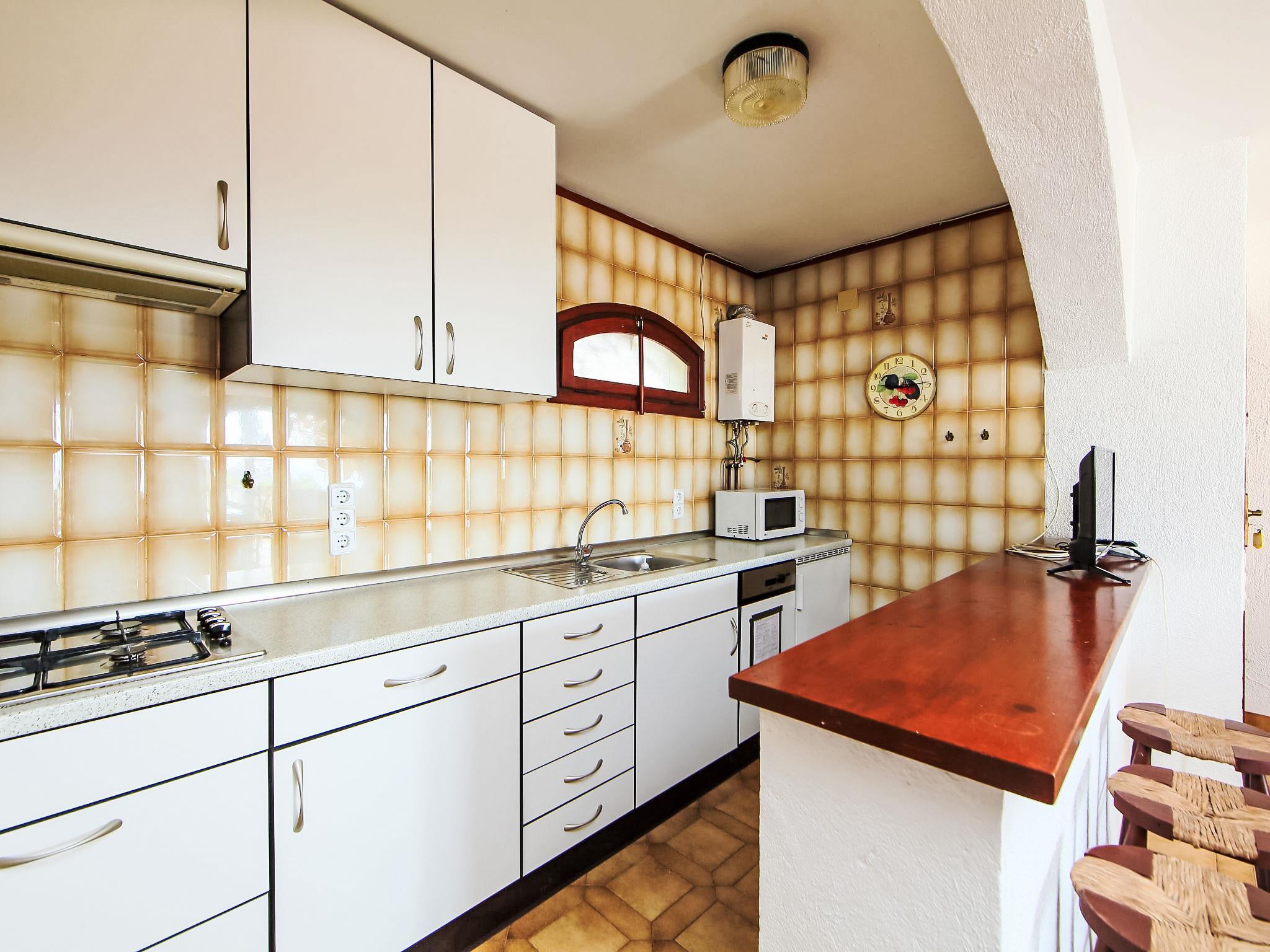 2-room terraced house 56 m2, lower ground floor. Practical and cosy furnishings: living/dining room with 1 wall-trunk bed (140 cm, length 190 cm), satellite TV. 1 room with 1 double bed. Open kitchen (dishwasher, combination microwave). Shower/WC. Terrace 50 m2. Terrace furniture, deck chairs (2). View of the sea, the countryside and the resort. Facilities: washing machine. AT-28286-CS // Reg. Nr.: ESFCTU00001200900100995600000000000000000AT-28286-CS9