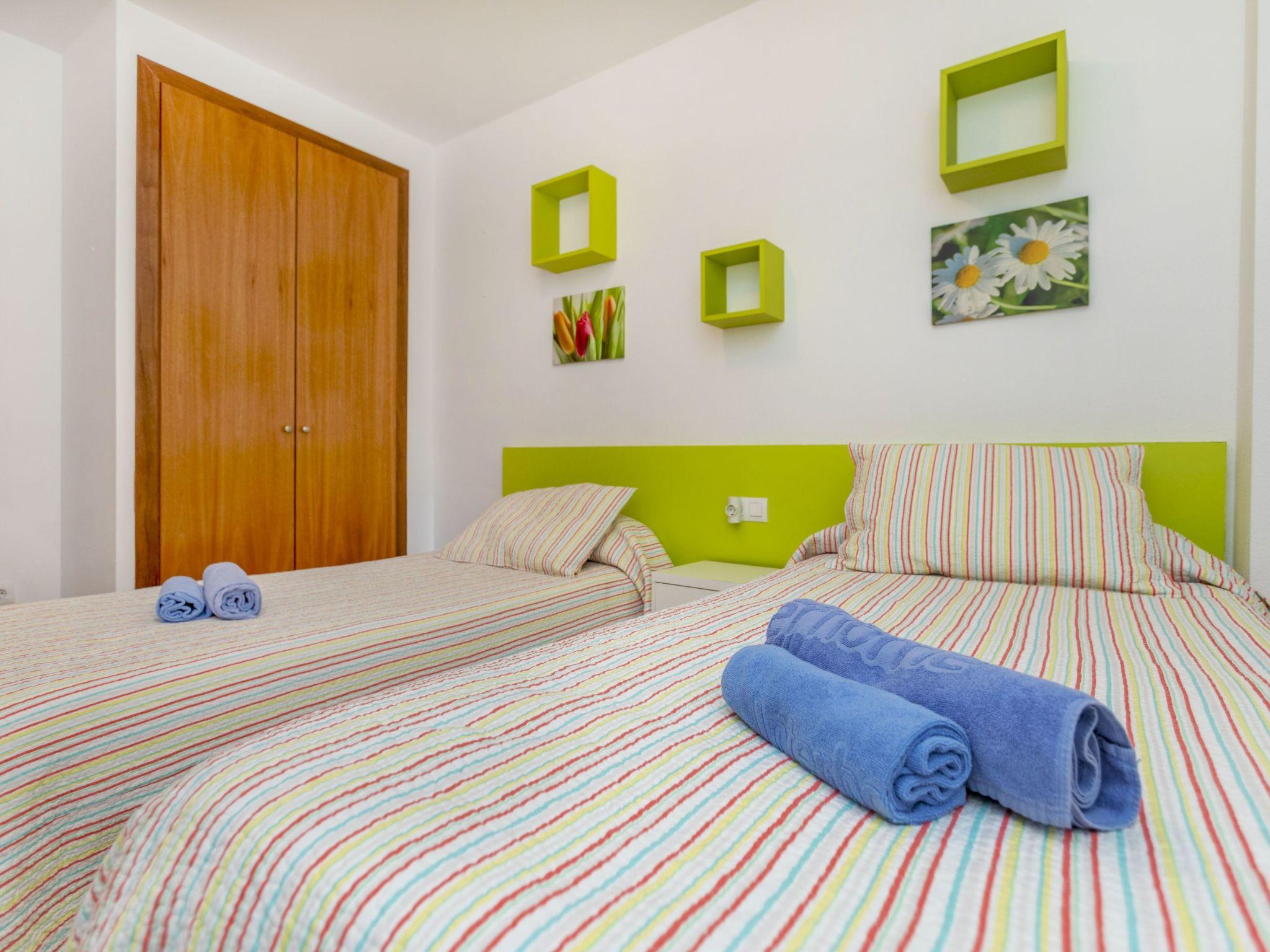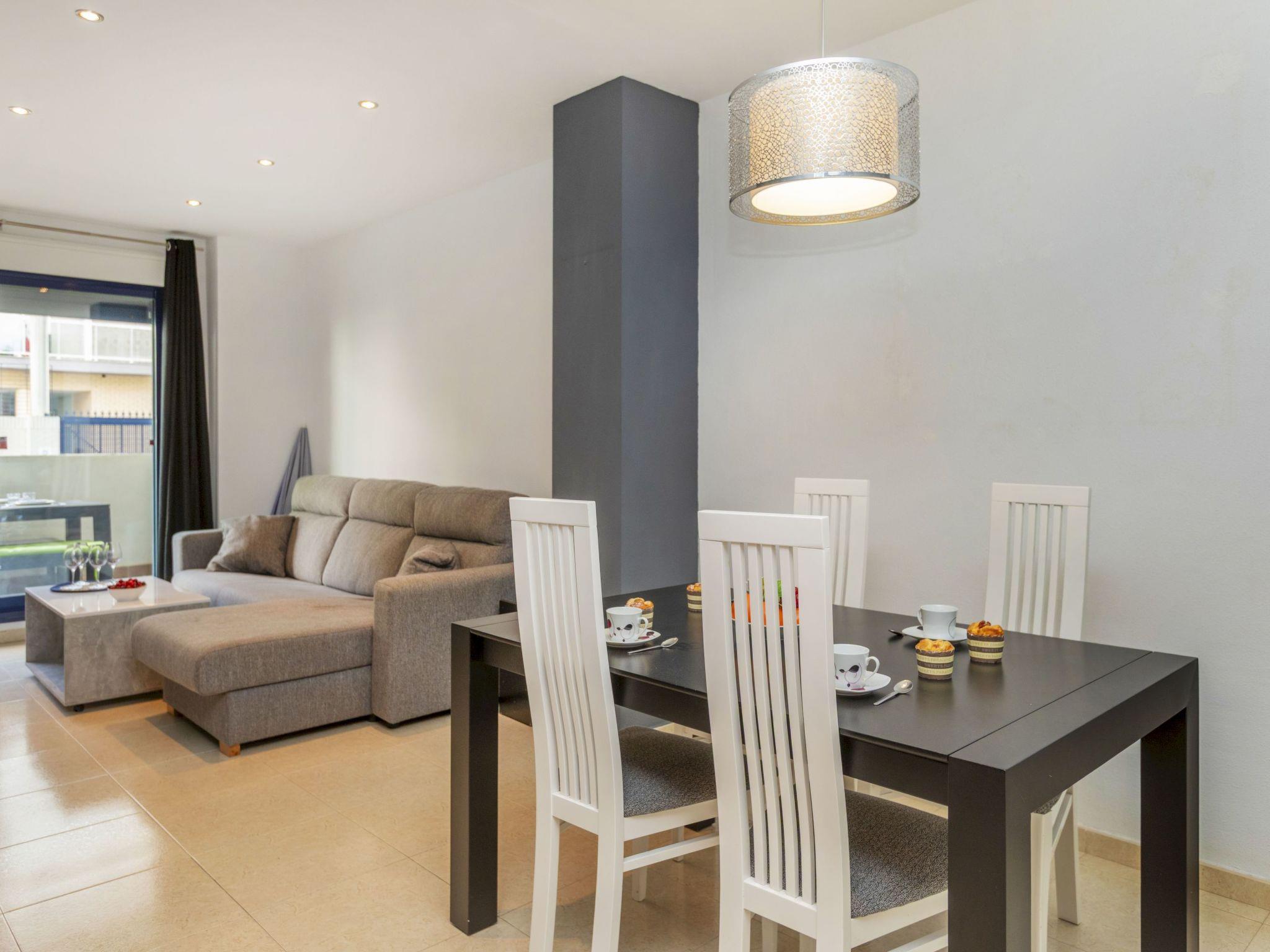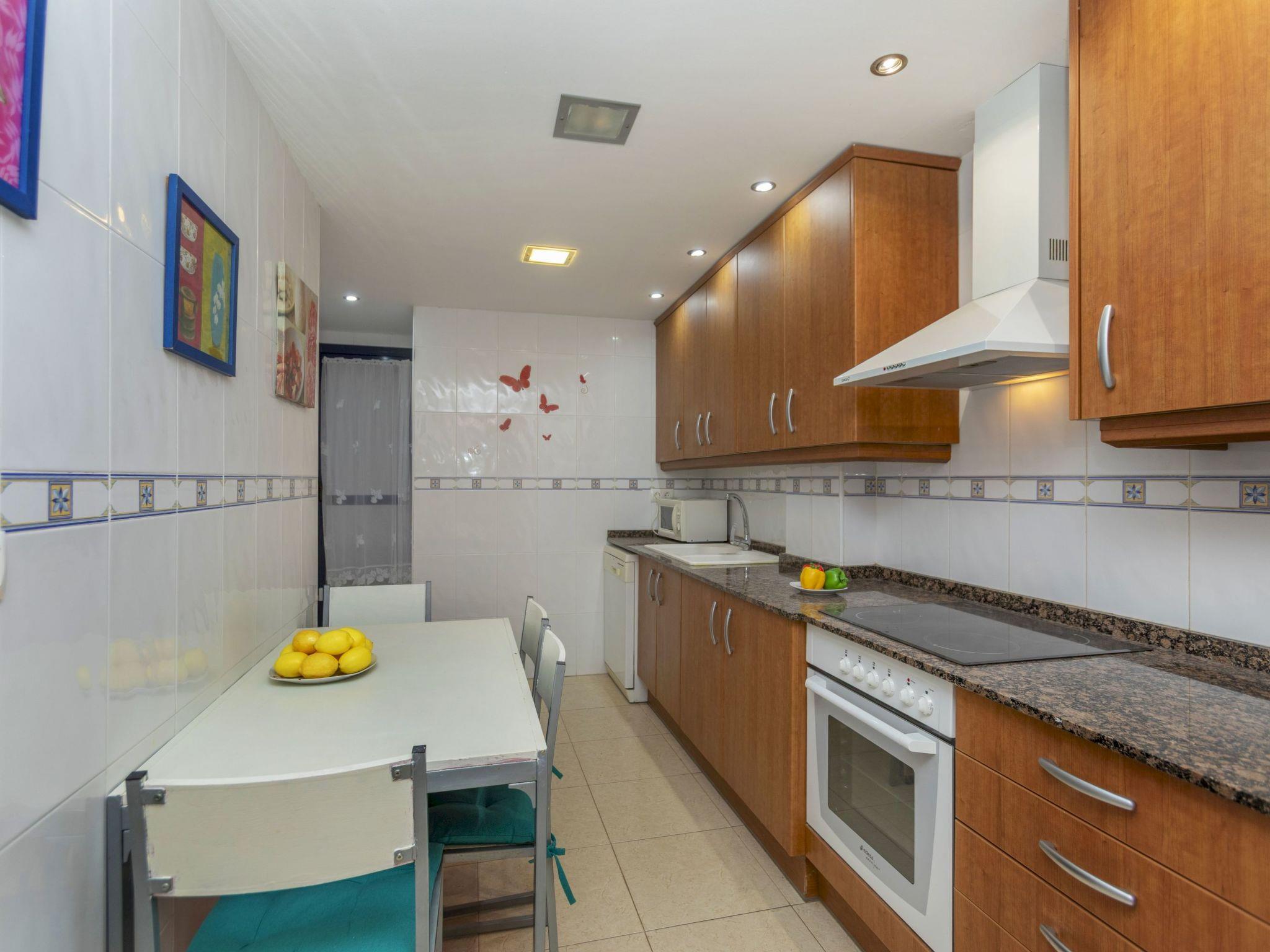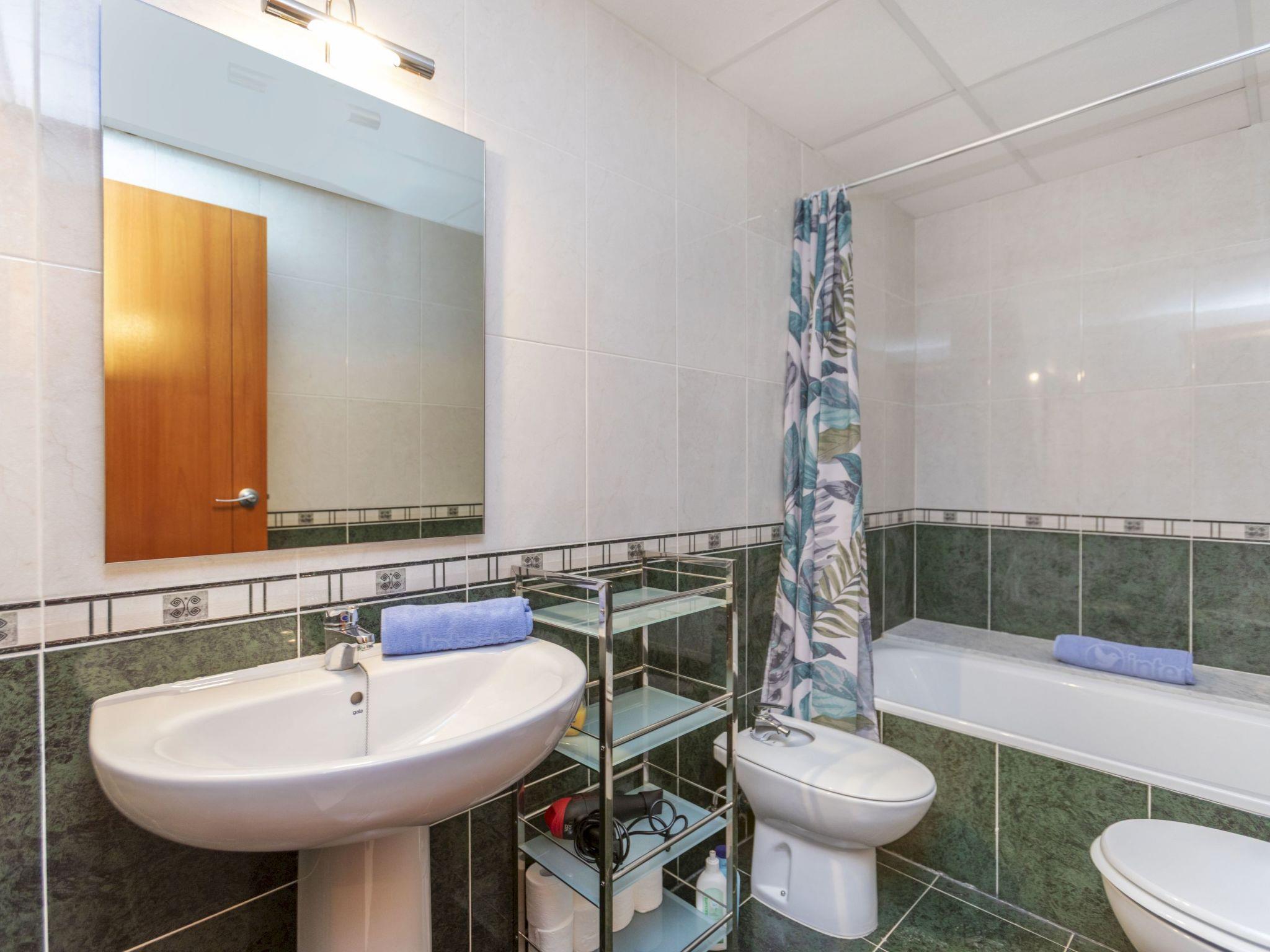 "Solymar", 3-room apartment 90 m2, on the ground floor. Practical and comfortable furnishings: living/dining room with dining table, digital TV, air conditioning and forced-air heating. Exit to the terrace. 1 room with 1 french bed (150 cm, length 190 cm), shower/WC, air conditioning and forced-air heating. 1 room with 2 beds (90 cm, length 190 cm), air conditioning and forced-air heating. Kitchen (oven, dishwasher, 4 ceramic glass hob hotplates, toaster, electric coffee machine, Capsules for coffee machine (Dolce Gusto) extra) with boiler (80 litres). Bath/bidet/WC. Terrace. Terrace furniture. View of the swimming pool. Facilities: washing machine, iron, hair dryer. Internet (WiFi, free). Please note: non-smokers only. TV only ES. R00000001 // Reg. Nr.: ESFCNT00001200900100832400000000000000000000000000009