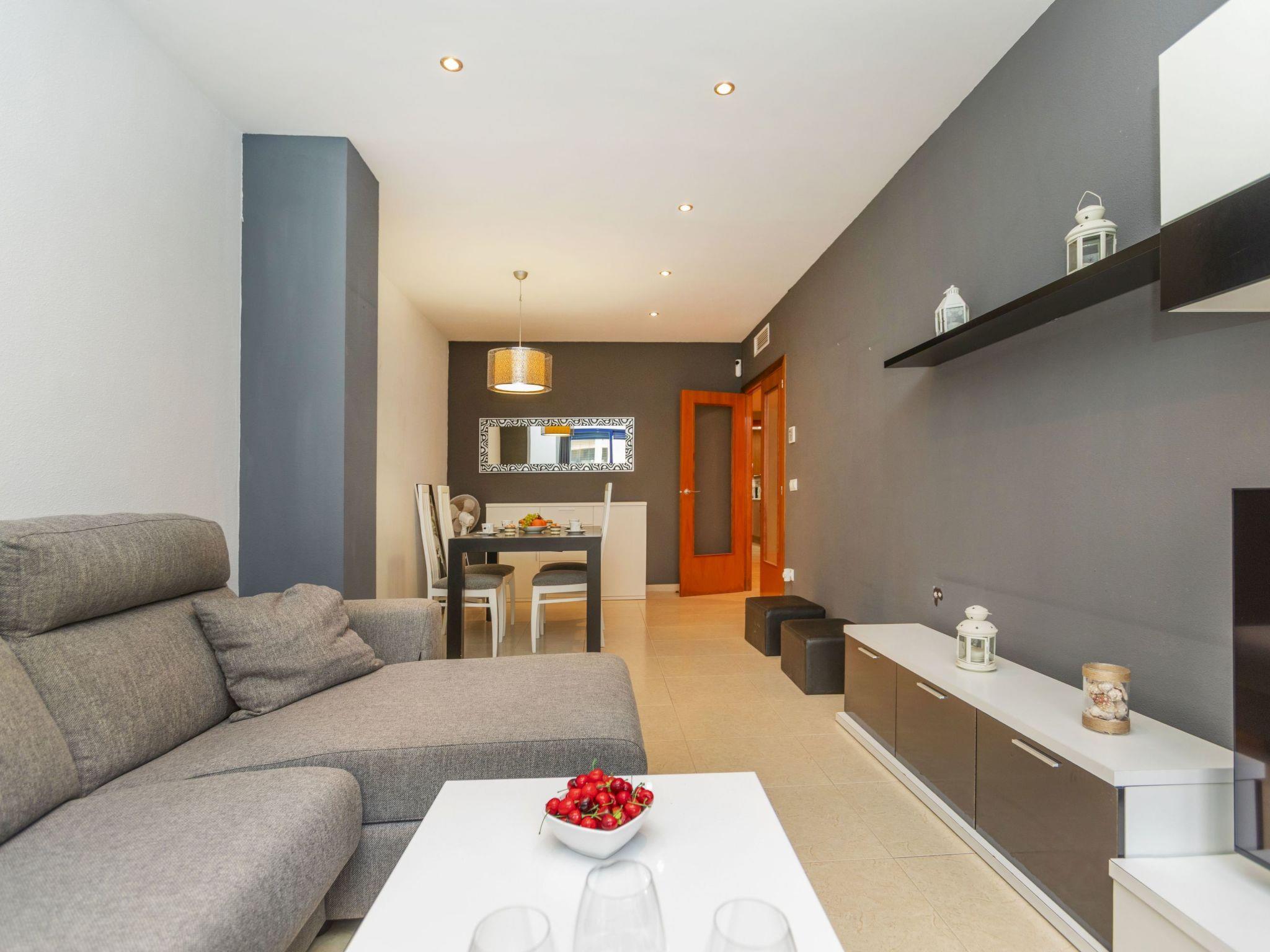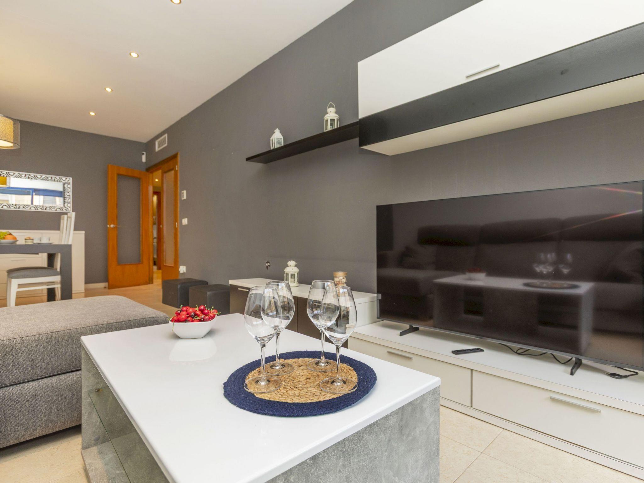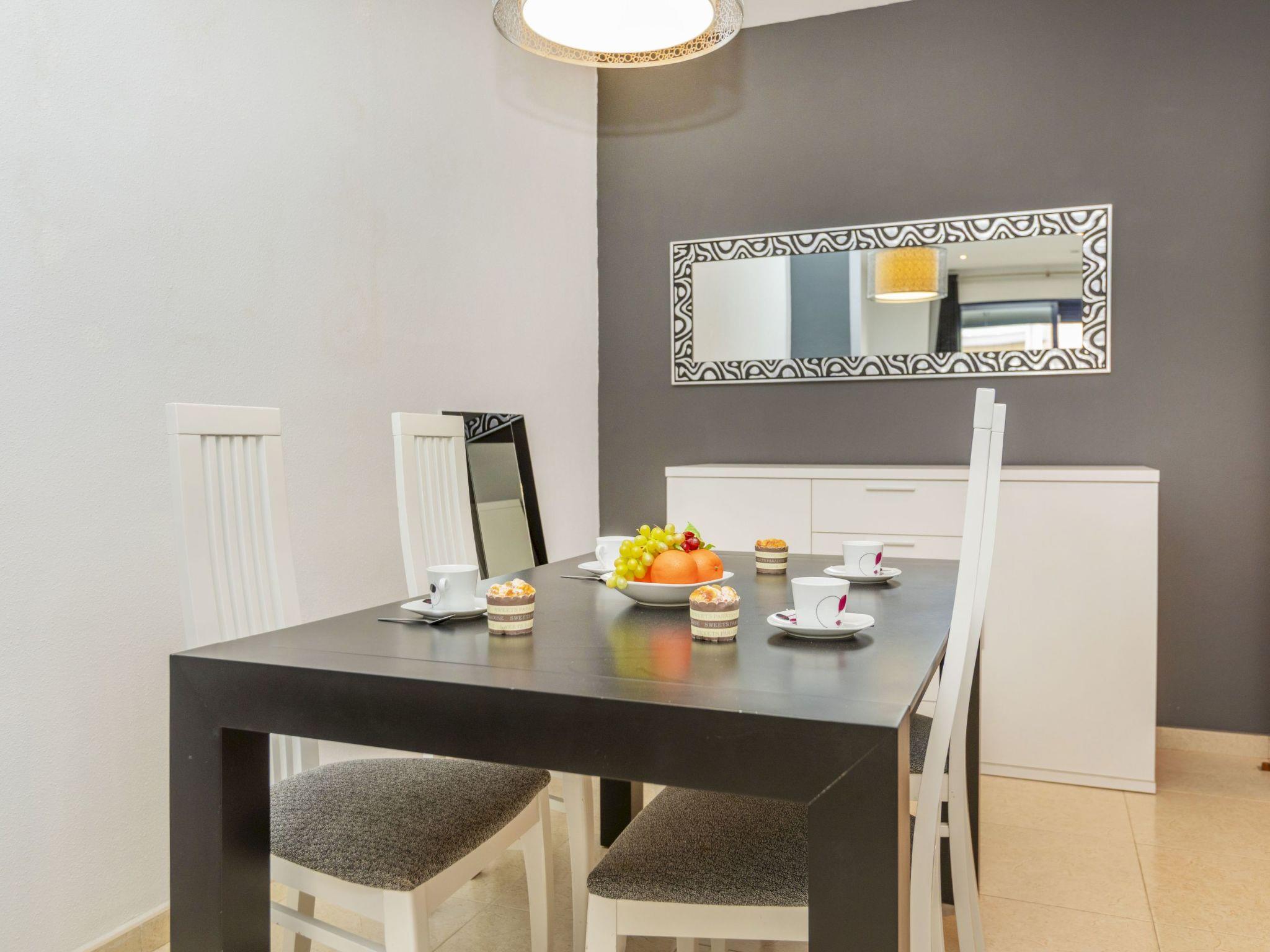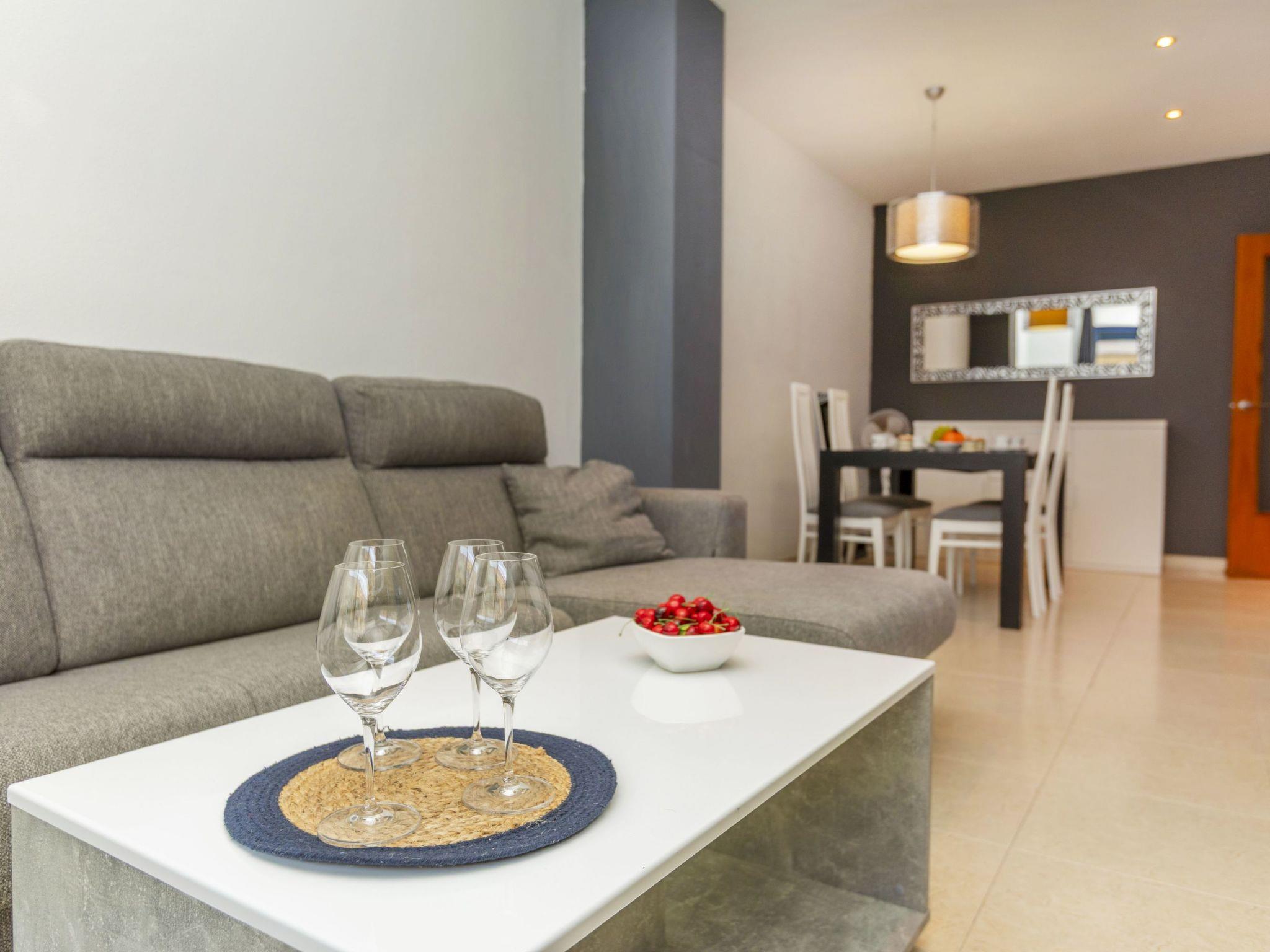 "Solymar", 3-room apartment 90 m2, on the ground floor. Practical and comfortable furnishings: living/dining room with dining table, digital TV, air conditioning and forced-air heating. Exit to the terrace. 1 room with 1 french bed (150 cm, length 190 cm), shower/WC, air conditioning and forced-air heating. 1 room with 2 beds (90 cm, length 190 cm), air conditioning and forced-air heating. Kitchen (oven, dishwasher, 4 ceramic glass hob hotplates, toaster, electric coffee machine, Capsules for coffee machine (Dolce Gusto) extra) with boiler (80 litres). Bath/bidet/WC. Terrace. Terrace furniture. View of the swimming pool. Facilities: washing machine, iron, hair dryer. Internet (WiFi, free). Please note: non-smokers only. TV only ES. R00000001 // Reg. Nr.: ESFCNT00001200900100832400000000000000000000000000009