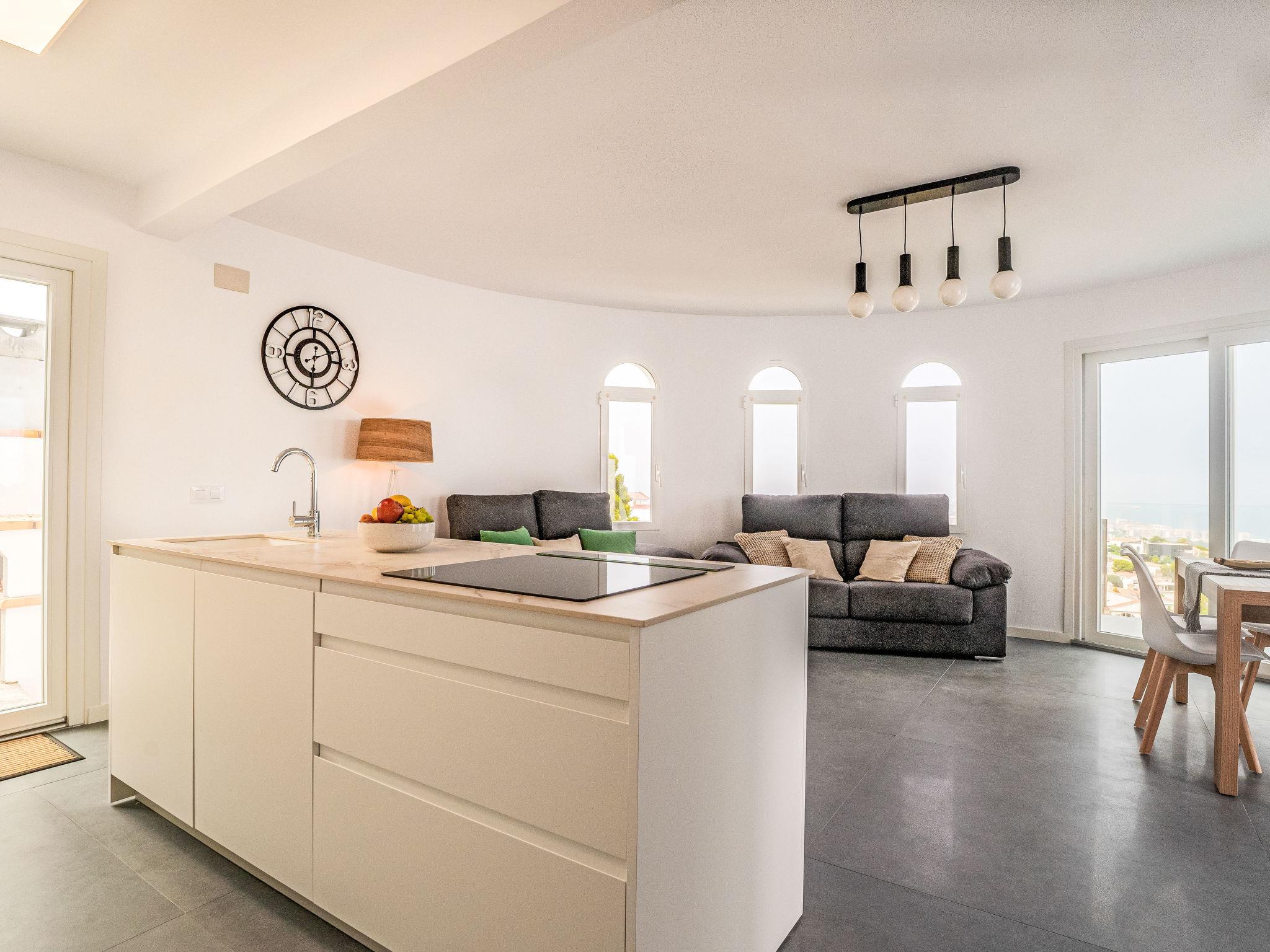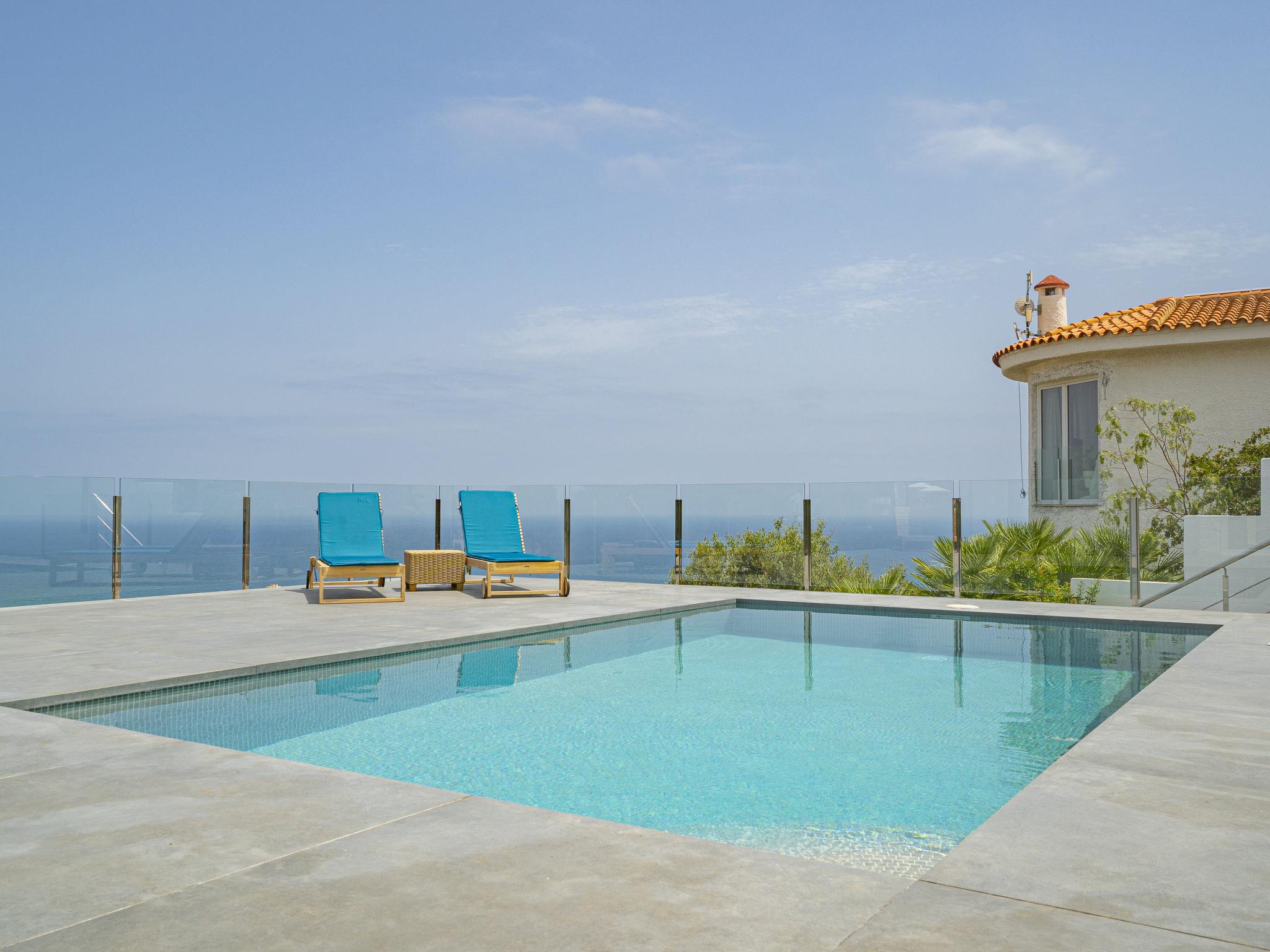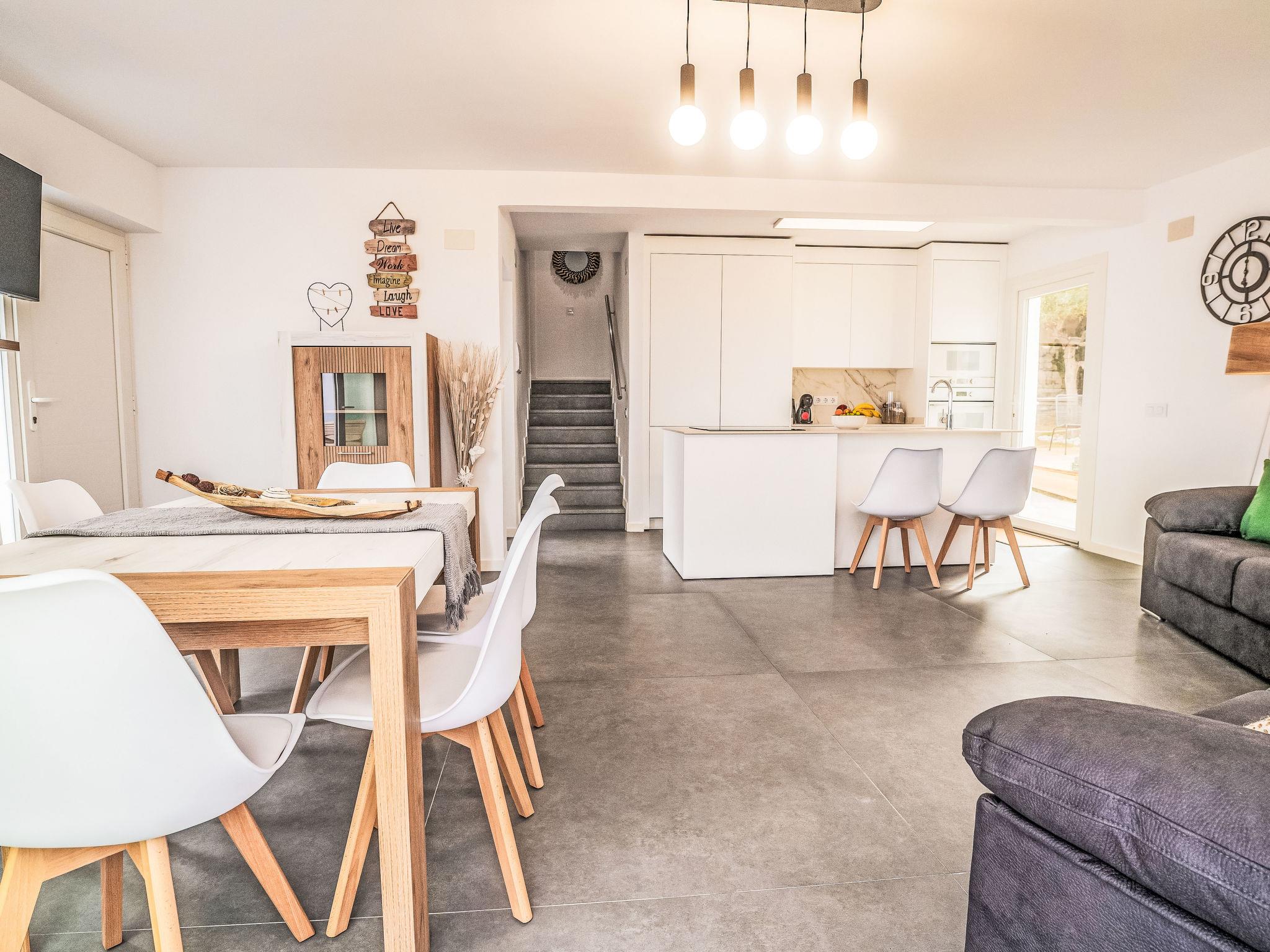 "Calam de Luna", 7-room villa 236 m2 on 3 levels. Object suitable for 8 adults + 4 children. Fully renovated in 2024, comfortable and modern furnishings: living/dining room with dining table, digital TV, air conditioning and forced-air heating. Exit to the terrace, to the swimming pool. 1 room with 1 french bed (150 cm, length 190 cm), air conditioning and forced-air heating. Exit to the terrace, to the swimming pool. Large, open kitchen (oven, dishwasher, 3 ceramic glass hob hotplates, toaster, kettle, microwave, freezer, electric coffee machine, Capsules for coffee machine (Dolce Gusto) extra) with air conditioning, forced-air heating and boiler (70 litres). Exit to the terrace, to the swimming pool. Shower/bidet/WC. On the lower ground floor: 1 room with 1 french bed (135 cm, length 190 cm), digital TV, air conditioning and forced-air heating. 1 room with 1 french bed (150 cm, length 190 cm), air conditioning and forced-air heating. Open kitchen (oven, dishwasher, 3 ceramic glass hob hotplates, toaster, microwave, electric coffee machine, Capsules for coffee machine (Dolce Gusto)) with boiler (45 litres). Shower/WC. Upper floor: 1 room with 1 french bed (150 cm, length 190 cm). 2 rooms, each room with 2 beds (90 cm, length 190 cm), digital TV, air conditioning and forced-air heating. 2 showers/WC. Large terrace 150 m2. Terrace furniture, barbecue, deck chairs (5). Panoramic view of the sea, the mountains and the town. Facilities: washing machine, iron, children's high chair, baby cot for up to 2 year olds, hair dryer. Internet (WiFi, free). Parking (2 cars). Please note: non-smoking house. Maximum 1 pet/ dog allowed. TV only ES. No lift. VT-47889-CS // Reg. Nr.: ESFCNT00001200900077446600000000000000000000000000005