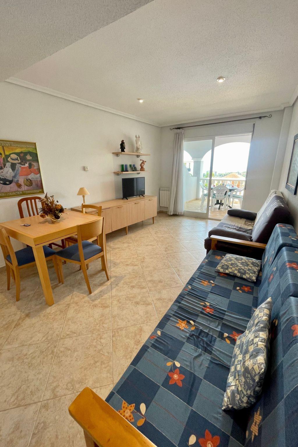 It has 2 bedrooms, in which we can find a double bed and a bunk bed. However, it also has 2 sofa beds, so that the maximum capacity is up to 8 people. It has a fully equipped bathroom with all the necessary utensils for personal hygiene, a toilet and a fully equipped kitchen with all the essential appliances for the guest's stay. Finally, there are 2 balconies, one of which is equipped with chairs and a garden table.