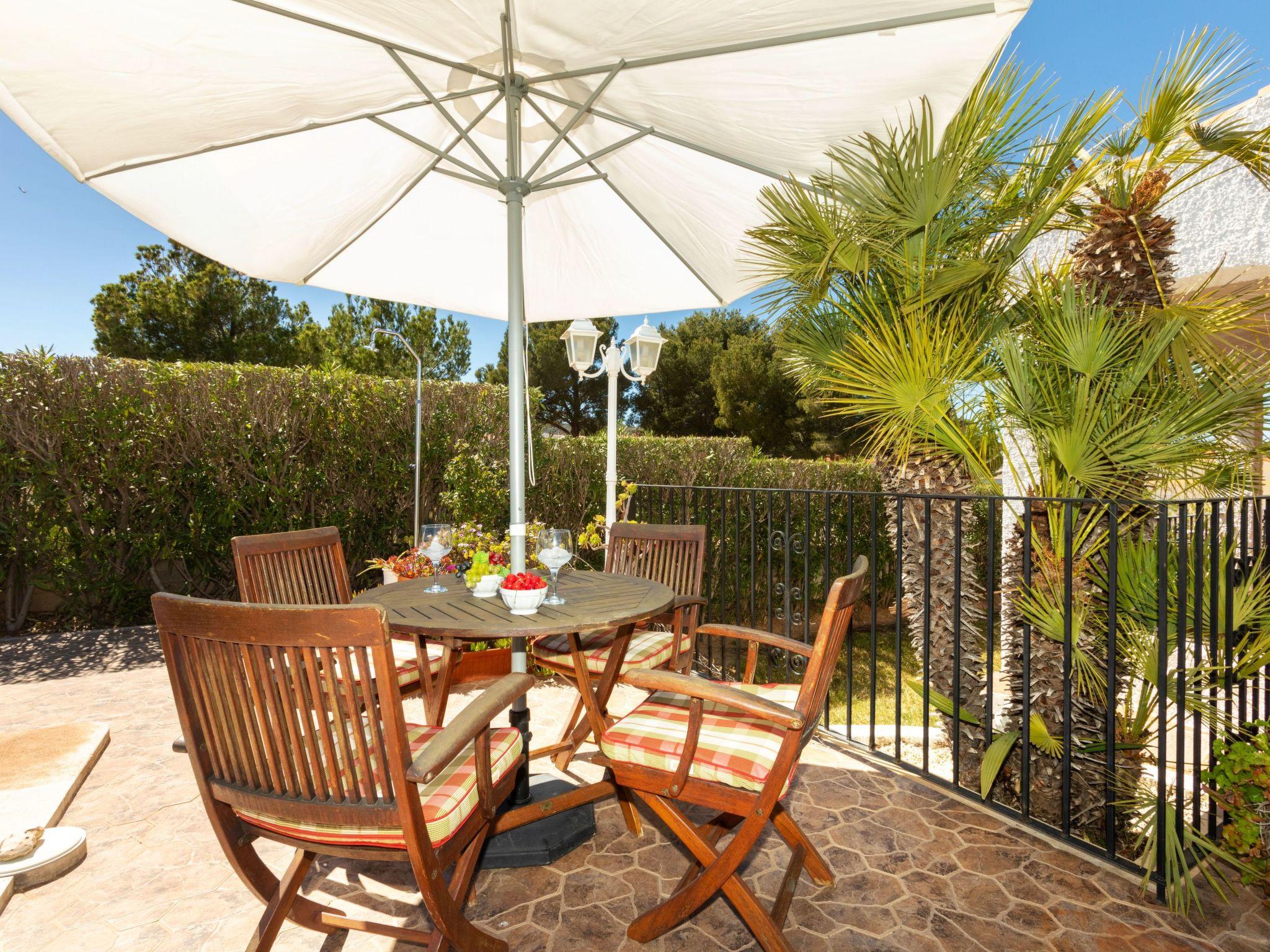 "Villa Paloma", 4-room house 100 m2. Object suitable for 6 adults. Simple and practical furnishings: living/dining room with dining table, cable TV, flat screen, air conditioning and forced-air heating. Exit to the terrace. 2 rooms, each room with 2 beds (90 cm, length 190 cm). 1 room with 1 french bed (1 x 135 cm, length 190 cm). Large kitchen (oven, dishwasher, 4 ceramic glass hob hotplates, toaster, microwave, freezer, electric coffee machine) with boiler (65 litres). Exit to the veranda. 2 showers/WC. Large terrace. Terrace furniture, barbecue, deck chairs (2), covered balcony. Beautiful view of the mountains and the ocean. Facilities: washing machine, iron, hair dryer. Internet (WiFi, free). Parking. Please note: suitable for families. Non-smoking house. TV only ES. The pool mentioned in the description is for private use. VT-46135-CS // Reg. Nr.: ESFCTU000012009000819266000000000000CV-VUT0046135-CS3