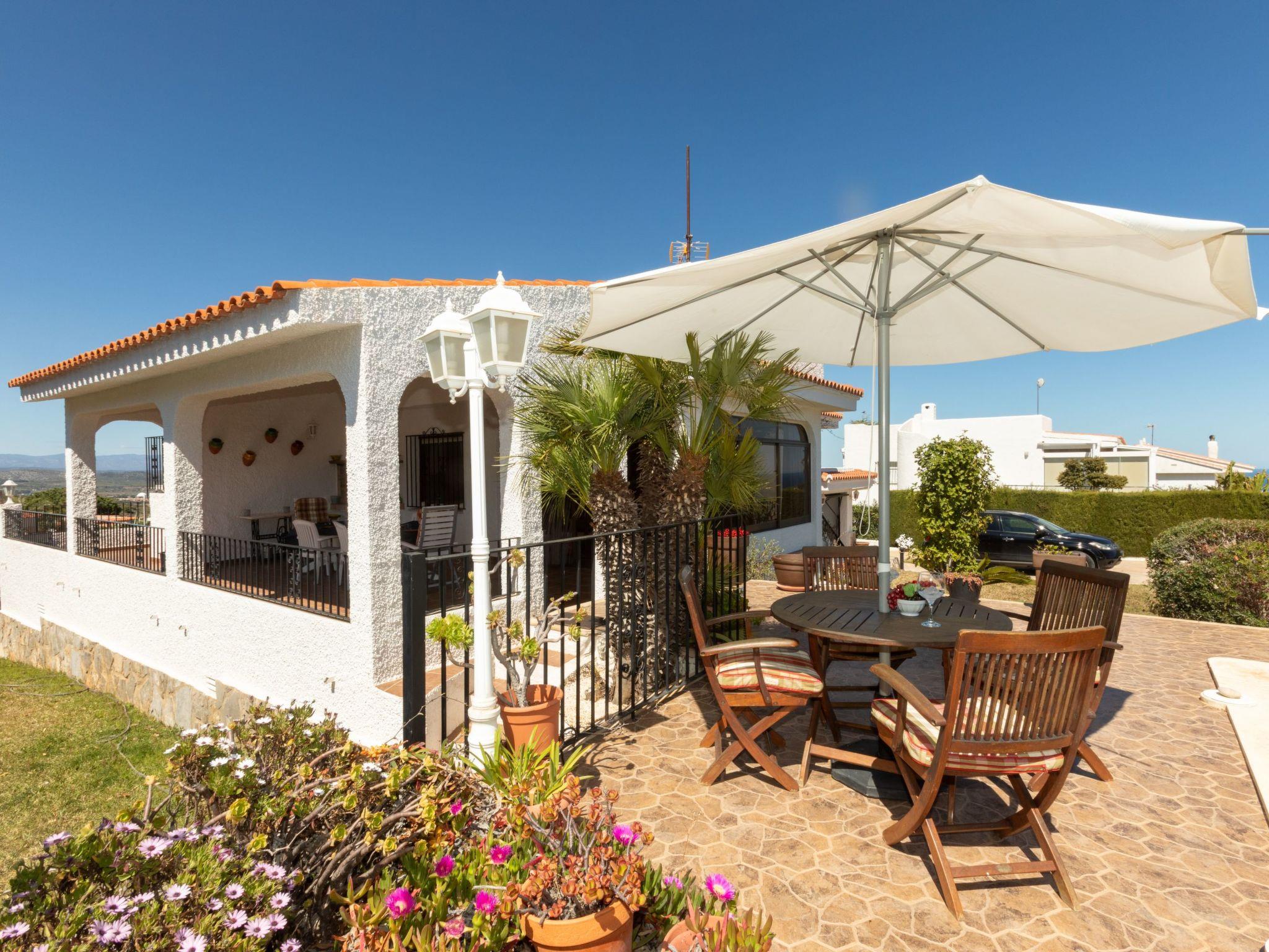 Atalayas 2 km from Peñíscola: Large, comfortable house "Villa Paloma". In the resort 2.2 km from the centre of Peñíscola, in a quiet position on top of a hill, residential area (villas), 2.4 km from the sea, 2.4 km from the beach. Private: property 150 m2 with natural garden, beautiful garden to relax, swimming pool angular (12 x 4 m, depth 170 - 210 cm, seasonal availability: 01.Jun. - 30.Sep.). Outdoor shower, pool maintenance by the owner/gardener. Parking (for 2 cars). Supermarket 2 km, shopping centre 8 km, restaurant 2 km, bar 2 km, café 2 km, bus stop "Plaza de la Constitución" 2.2 km, railway station "Benicarló" 10 km, sandy beach "Playa Sur" 2.4 km. Golf course (18 hole) 20 km. Nearby attractions: Castillo Peñíscola 2.5 km, Delta del Ebro 55 km, Port Aventura 120 km, Ciutat de les Arts i les Ciències 145 km. Well-known lakes can easily be reached: Pantano de la Senia 45 km. Hiking paths: Parque Natural Sierra de Irta 7 km. Please note: car recommended, no lift. Baby equipment on request. Object suitable for 6 adults. The owner does not accept any youth groups. Neighbourhood highly sensitive to noise. Quietness and good behaviour expected.