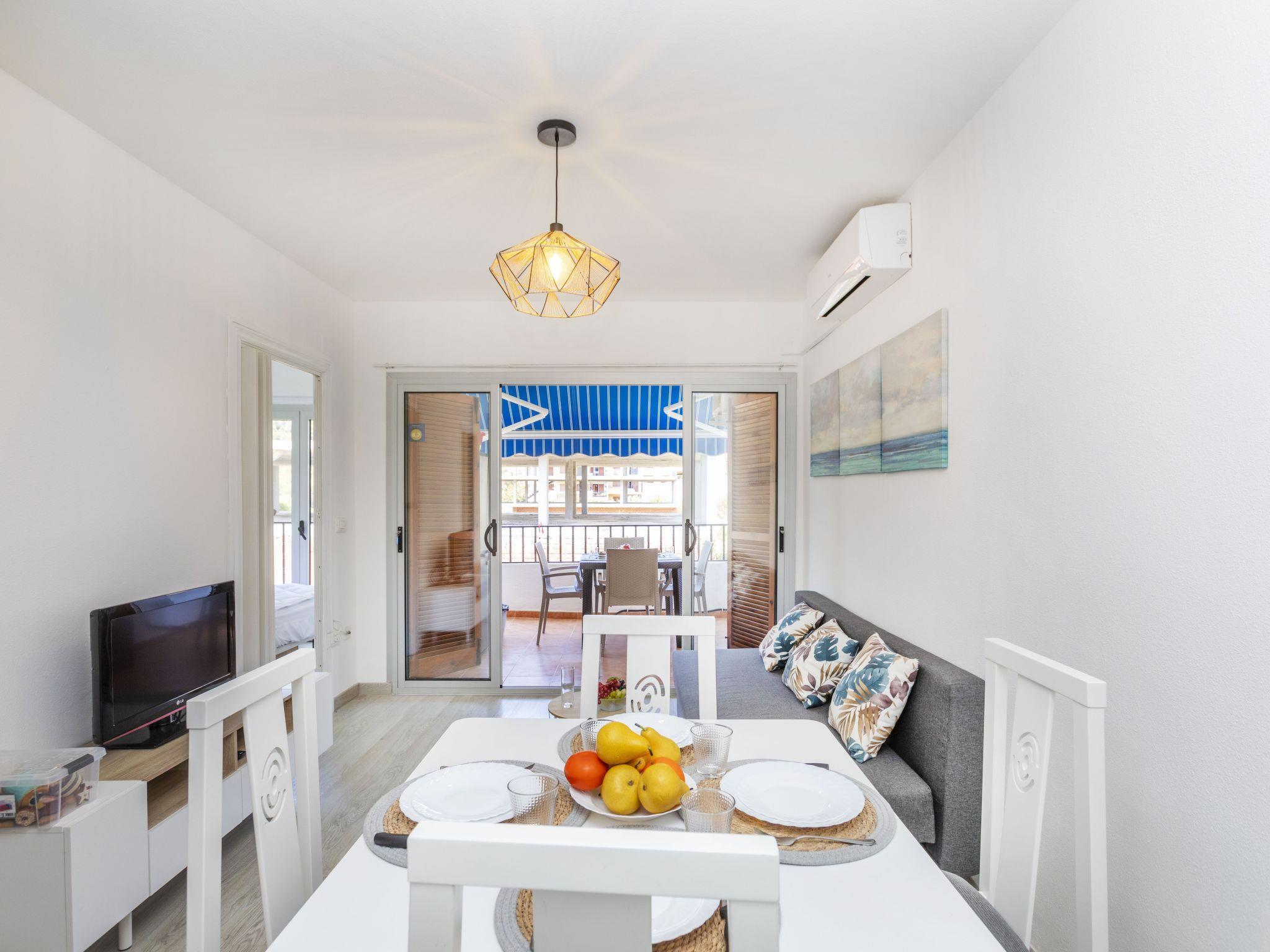 "Patios", 3-room apartment 61 m2. Living/dining room with dining table, digital TV, air conditioning and forced-air heating. Exit to the terrace. 1 room with 1 french bed (1 x 135 cm, length 190 cm). Exit to the balcony. 1 room with 2 beds (80 cm, length 190 cm). Open kitchen (oven, 3 ceramic glass hob hotplates, toaster, microwave, electric coffee machine, Capsules for coffee machine (Tassimo) extra). Bath/WC. Small balcony, terrace. Terrace furniture. Facilities: washing machine, iron, hair dryer. Internet (WiFi, free). Please note: apartment street side. Non-smokers only. TV only ES. VT-47323-CS // Reg. Nr.: ESFCTU00001200900084730600000000000000000VT-36319-CS6