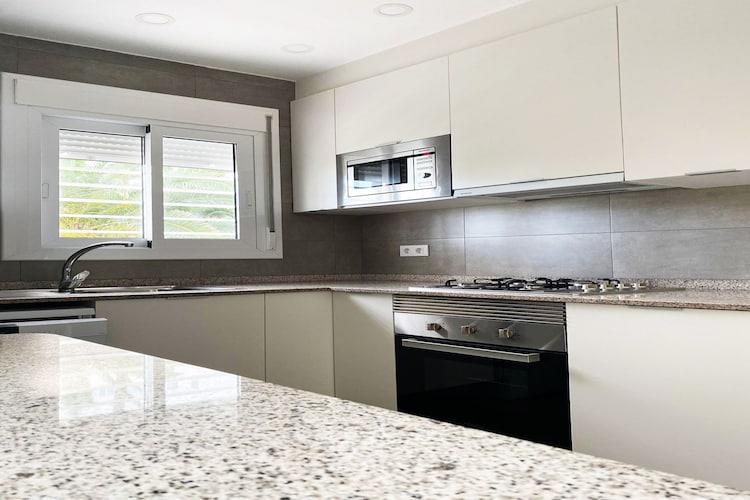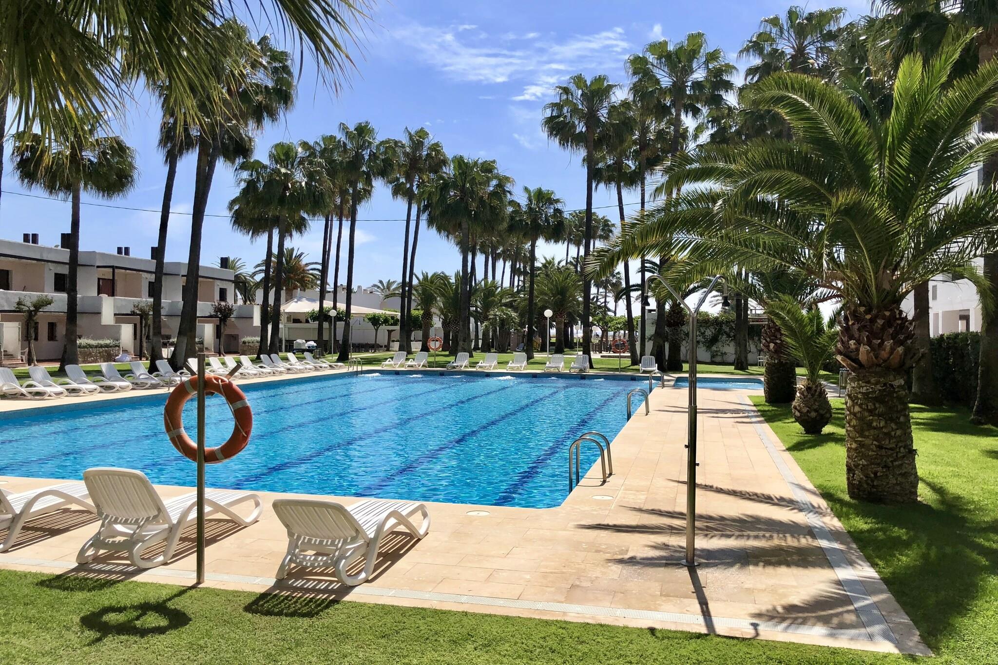 Entre, åbent køkken(brødrister, kaffemaskine, ovn, mikrobølgeovn, opvaskemaskine , køleskab, vaskemaskine), stue / spisestue(dobbeltsovesofa, Fjernsyn(fladskærm, parabol), varme, klimaanlæg), soveværelse(2x enkeltseng), soveværelse(2x enkeltseng), badeværelse(bruser, håndvask, toilet), Internetadgang, balkon eller terrasse, havemøbler, swimmingpool(deles med andre gæster)
